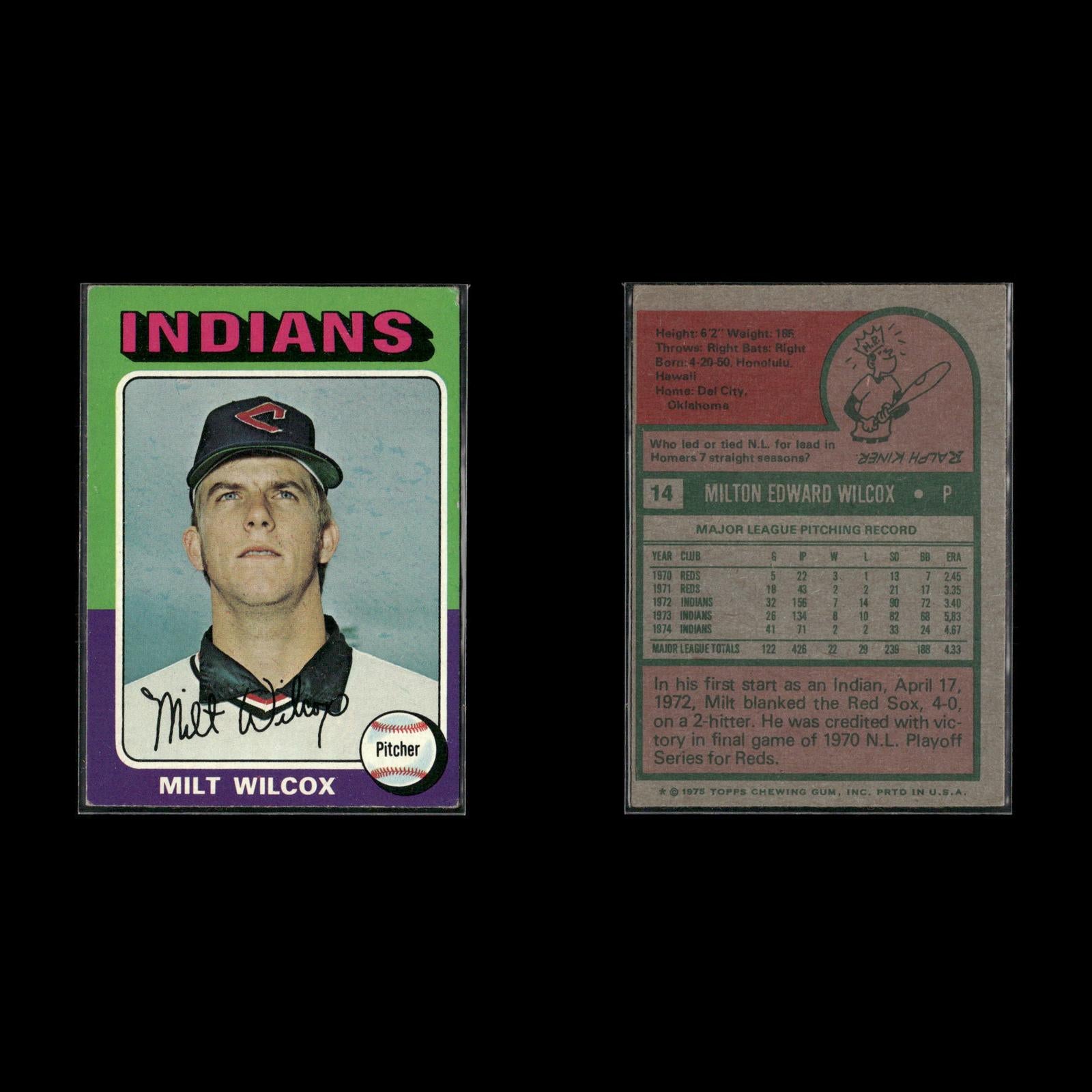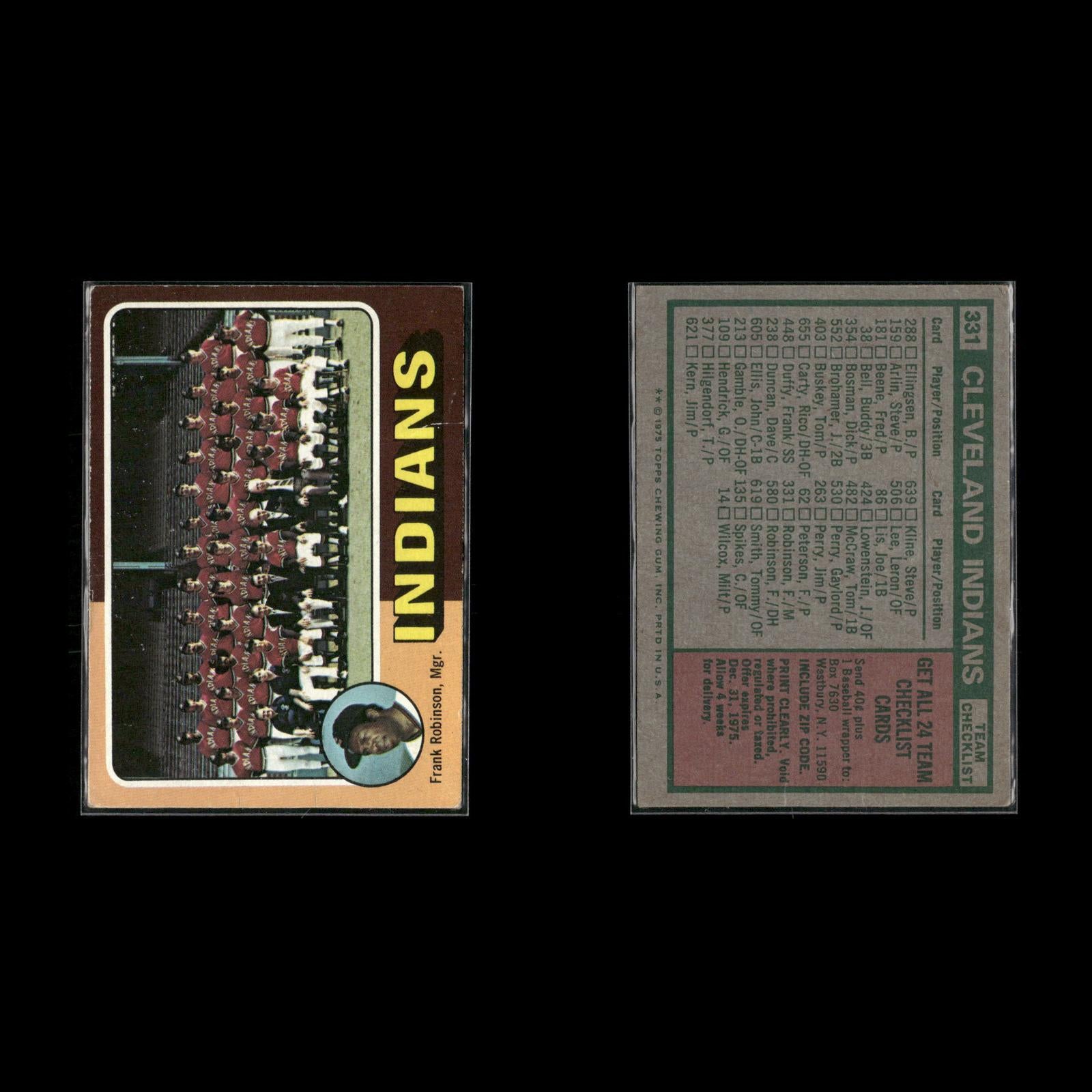 Buddy Bell #38 1975 Topps Cleveland Indians Milt Wilcox #14 1975 Topps Cleveland Indians Cleveland Indians / Frank Robinson TC, MGR, CL #331 1975 Topps Cleveland Indians Steve Arlin #159 1975 Topps Cleveland Indians Charlie Spikes #135 1975 Topps Cleveland Indians Jack Brohamer #552 1975 Topps Cleveland Indians Frank Duffy #448 1975 Topps Cleveland Indians Dick Bosman #354 1975 Topps Cleveland Indians Bruce Ellingsen Rookie #288 1975 Topps Cleveland Indians Frank Robinson #580 1975 Topps Cleveland Indians