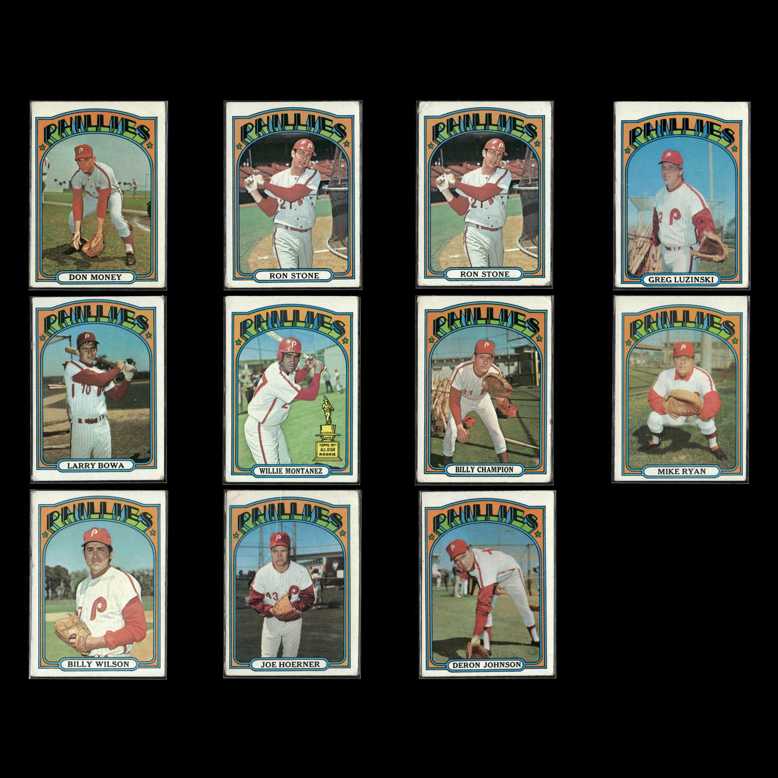 Don Money #635 1972 Topps Philadelphia Phillies Ron Stone #528 1972 Topps Philadelphia Phillies Ron Stone #528 1972 Topps Philadelphia Phillies Greg Luzinski #112 1972 Topps Philadelphia Phillies Larry Bowa #520 1972 Topps Philadelphia Phillies Willie Montanez #690 1972 Topps Philadelphia Phillies Billy Champion #599 1972 Topps Philadelphia Phillies Mike Ryan #324 1972 Topps Philadelphia Phillies Billy Wilson #587 1972 Topps Philadelphia Phillies Joe Hoerner #482 1972 Topps Philadelphia Phillies Deron Johnson #167 1972 Topps Philadelphia Phillies