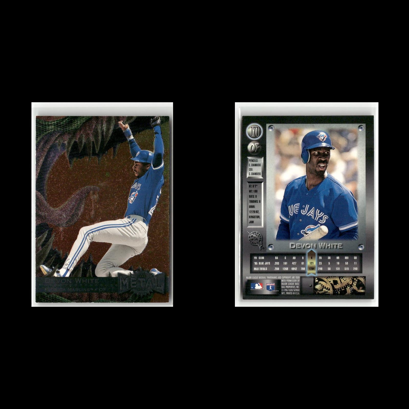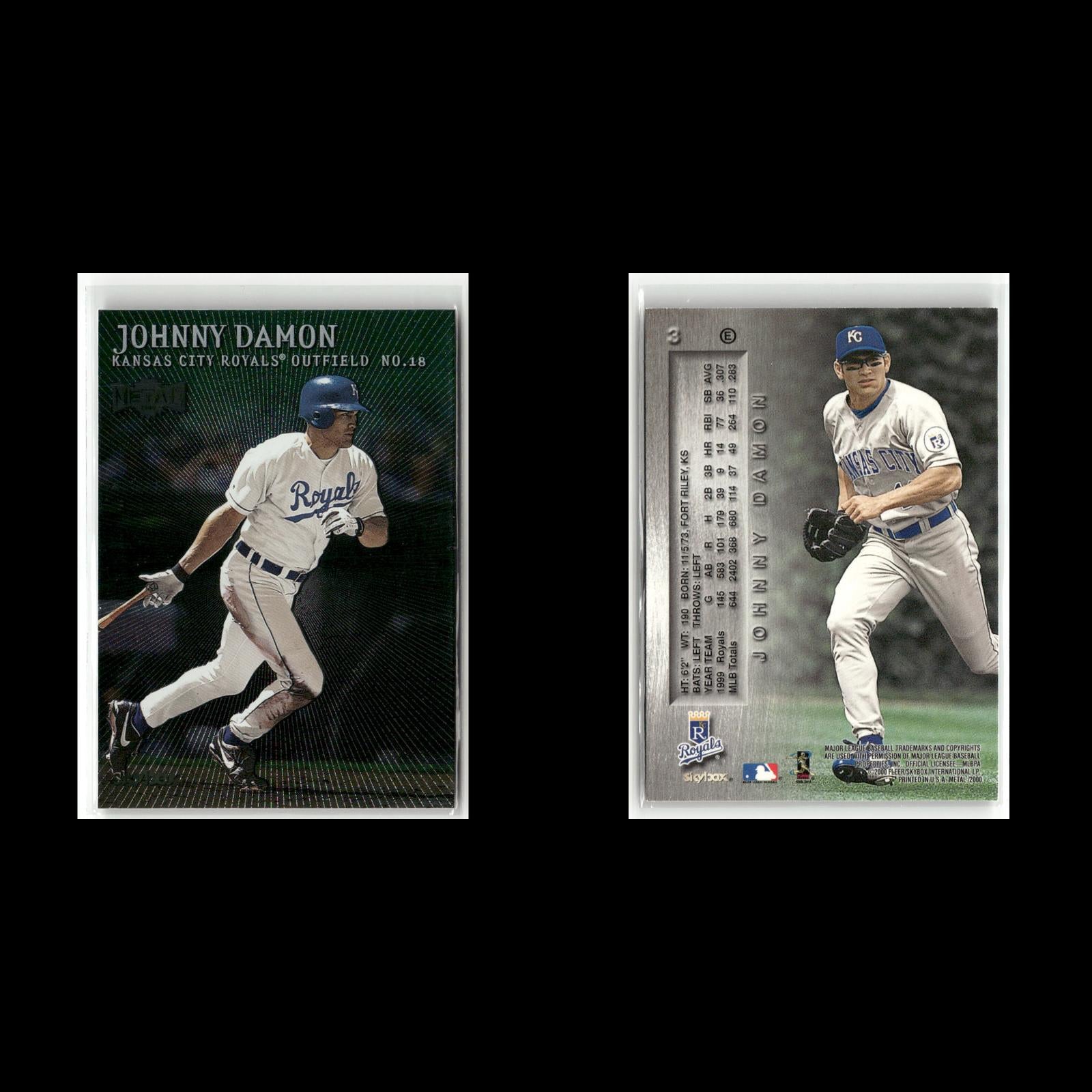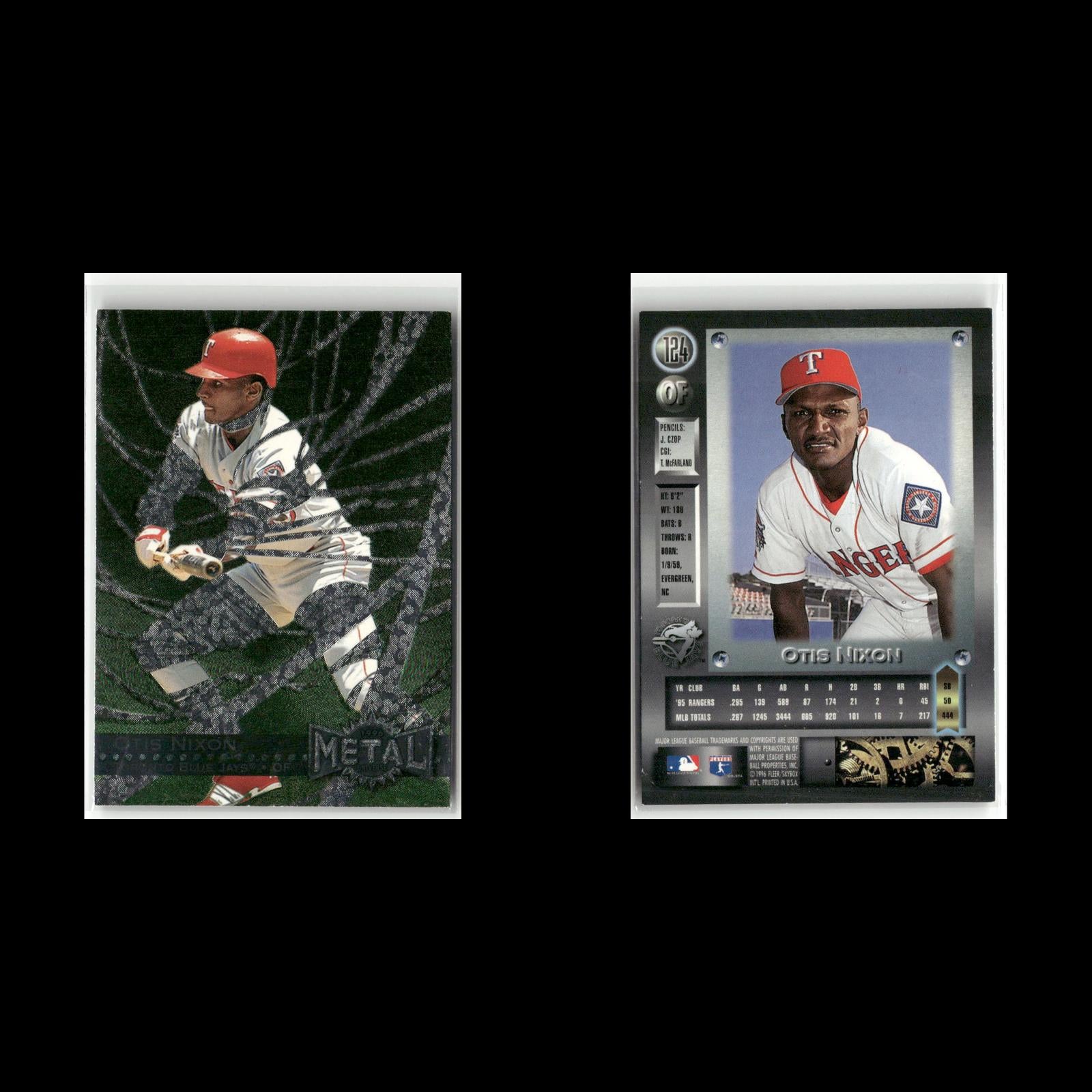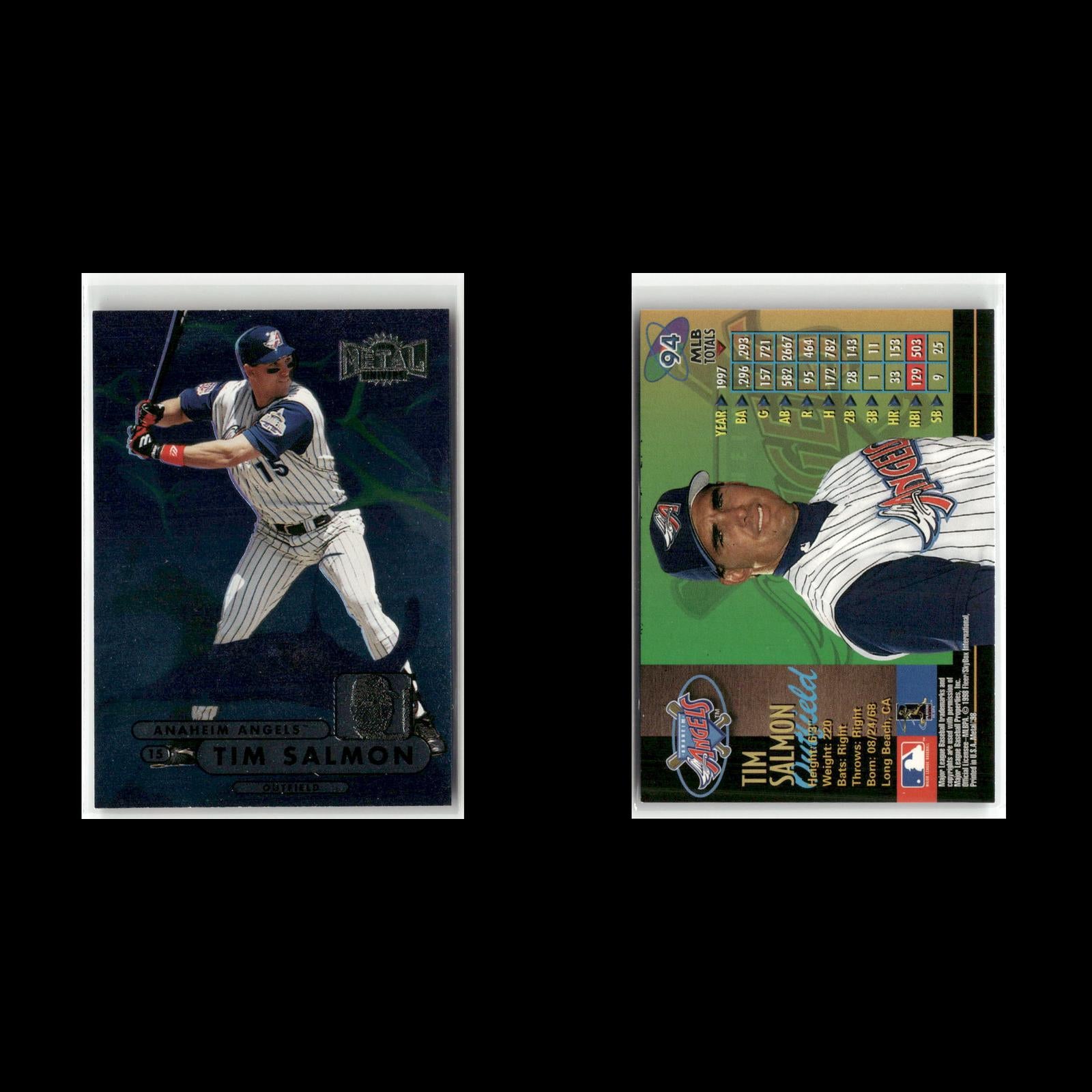 Hideo Nomo #211 1998 Metal Universe Los Angeles Dodgers Jose Vizcaino #206 1996 Metal Universe New York Mets Brian McRae #142 1996 Metal Universe Chicago Cubs Devon White #171 1996 Metal Universe Florida Marlins Brady Anderson #210 1998 Metal Universe Baltimore Orioles Darin Erstad #236 1999 Metal Universe Anaheim Angels Otis Nixon #124 1996 Metal Universe Toronto Blue Jays Tony Clark #204 1998 Metal Universe Detroit Tigers Edgardo Alfonzo #20 1998 Metal Universe New York Mets Tim Salmon #94 1998 Metal Universe Anaheim Angels Johnny Damon #3 2000 Metal Emerald Kansas City Royals