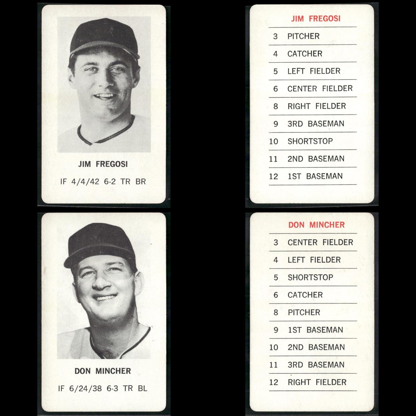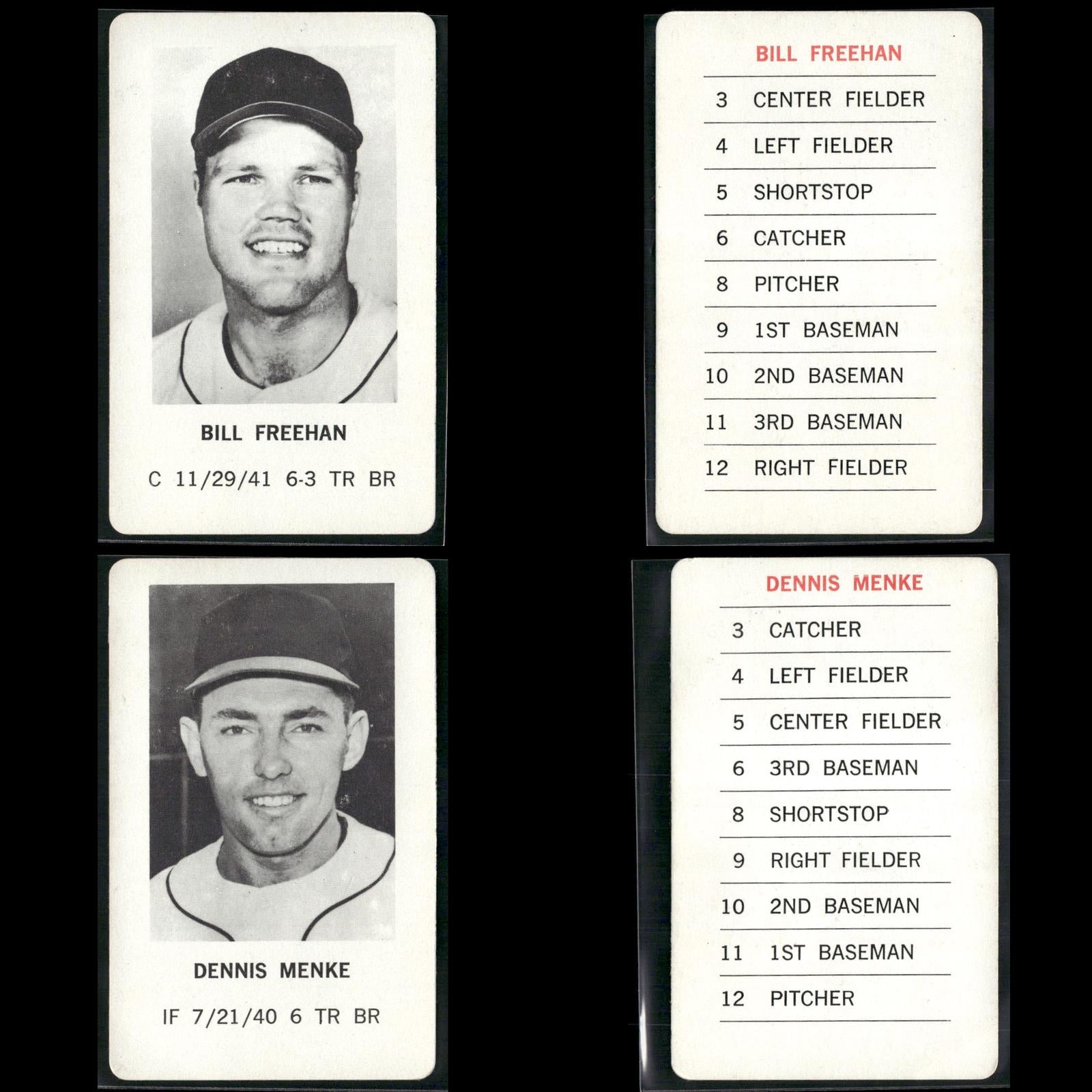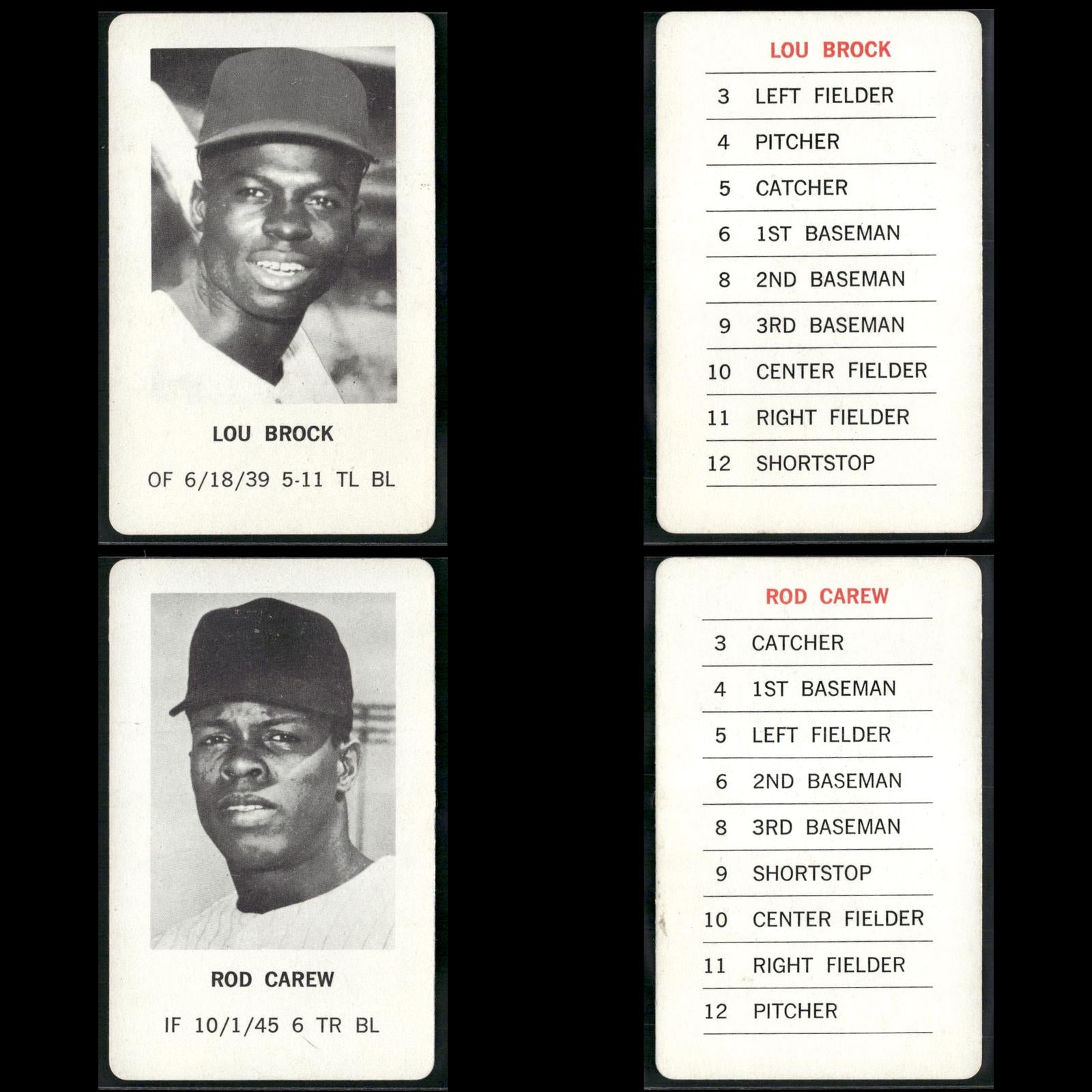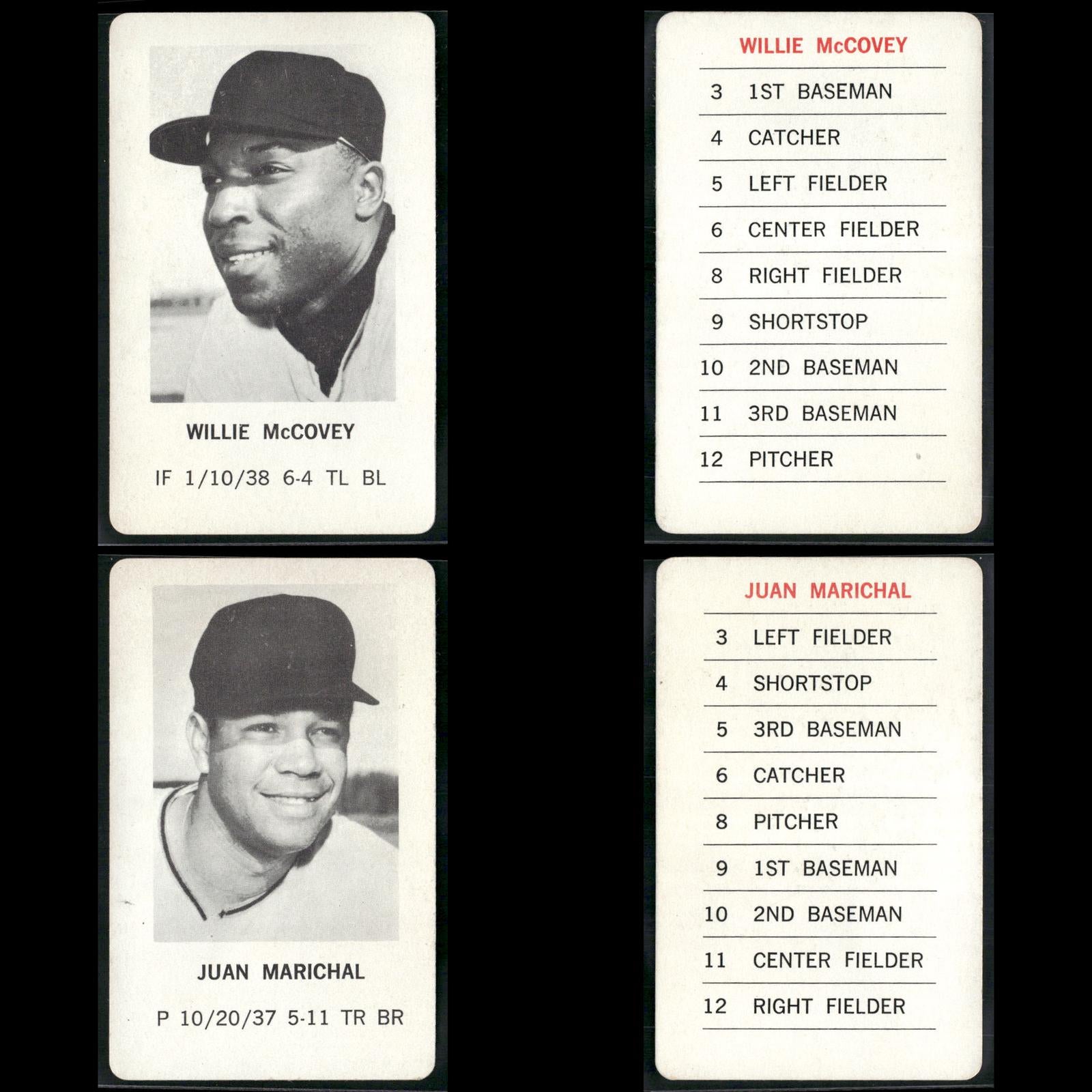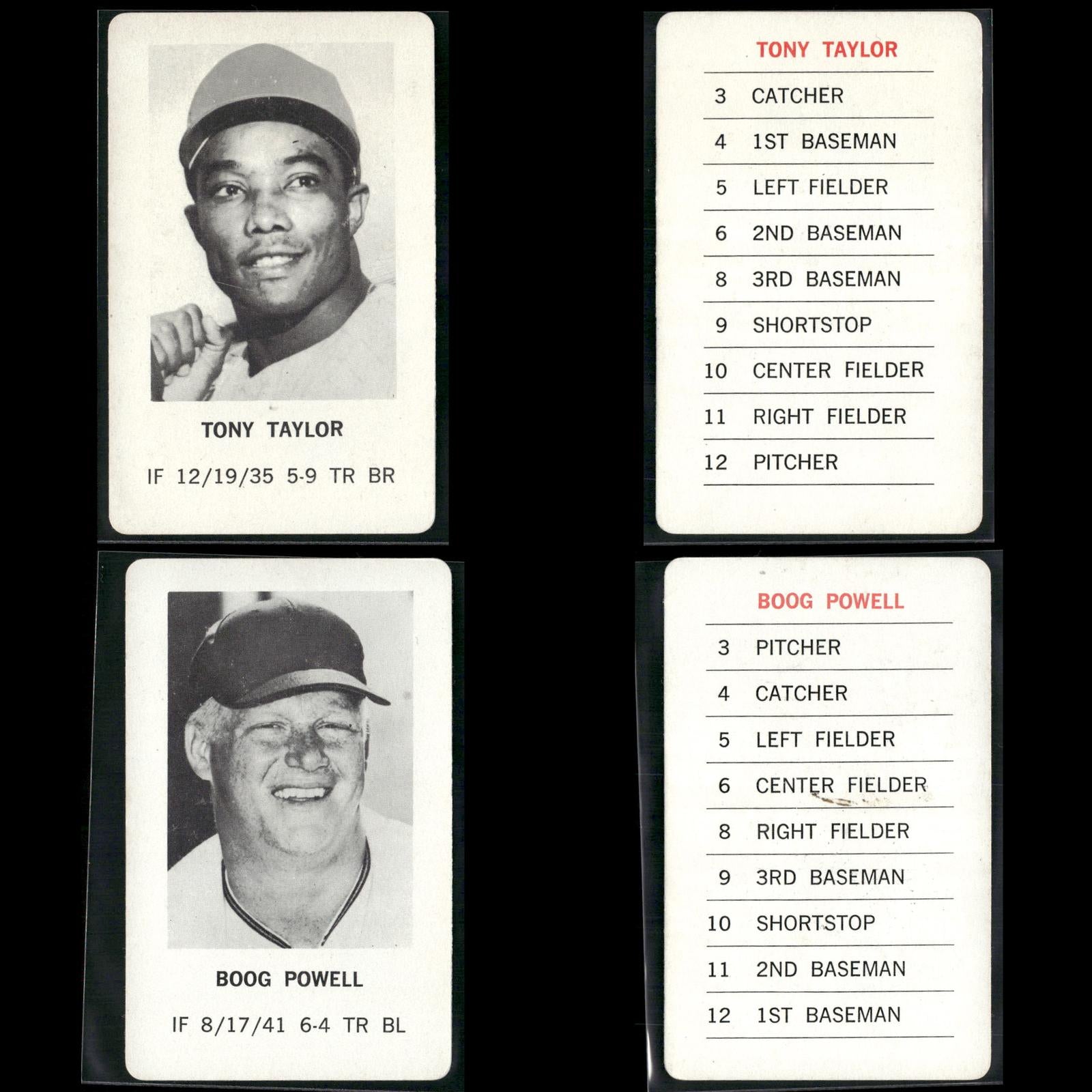 Reggie Jackson #NNO 1970 Milton Bradley Oakland Athletics Hank Aaron #NNO 1970 Milton Bradley Atlanta Braves Roberto Clemente #NNO 1970 Milton Bradley Pittsburgh Pirates Willie Mays #NNO 1970 Milton Bradley San Francisco Giants Pete Rose #NNO 1970 Milton Bradley Cincinnati Reds Frank Robinson #NNO 1970 Milton Bradley Baltimore Orioles Ernie Banks #NNO 1970 Milton Bradley Chicago Cubs Tom Seaver #NNO 1970 Milton Bradley New York Mets Harmon Killebrew #NNO 1970 Milton Bradley Minnesota Twins Phil Niekro #NNO 1970 Milton Bradley Atlanta Braves Lou Brock #NNO 1970 Milton Bradley St. Louis Cardinals Rod Carew #NNO 1970 Milton Bradley Minnesota Twins Willie McCovey #NNO 1970 Milton Bradley San Francisco Giants Juan Marichal #NNO 1970 Milton Bradley San Francisco Giants Jim Fregosi #NNO 1970 Milton Bradley California Angels Don Mincher #NNO 1970 Milton Bradley Seattle Pilots Bill Freehan #NNO 1970 Milton Bradley Detroit Tigers Denis Menke #NNO 1970 Milton Bradley Houston Astros Tony Taylor #NNO 1970 Milton Bradley Philadelphia Phillies Boog Powell #NNO 1970 Milton Bradley Baltimore Orioles Mel Stottlemyre #NNO 1970 Milton Bradley New York Yankees Tom Haller #NNO 1970 Milton Bradley Los Angeles Dodgers Mickey Lolich #NNO 1970 Milton Bradley Detroit Tigers Sam McDowell #NNO 1970 Milton Bradley Cleveland Indians Ron Santo #NNO 1970 Milton Bradley Chicago Cubs