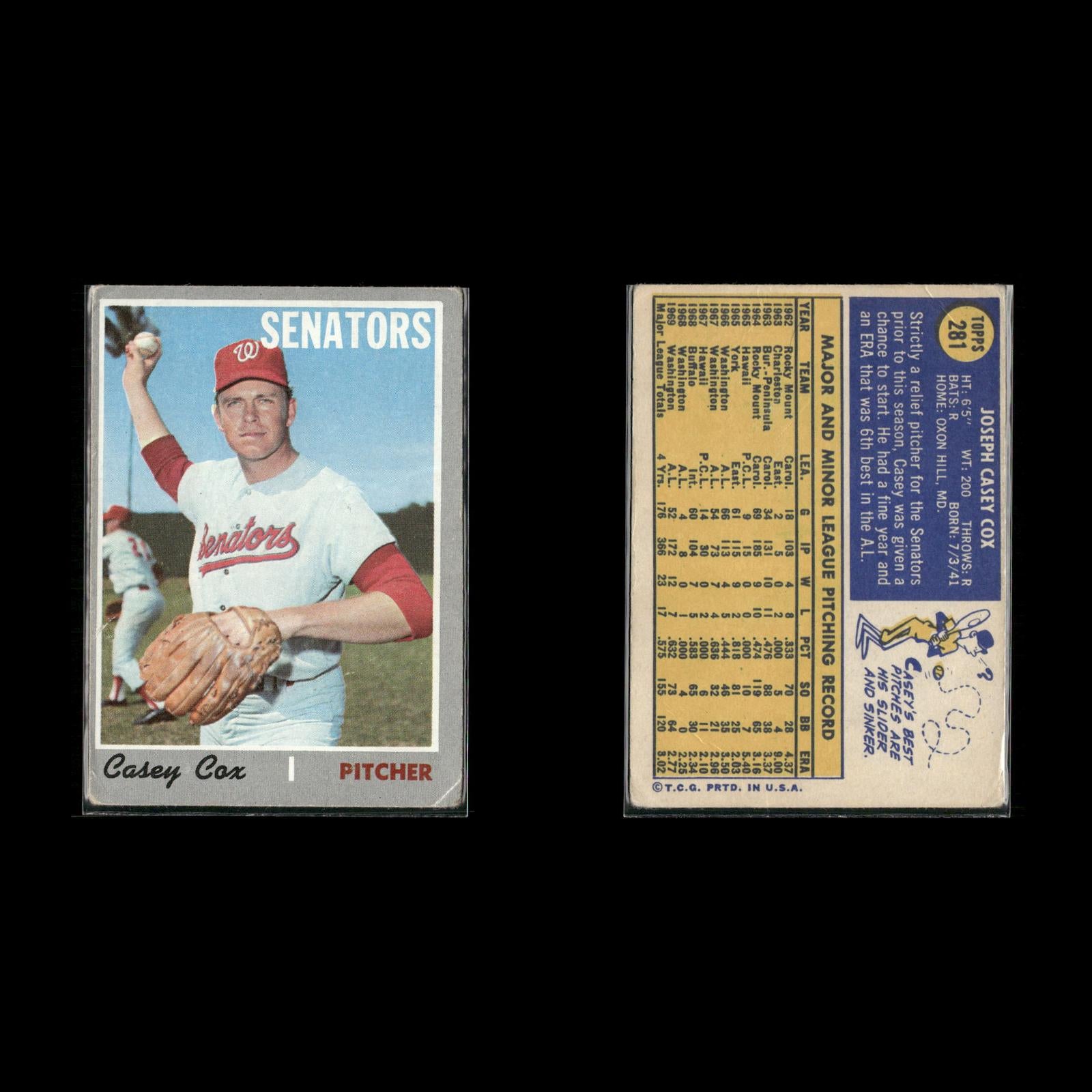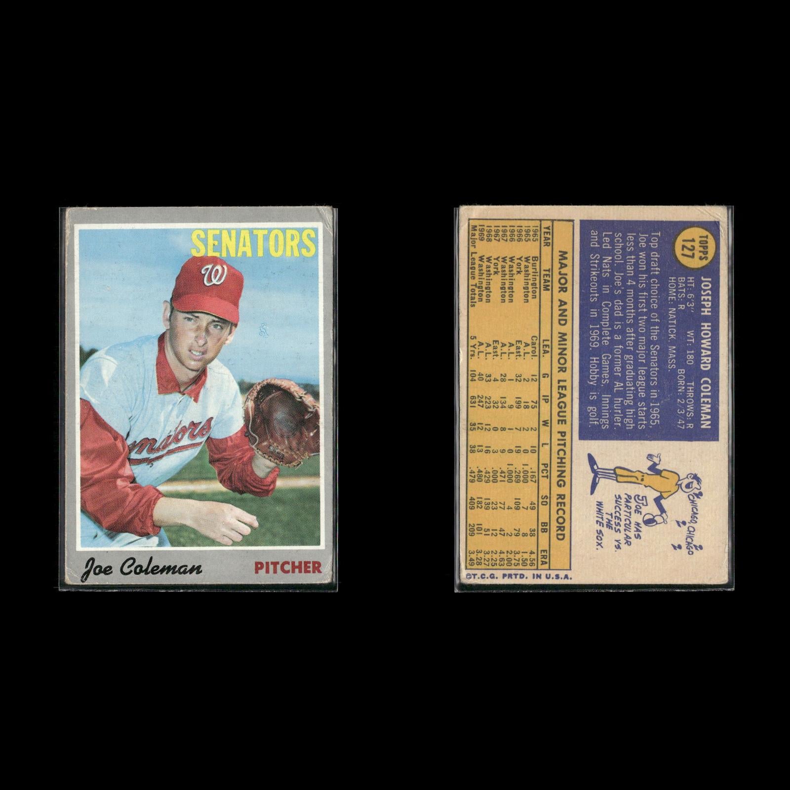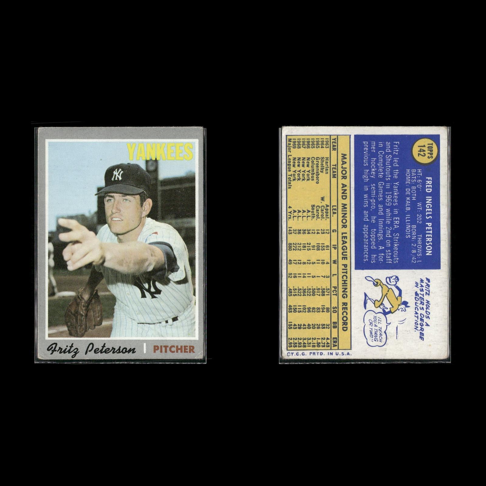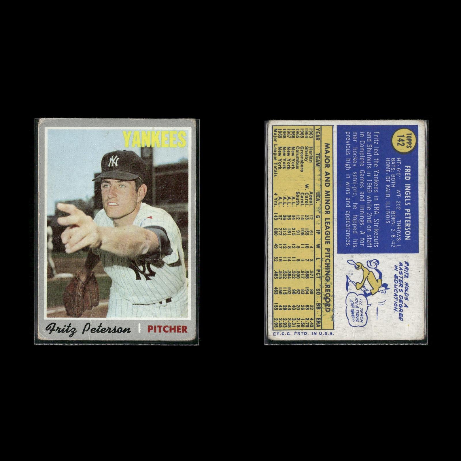 Bill Mazeroski #440 1970 Topps Pittsburgh Pirates Bobby Pfeil Rookie #99 1970 Topps New York Mets Fred Talbot #287 1970 Topps Oakland Athletics Chuck Hinton #27 1970 Topps Cleveland Indians Curt Blefary #297 1970 Topps New York Yankees Fritz Peterson #142 1970 Topps New York Yankees Ed Kranepool #557 1970 Topps New York Mets Fritz Peterson #142 1970 Topps New York Yankees Mike Ryan #591 1970 Topps Philadelphia Phillies Billy Wilson #28 1970 Topps Philadelphia Phillies Casey Cox #281 1970 Topps Washington Senators Joe Coleman #127 1970 Topps Washington Senators Billy Wynne Rookie #618 1970 Topps Chicago White Sox Tommy John #180 1970 Topps Chicago White Sox Jim Kaat #75 1970 Topps Minnesota Twins