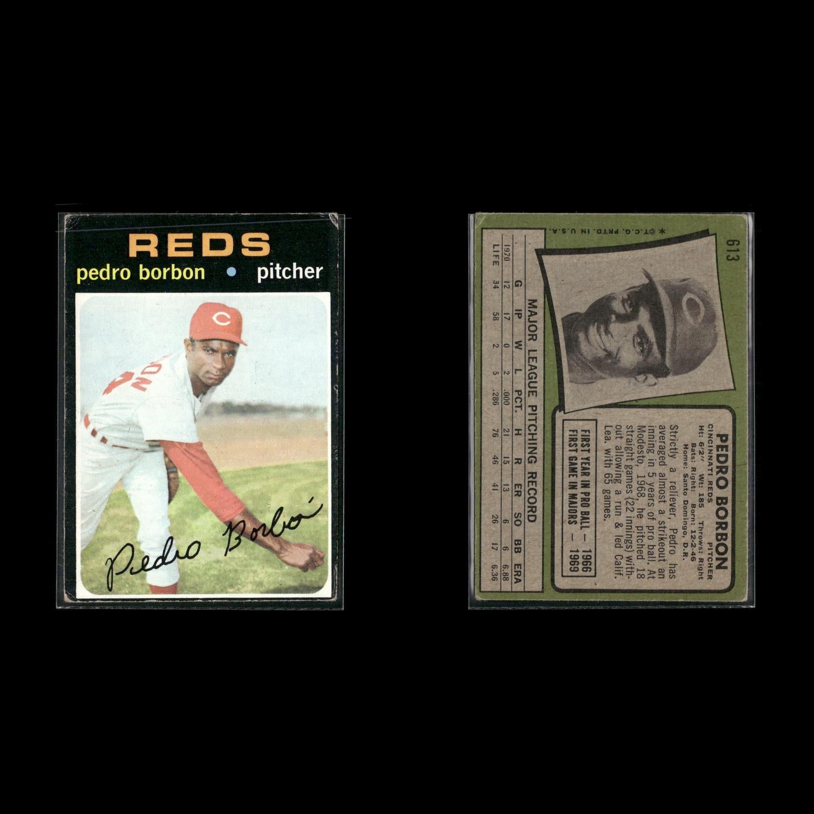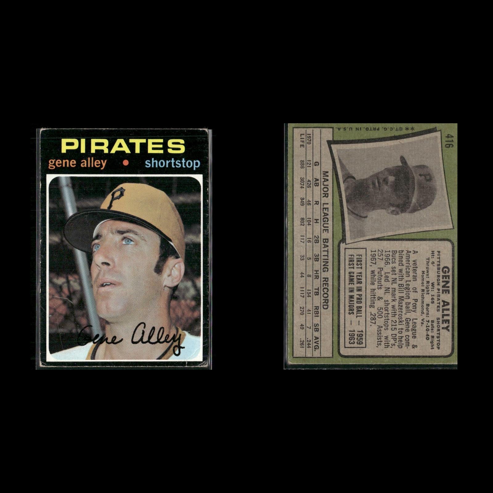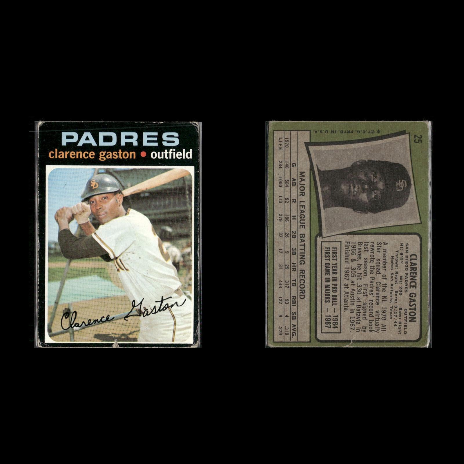 Bill Mazeroski #110 1971 Topps Pittsburgh Pirates Deron Johnson #490 1971 Topps Philadelphia Phillies Deron Johnson #490 1971 Topps Philadelphia Phillies Gene Alley #416 1971 Topps Pittsburgh Pirates Fred Wenz #92 1971 Topps Philadelphia Phillies Bob Robertson #255 1971 Topps Pittsburgh Pirates Jack Heidemann Rookie #87 1971 Topps Cleveland Indians Buddy Bradford #552 1971 Topps Cleveland Indians Dal Maxvill #476 1971 Topps St. Louis Cardinals Nelson Briles #257 1971 Topps St. Louis Cardinals Ted Simmons Rookie #117 1971 Topps St. Louis Cardinals Clarence Gaston #25 1971 Topps San Diego Padres Pedro Borbon #613 1971 Topps Cincinnati Reds Lee May #40 1971 Topps Cincinnati Reds Bill Mazeroski #760 1972 Topps Pittsburgh Pirates Steve Hovley #109 1971 Topps Oakland Athletics Padres 1972 Rookie Stars (Darcy Fast / Derrel Thomas / Mike Ivie) Rookie #457 1972 Topps San Diego Padres Rick Monday #135 1971 Topps Oakland Athletics New York Mets #362 1972 Topps New York Mets Dave Baldwin #48 1971 Topps Milwaukee Brewers Houston Astros #282 1972 Topps Houston Astros Astros 1972 Rookie Stars (Bob Fenwick / Bob Stinson) #679 1972 Topps Houston Astros Reggie Smith #566 1972 Topps Boston Red Sox Gaylord Perry #285 1972 Topps Cleveland Indians Rick Monday #135 1971 Topps Oakland Athletics Skip Lockwood #433 1971 Topps Milwaukee Brewers Cy Acosta #634 1975 Topps Chicago White Sox Cesar Tovar #165 1971 Topps Minnesota Twins Jorge Orta #184 1975 Topps Chicago White Sox Tony Oliva #290 1971 Topps Minnesota Twins