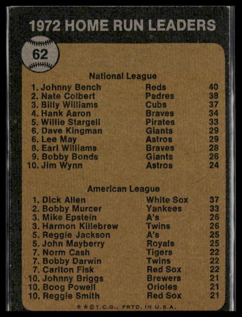 1972 Home Run Leaders (Johnny Bench / Dick Allen) LL #62 1973 Topps