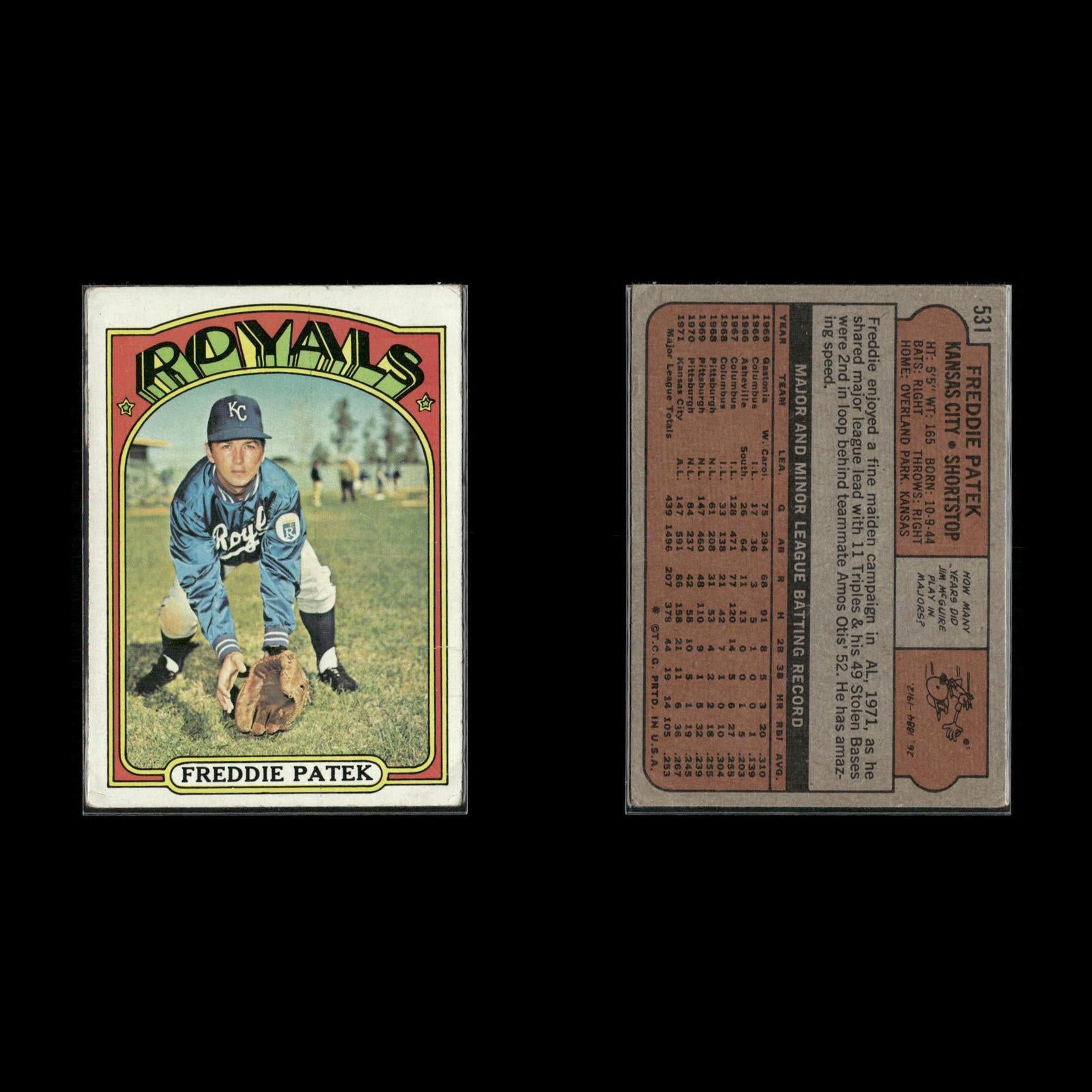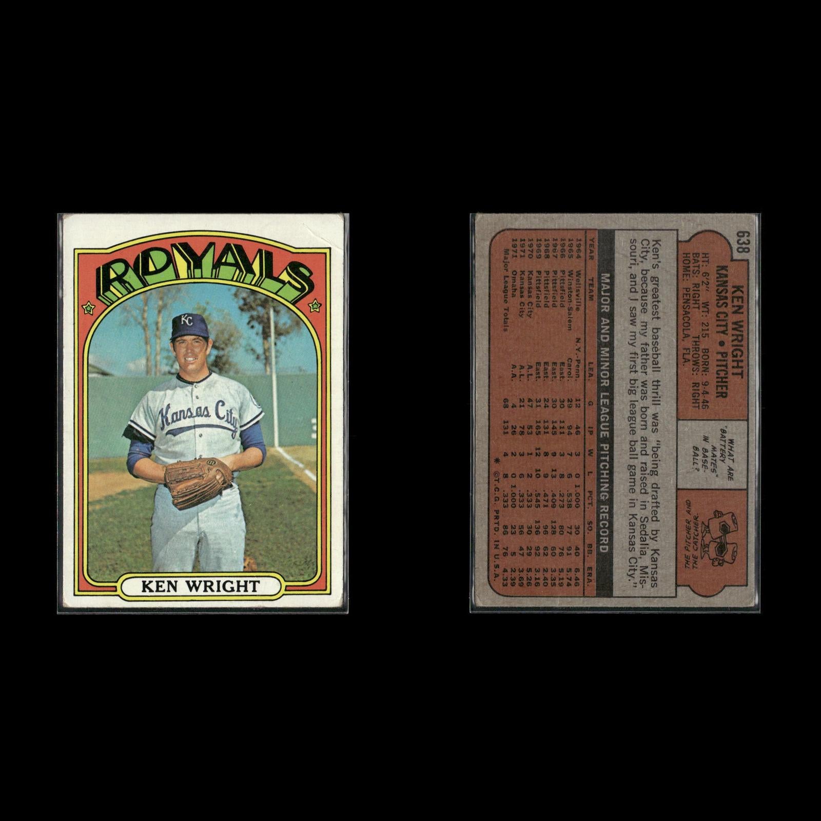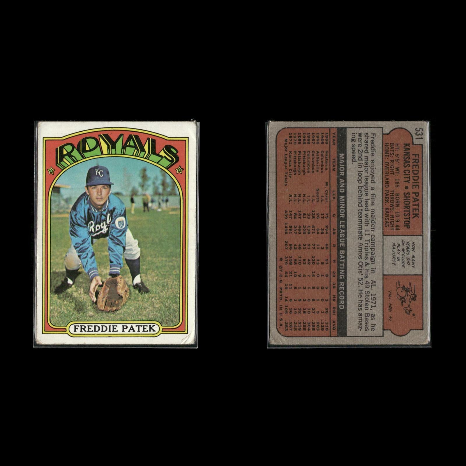Al Fitzmorris #349 1972 Topps Kansas City Royals Cookie Rojas #415 1972 Topps Kansas City Royals Freddie Patek #531 1972 Topps Kansas City Royals Ed Kirkpatrick #569 1972 Topps Kansas City Royals Ed Kirkpatrick #569 1972 Topps Kansas City Royals Bobby Knoop #664 1972 Topps Kansas City Royals Ken Wright #638 1972 Topps Kansas City Royals Freddie Patek #531 1972 Topps Kansas City Royals
