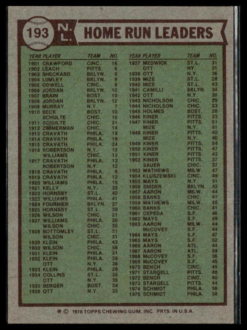 1975 NL Home Run Leaders (Schmidt/Kingman) #193 1976 Topps