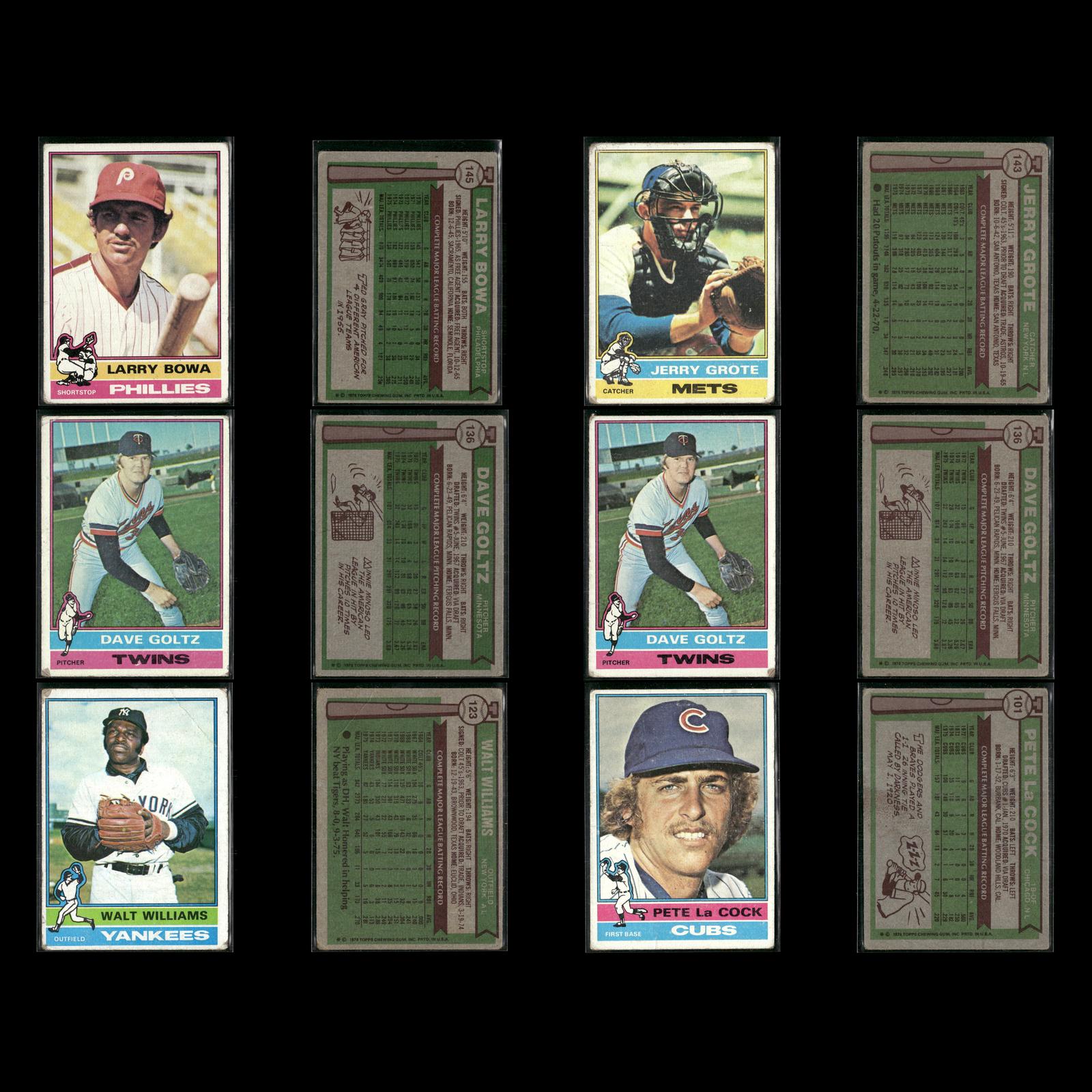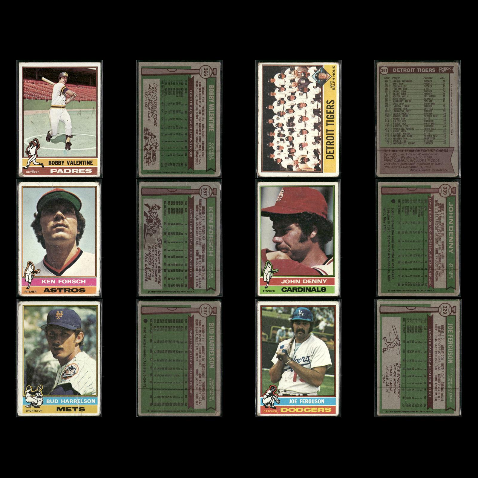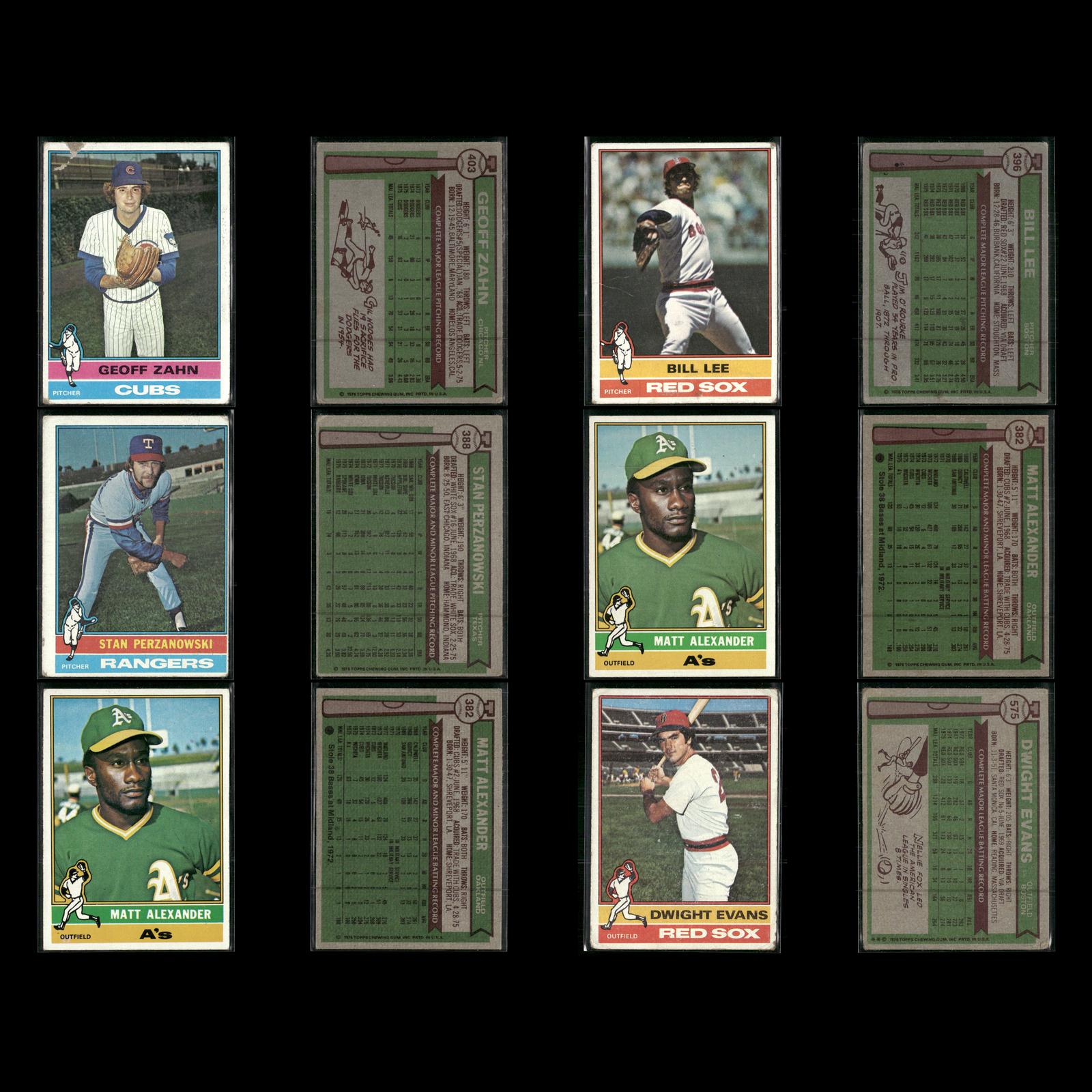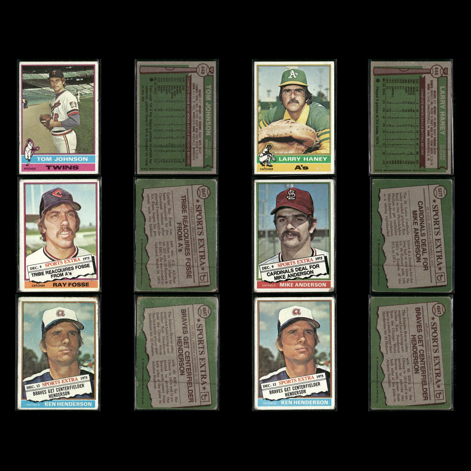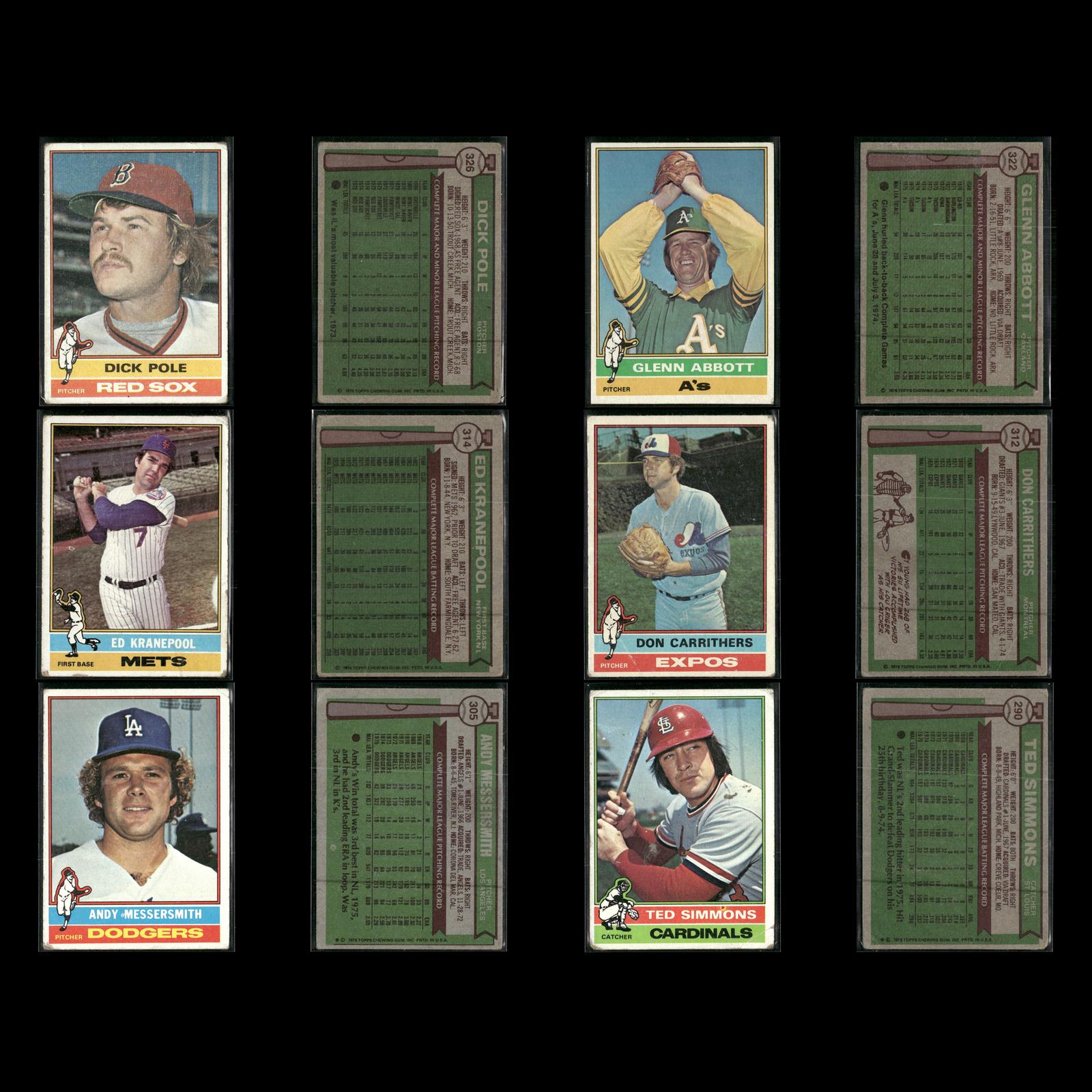Leron Lee #487 1976 Topps Los Angeles Dodgers Bruce Dal Canton #486 1976 Topps Atlanta Braves Rudy May #481 1976 Topps New York Yankees Rawly Eastwick #469 1976 Topps Cincinnati Reds Tom Johnson #448 1976 Topps Minnesota Twins Larry Haney #446 1976 Topps Oakland Athletics Ray Fosse #554T 1976 Topps Traded Cleveland Indians Mike Anderson #527T 1976 Topps Traded St. Louis Cardinals Ken Henderson #464T 1976 Topps Traded Atlanta Braves Ken Henderson #464T 1976 Topps Traded Atlanta Braves Bill Singer #411T 1976 Topps Traded Texas Rangers Bobby Bonds #380T 1976 Topps Traded California Angels Pat Dobson #296T 1976 Topps Traded Cleveland Indians Tom House #231T 1976 Topps Traded Boston Red Sox Tom House #231T 1976 Topps Traded Boston Red Sox Clay Carroll #211T 1976 Topps Traded Chicago White Sox Rusty Staub #120T 1976 Topps Traded Detroit Tigers Lee Lacy #99T 1976 Topps Traded Atlanta Braves Mike Norris Rookie #653 1976 Topps Oakland Athletics Ed Armbrister #652 1976 Topps Cincinnati Reds Ramon Hernandez #647 1976 Topps Pittsburgh Pirates Darrell Porter #645 1976 Topps Milwaukee Brewers Bill Madlock #640 1976 Topps Chicago Cubs Tony Taylor #624 1976 Topps Philadelphia Phillies Rick Auerbach #622 1976 Topps Los Angeles Dodgers Al Oliver #620 1976 Topps Pittsburgh Pirates Bill Butler #619 1976 Topps Minnesota Twins Tim Johnson #613 1976 Topps Milwaukee Brewers Rich Hinton #607 1976 Topps Chicago White Sox Joe Lovitto #604 1976 Topps Texas Rangers Jim Holt #603 1976 Topps Oakland Athletics St. Louis Cardinals #581 1976 Topps Team Checklists St. Louis Cardinals Maximino Leon #576 1976 Topps Atlanta Braves Ken Forsch #357 1976 Topps Houston Astros John Denny #339 1976 Topps St. Louis Cardinals Bud Harrelson #337 1976 Topps New York Mets Joe Ferguson #329 1976 Topps Los Angeles Dodgers Dick Pole #326 1976 Topps Boston Red Sox Glenn Abbott #322 1976 Topps Oakland Athletics Ed Kranepool #314 1976 Topps New York Mets Don Carrithers #312 1976 Topps Montreal Expos Andy Messersmith #305 1976 Topps Los Angeles Dodgers Ted Simmons #290 1976 Topps St. Louis Cardinals Mike Cuellar #285 1976 Topps Baltimore Orioles Mike Cuellar #285 1976 Topps Baltimore Orioles Roy Howell Rookie #279 1976 Topps Texas Rangers Jim Lonborg #271 1976 Topps Philadelphia Phillies Rick Austin #269 1976 Topps Milwaukee Brewers Darrel Chaney #259 1976 Topps Cincinnati Reds Dan Meyer #242 1976 Topps Detroit Tigers Jerry Remy Rookie #229 1976 Topps California Angels Roy White #225 1976 Topps New York Yankees Jim Todd #221 1976 Topps Oakland Athletics Rick Rhoden #439 1976 Topps Los Angeles Dodgers Doug DeCinces #438 1976 Topps Baltimore Orioles Gene Clines #417 1976 Topps New York Mets Jim Crawford #428 1976 Topps Houston Astros Jim Crawford #428 1976 Topps Houston Astros Kurt Bevacqua #427 1976 Topps Milwaukee Brewers Ed Halicki #423 1976 Topps San Francisco Giants Johnny Grubb #422 1976 Topps San Diego Padres Reggie Cleveland #419 1976 Topps Boston Red Sox Pete Varney Rookie #413 1976 Topps Chicago White Sox Toby Harrah #412 1976 Topps Texas Rangers Bill Singer #411 1976 Topps California Angels Tom Underwood #407 1976 Topps Philadelphia Phillies Enos Cabell #404 1976 Topps Houston Astros Geoff Zahn #403 1976 Topps Chicago Cubs Bill Lee #396 1976 Topps Boston Red Sox Stan Perzanowski Rookie #388 1976 Topps Texas Rangers Matt Alexander Rookie #382 1976 Topps Oakland Athletics Matt Alexander Rookie #382 1976 Topps Oakland Athletics Dwight Evans #575 1976 Topps Boston Red Sox Bubble Gum Blowing Champ (Kurt Bevacqua) #564 1976 Topps Milwaukee Brewers Jorge Orta #560 1976 Topps Chicago White Sox Dan Spillner #557 1976 Topps San Diego Padres Minnesota Twins #556 1976 Topps Minnesota Twins Roric Harrison #547 1976 Topps Cleveland Indians Keith Hernandez #542 1976 Topps St. Louis Cardinals Bill Freehan #540 1976 Topps Detroit Tigers Pete Falcone Rookie #524 1976 Topps San Francisco Giants Ted Sizemore #522 1976 Topps St. Louis Cardinals Bart Johnson #513 1976 Topps Chicago White Sox Mark Belanger #505 1976 Topps Baltimore Orioles Pittsburgh Pirates #504 1976 Topps Pittsburgh Pirates Joe McIntosh Rookie #497 1976 Topps San Diego Padres Marty Pattin #492 1976 Topps Kansas City Royals