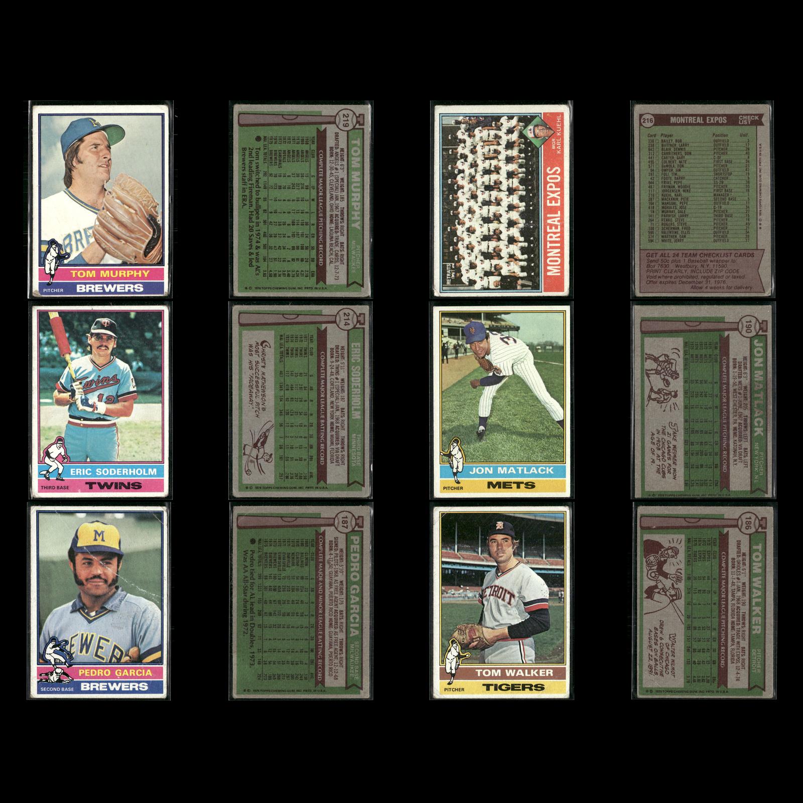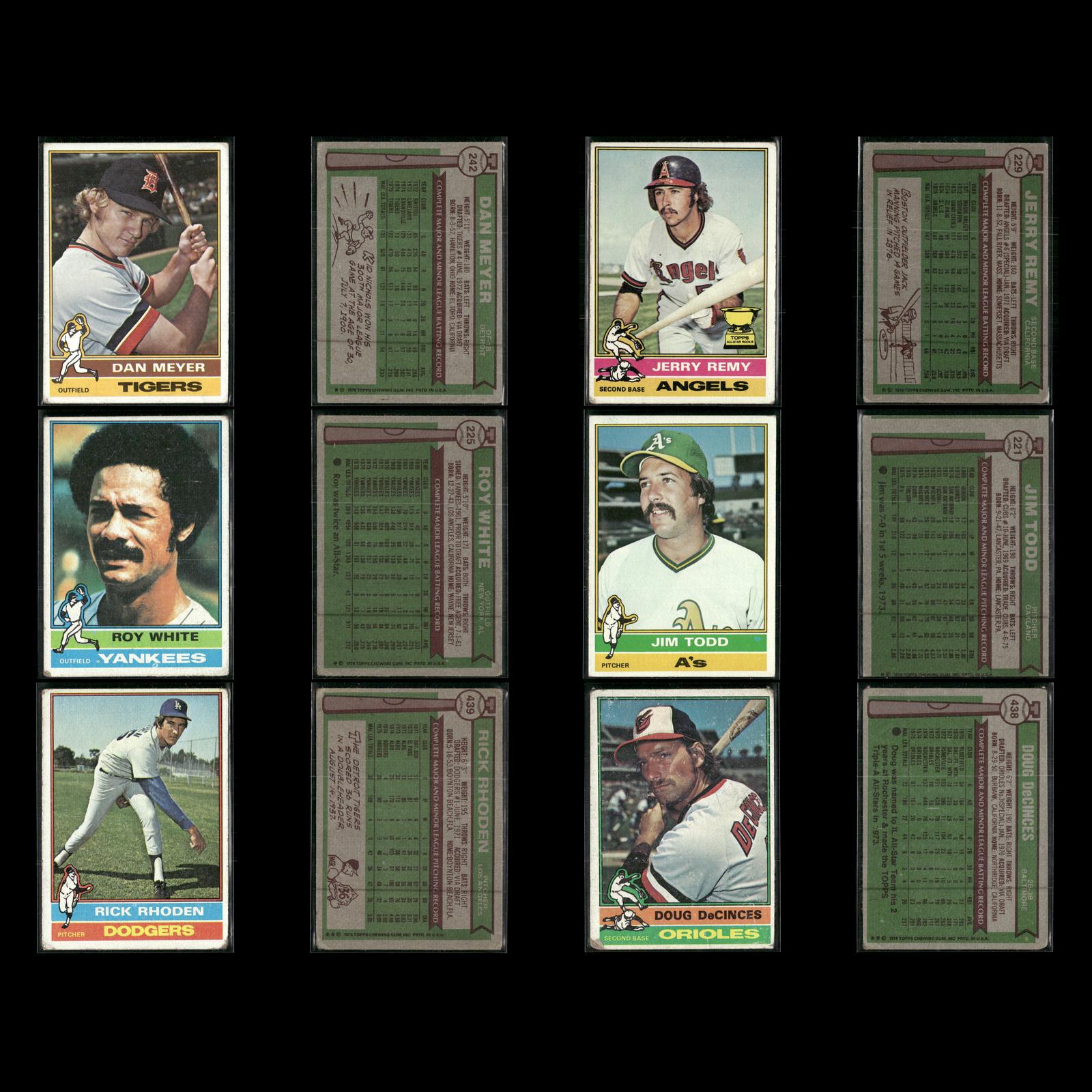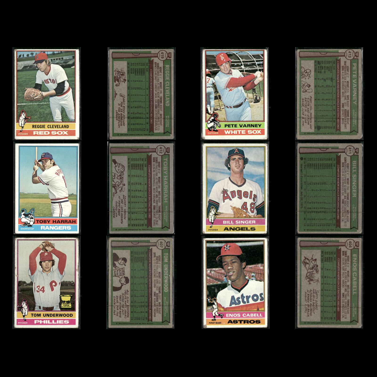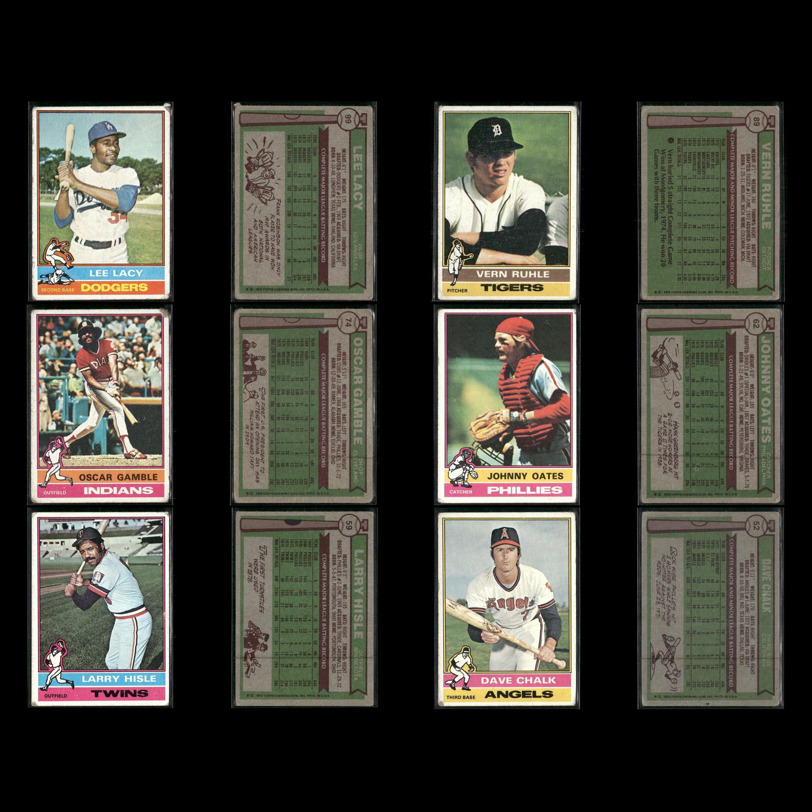 Leron Lee #487 1976 Topps Los Angeles Dodgers Bruce Dal Canton #486 1976 Topps Atlanta Braves Rudy May #481 1976 Topps New York Yankees Rawly Eastwick #469 1976 Topps Cincinnati Reds Tom Johnson #448 1976 Topps Minnesota Twins Larry Haney #446 1976 Topps Oakland Athletics Ray Fosse #554T 1976 Topps Traded Cleveland Indians Mike Anderson #527T 1976 Topps Traded St. Louis Cardinals Ken Henderson #464T 1976 Topps Traded Atlanta Braves Ken Henderson #464T 1976 Topps Traded Atlanta Braves Bill Singer #411T 1976 Topps Traded Texas Rangers Bobby Bonds #380T 1976 Topps Traded California Angels Pat Dobson #296T 1976 Topps Traded Cleveland Indians Tom House #231T 1976 Topps Traded Boston Red Sox Tom House #231T 1976 Topps Traded Boston Red Sox Clay Carroll #211T 1976 Topps Traded Chicago White Sox Rusty Staub #120T 1976 Topps Traded Detroit Tigers Lee Lacy #99T 1976 Topps Traded Atlanta Braves Mike Norris Rookie #653 1976 Topps Oakland Athletics Ed Armbrister #652 1976 Topps Cincinnati Reds Ramon Hernandez #647 1976 Topps Pittsburgh Pirates Darrell Porter #645 1976 Topps Milwaukee Brewers Bill Madlock #640 1976 Topps Chicago Cubs Tony Taylor #624 1976 Topps Philadelphia Phillies Rick Auerbach #622 1976 Topps Los Angeles Dodgers Al Oliver #620 1976 Topps Pittsburgh Pirates Bill Butler #619 1976 Topps Minnesota Twins Tim Johnson #613 1976 Topps Milwaukee Brewers Rich Hinton #607 1976 Topps Chicago White Sox Joe Lovitto #604 1976 Topps Texas Rangers Jim Holt #603 1976 Topps Oakland Athletics St. Louis Cardinals #581 1976 Topps Team Checklists St. Louis Cardinals Maximino Leon #576 1976 Topps Atlanta Braves Ken Forsch #357 1976 Topps Houston Astros John Denny #339 1976 Topps St. Louis Cardinals Bud Harrelson #337 1976 Topps New York Mets Joe Ferguson #329 1976 Topps Los Angeles Dodgers Dick Pole #326 1976 Topps Boston Red Sox Glenn Abbott #322 1976 Topps Oakland Athletics Ed Kranepool #314 1976 Topps New York Mets Don Carrithers #312 1976 Topps Montreal Expos Andy Messersmith #305 1976 Topps Los Angeles Dodgers Ted Simmons #290 1976 Topps St. Louis Cardinals Mike Cuellar #285 1976 Topps Baltimore Orioles Mike Cuellar #285 1976 Topps Baltimore Orioles Roy Howell Rookie #279 1976 Topps Texas Rangers Jim Lonborg #271 1976 Topps Philadelphia Phillies Rick Austin #269 1976 Topps Milwaukee Brewers Darrel Chaney #259 1976 Topps Cincinnati Reds Dan Meyer #242 1976 Topps Detroit Tigers Jerry Remy Rookie #229 1976 Topps California Angels Roy White #225 1976 Topps New York Yankees Jim Todd #221 1976 Topps Oakland Athletics Rick Rhoden #439 1976 Topps Los Angeles Dodgers Doug DeCinces #438 1976 Topps Baltimore Orioles Gene Clines #417 1976 Topps New York Mets Jim Crawford #428 1976 Topps Houston Astros Jim Crawford #428 1976 Topps Houston Astros Kurt Bevacqua #427 1976 Topps Milwaukee Brewers Ed Halicki #423 1976 Topps San Francisco Giants Johnny Grubb #422 1976 Topps San Diego Padres Reggie Cleveland #419 1976 Topps Boston Red Sox Pete Varney Rookie #413 1976 Topps Chicago White Sox Toby Harrah #412 1976 Topps Texas Rangers Bill Singer #411 1976 Topps California Angels Tom Underwood #407 1976 Topps Philadelphia Phillies Enos Cabell #404 1976 Topps Houston Astros Geoff Zahn #403 1976 Topps Chicago Cubs Bill Lee #396 1976 Topps Boston Red Sox Stan Perzanowski Rookie #388 1976 Topps Texas Rangers Matt Alexander Rookie #382 1976 Topps Oakland Athletics Matt Alexander Rookie #382 1976 Topps Oakland Athletics Dwight Evans #575 1976 Topps Boston Red Sox Bubble Gum Blowing Champ (Kurt Bevacqua) #564 1976 Topps Milwaukee Brewers Jorge Orta #560 1976 Topps Chicago White Sox Dan Spillner #557 1976 Topps San Diego Padres Minnesota Twins #556 1976 Topps Minnesota Twins Roric Harrison #547 1976 Topps Cleveland Indians Keith Hernandez #542 1976 Topps St. Louis Cardinals Bill Freehan #540 1976 Topps Detroit Tigers Pete Falcone Rookie #524 1976 Topps San Francisco Giants Ted Sizemore #522 1976 Topps St. Louis Cardinals Bart Johnson #513 1976 Topps Chicago White Sox Mark Belanger #505 1976 Topps Baltimore Orioles Pittsburgh Pirates #504 1976 Topps Pittsburgh Pirates Joe McIntosh Rookie #497 1976 Topps San Diego Padres Marty Pattin #492 1976 Topps Kansas City Royals