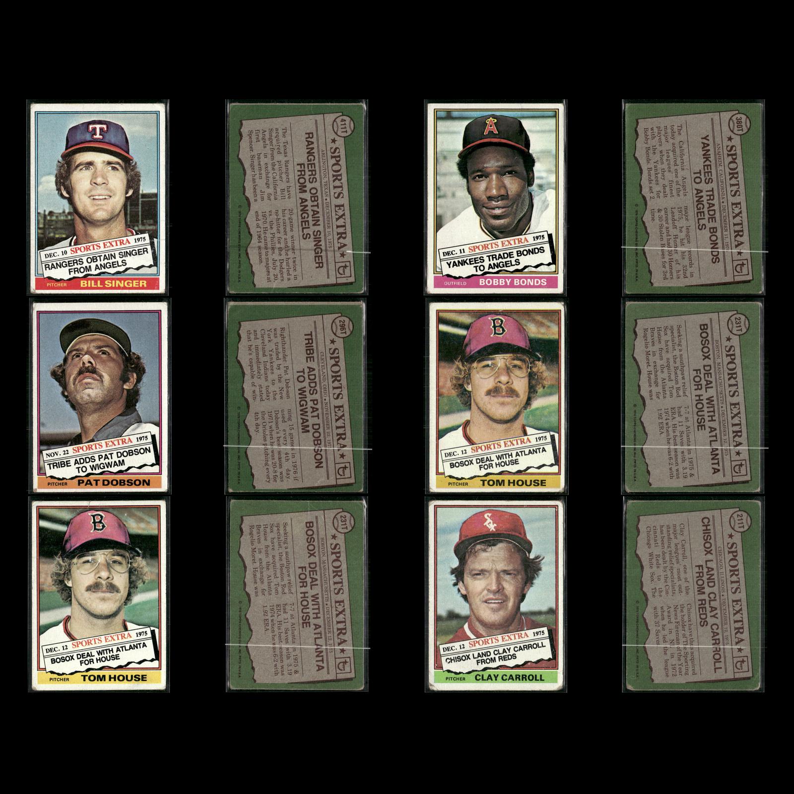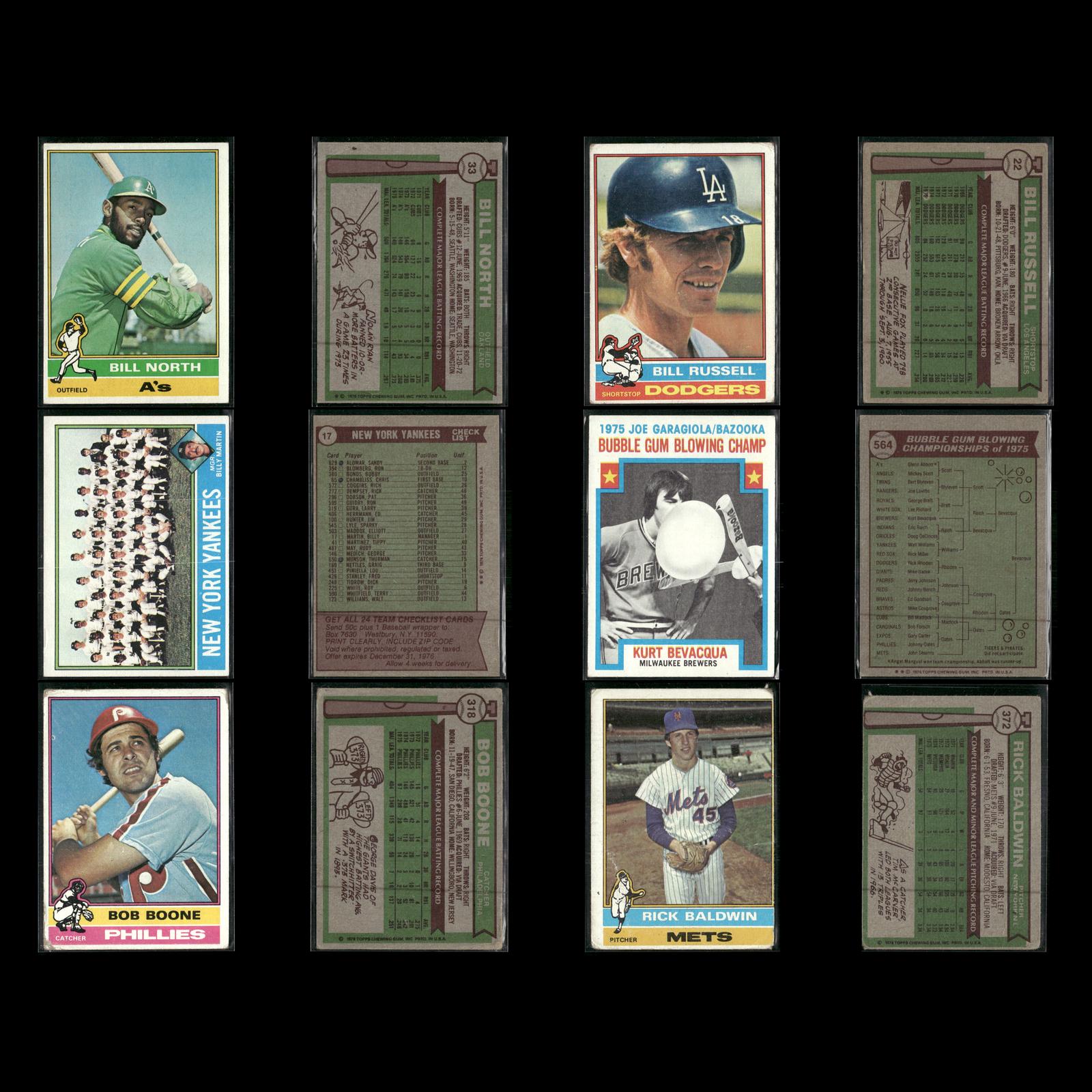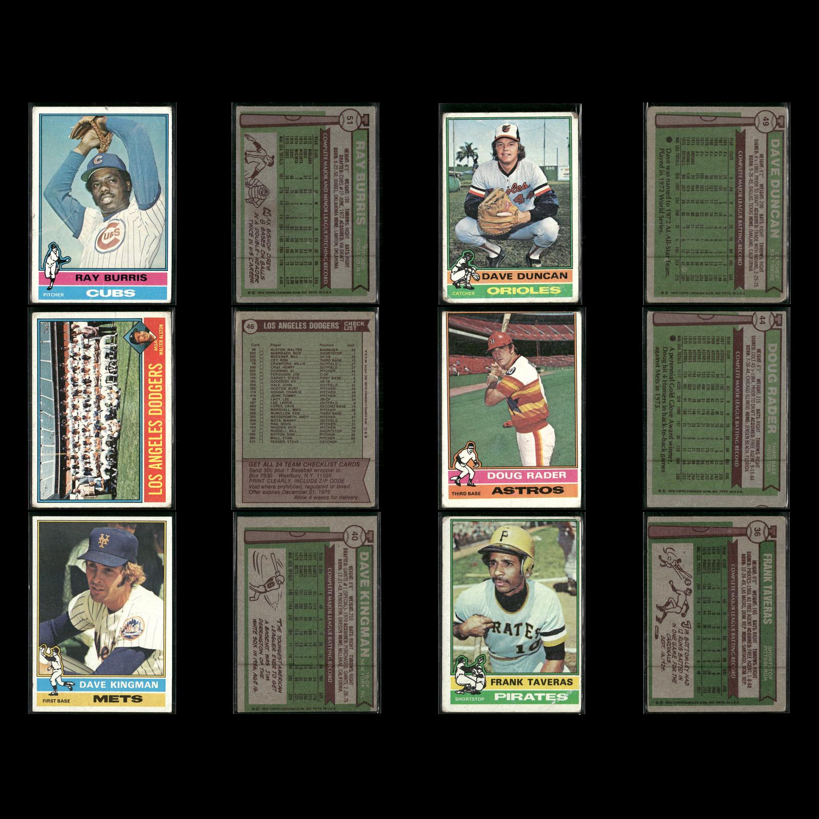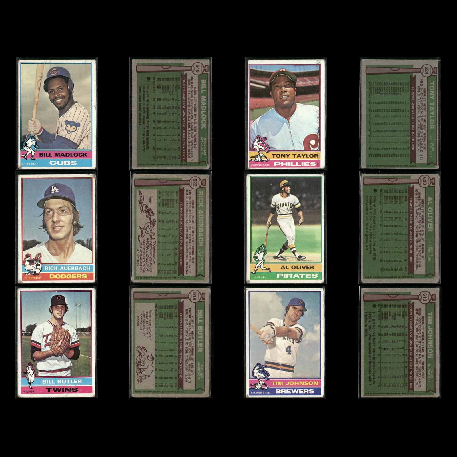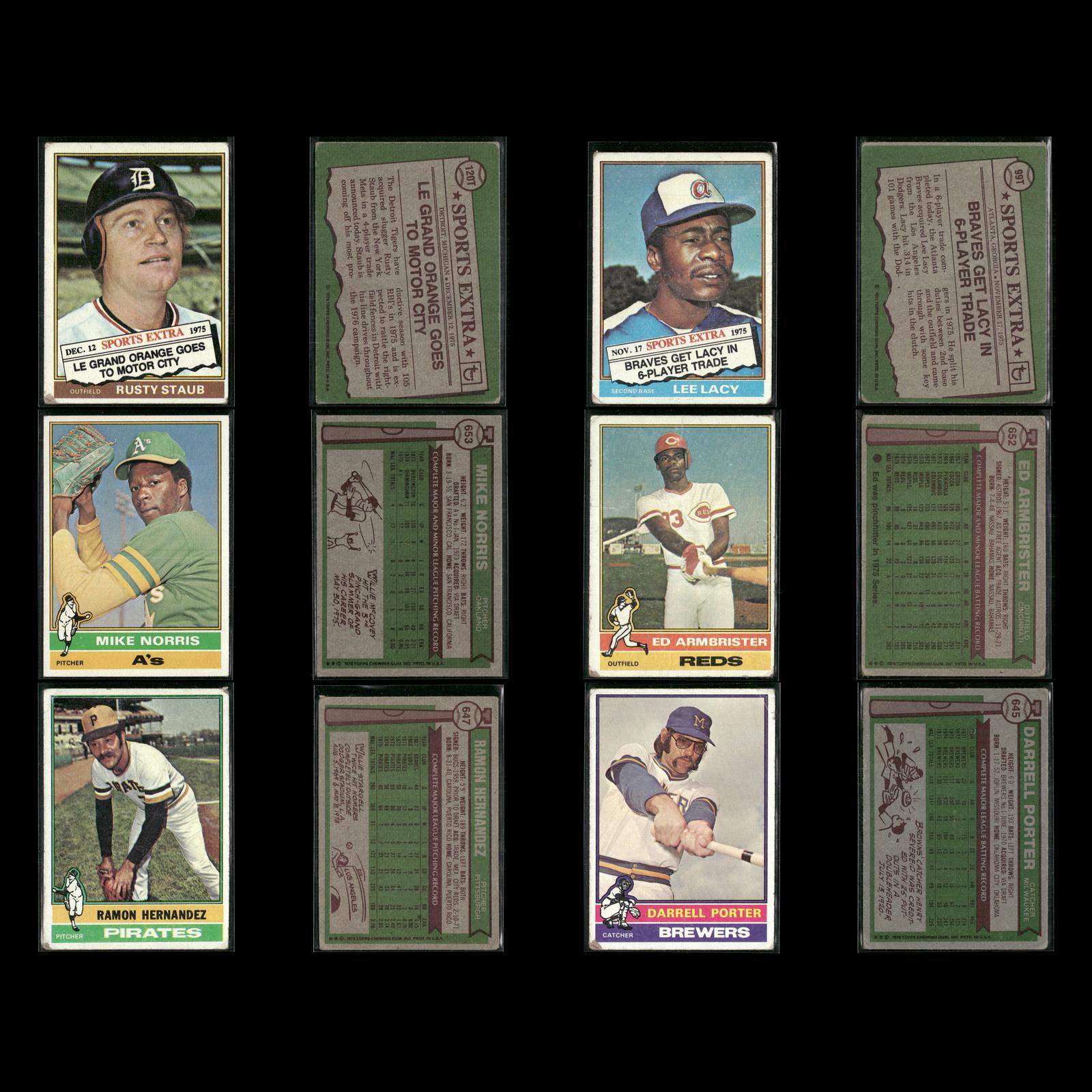 Leron Lee #487 1976 Topps Los Angeles Dodgers Bruce Dal Canton #486 1976 Topps Atlanta Braves Rudy May #481 1976 Topps New York Yankees Rawly Eastwick #469 1976 Topps Cincinnati Reds Tom Johnson #448 1976 Topps Minnesota Twins Larry Haney #446 1976 Topps Oakland Athletics Ray Fosse #554T 1976 Topps Traded Cleveland Indians Mike Anderson #527T 1976 Topps Traded St. Louis Cardinals Ken Henderson #464T 1976 Topps Traded Atlanta Braves Ken Henderson #464T 1976 Topps Traded Atlanta Braves Bill Singer #411T 1976 Topps Traded Texas Rangers Bobby Bonds #380T 1976 Topps Traded California Angels Pat Dobson #296T 1976 Topps Traded Cleveland Indians Tom House #231T 1976 Topps Traded Boston Red Sox Tom House #231T 1976 Topps Traded Boston Red Sox Clay Carroll #211T 1976 Topps Traded Chicago White Sox Rusty Staub #120T 1976 Topps Traded Detroit Tigers Lee Lacy #99T 1976 Topps Traded Atlanta Braves Mike Norris Rookie #653 1976 Topps Oakland Athletics Ed Armbrister #652 1976 Topps Cincinnati Reds Ramon Hernandez #647 1976 Topps Pittsburgh Pirates Darrell Porter #645 1976 Topps Milwaukee Brewers Bill Madlock #640 1976 Topps Chicago Cubs Tony Taylor #624 1976 Topps Philadelphia Phillies Rick Auerbach #622 1976 Topps Los Angeles Dodgers Al Oliver #620 1976 Topps Pittsburgh Pirates Bill Butler #619 1976 Topps Minnesota Twins Tim Johnson #613 1976 Topps Milwaukee Brewers Rich Hinton #607 1976 Topps Chicago White Sox Joe Lovitto #604 1976 Topps Texas Rangers Jim Holt #603 1976 Topps Oakland Athletics St. Louis Cardinals #581 1976 Topps Team Checklists St. Louis Cardinals Maximino Leon #576 1976 Topps Atlanta Braves Ken Forsch #357 1976 Topps Houston Astros John Denny #339 1976 Topps St. Louis Cardinals Bud Harrelson #337 1976 Topps New York Mets Joe Ferguson #329 1976 Topps Los Angeles Dodgers Dick Pole #326 1976 Topps Boston Red Sox Glenn Abbott #322 1976 Topps Oakland Athletics Ed Kranepool #314 1976 Topps New York Mets Don Carrithers #312 1976 Topps Montreal Expos Andy Messersmith #305 1976 Topps Los Angeles Dodgers Ted Simmons #290 1976 Topps St. Louis Cardinals Mike Cuellar #285 1976 Topps Baltimore Orioles Mike Cuellar #285 1976 Topps Baltimore Orioles Roy Howell Rookie #279 1976 Topps Texas Rangers Jim Lonborg #271 1976 Topps Philadelphia Phillies Rick Austin #269 1976 Topps Milwaukee Brewers Darrel Chaney #259 1976 Topps Cincinnati Reds Dan Meyer #242 1976 Topps Detroit Tigers Jerry Remy Rookie #229 1976 Topps California Angels Roy White #225 1976 Topps New York Yankees Jim Todd #221 1976 Topps Oakland Athletics Rick Rhoden #439 1976 Topps Los Angeles Dodgers Doug DeCinces #438 1976 Topps Baltimore Orioles Gene Clines #417 1976 Topps New York Mets Jim Crawford #428 1976 Topps Houston Astros Jim Crawford #428 1976 Topps Houston Astros Kurt Bevacqua #427 1976 Topps Milwaukee Brewers Ed Halicki #423 1976 Topps San Francisco Giants Johnny Grubb #422 1976 Topps San Diego Padres Reggie Cleveland #419 1976 Topps Boston Red Sox Pete Varney Rookie #413 1976 Topps Chicago White Sox Toby Harrah #412 1976 Topps Texas Rangers Bill Singer #411 1976 Topps California Angels Tom Underwood #407 1976 Topps Philadelphia Phillies Enos Cabell #404 1976 Topps Houston Astros Geoff Zahn #403 1976 Topps Chicago Cubs Bill Lee #396 1976 Topps Boston Red Sox Stan Perzanowski Rookie #388 1976 Topps Texas Rangers Matt Alexander Rookie #382 1976 Topps Oakland Athletics Matt Alexander Rookie #382 1976 Topps Oakland Athletics Dwight Evans #575 1976 Topps Boston Red Sox Bubble Gum Blowing Champ (Kurt Bevacqua) #564 1976 Topps Milwaukee Brewers Jorge Orta #560 1976 Topps Chicago White Sox Dan Spillner #557 1976 Topps San Diego Padres Minnesota Twins #556 1976 Topps Minnesota Twins Roric Harrison #547 1976 Topps Cleveland Indians Keith Hernandez #542 1976 Topps St. Louis Cardinals Bill Freehan #540 1976 Topps Detroit Tigers Pete Falcone Rookie #524 1976 Topps San Francisco Giants Ted Sizemore #522 1976 Topps St. Louis Cardinals Bart Johnson #513 1976 Topps Chicago White Sox Mark Belanger #505 1976 Topps Baltimore Orioles Pittsburgh Pirates #504 1976 Topps Pittsburgh Pirates Joe McIntosh Rookie #497 1976 Topps San Diego Padres Marty Pattin #492 1976 Topps Kansas City Royals