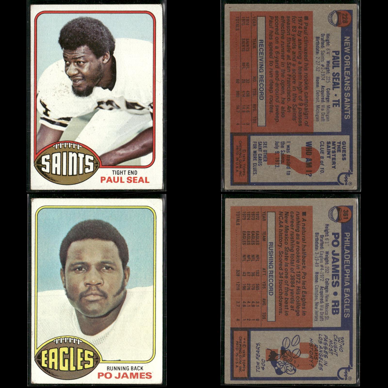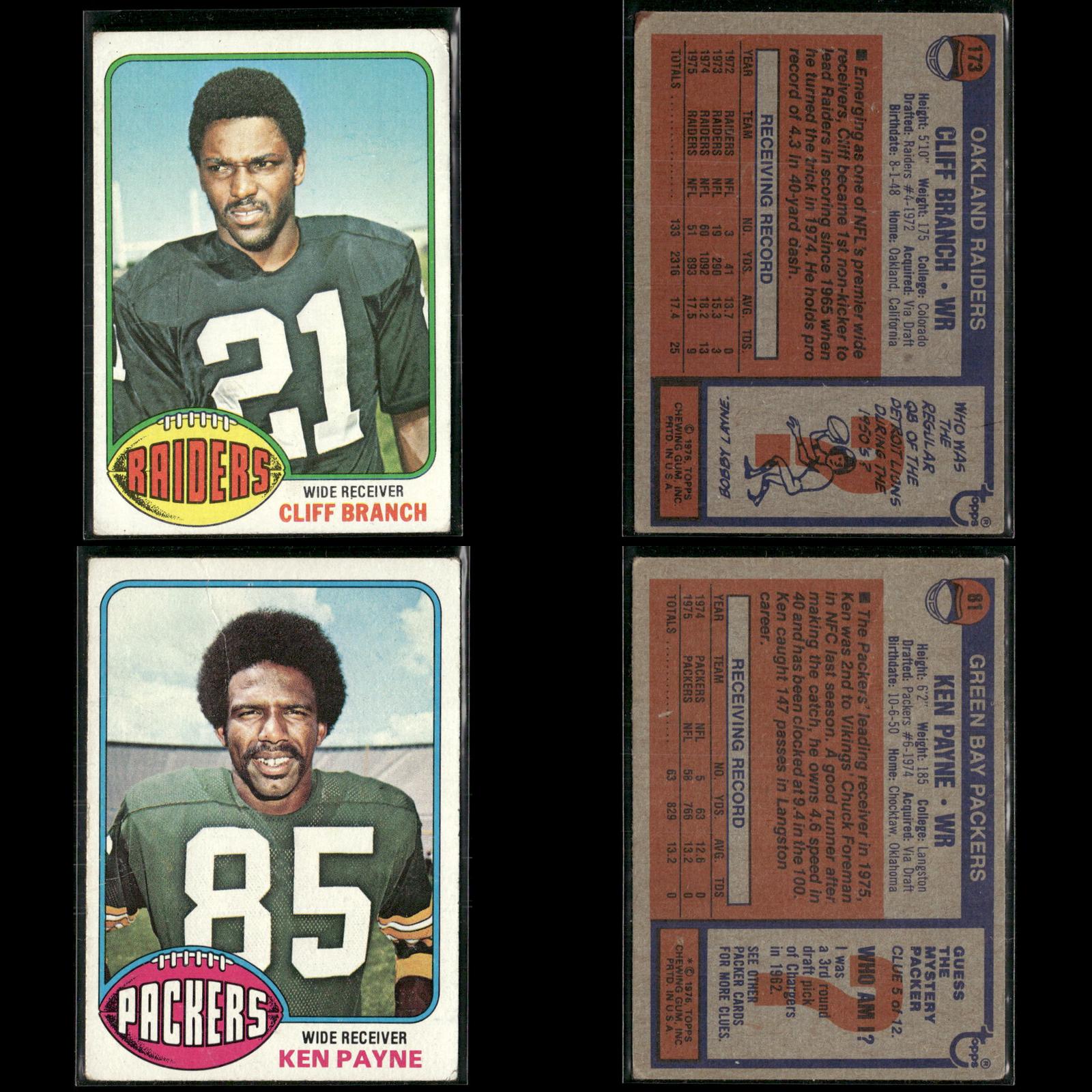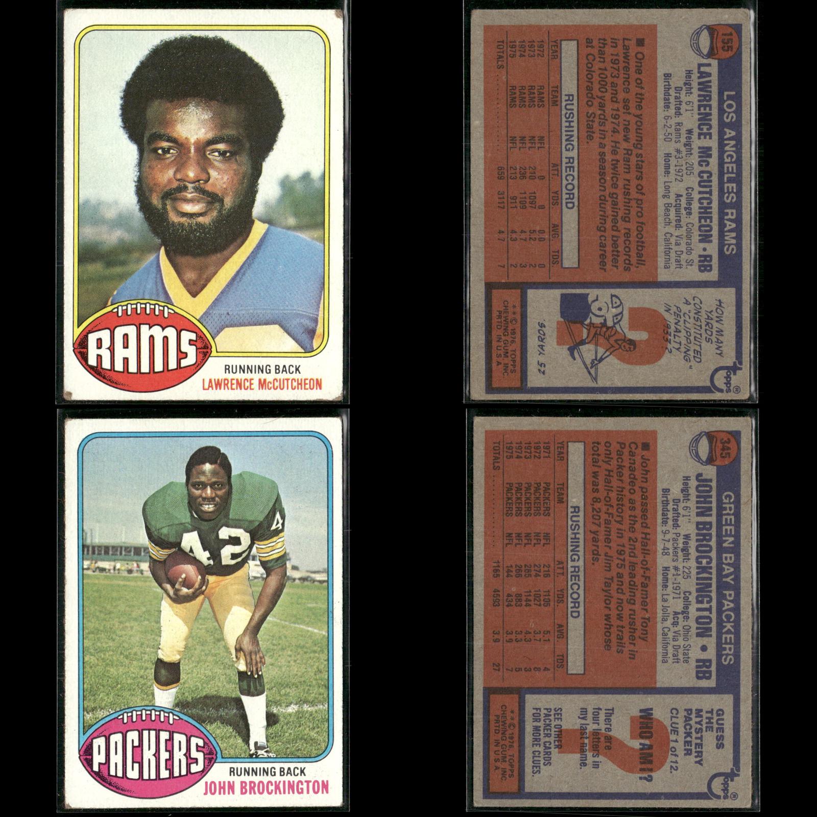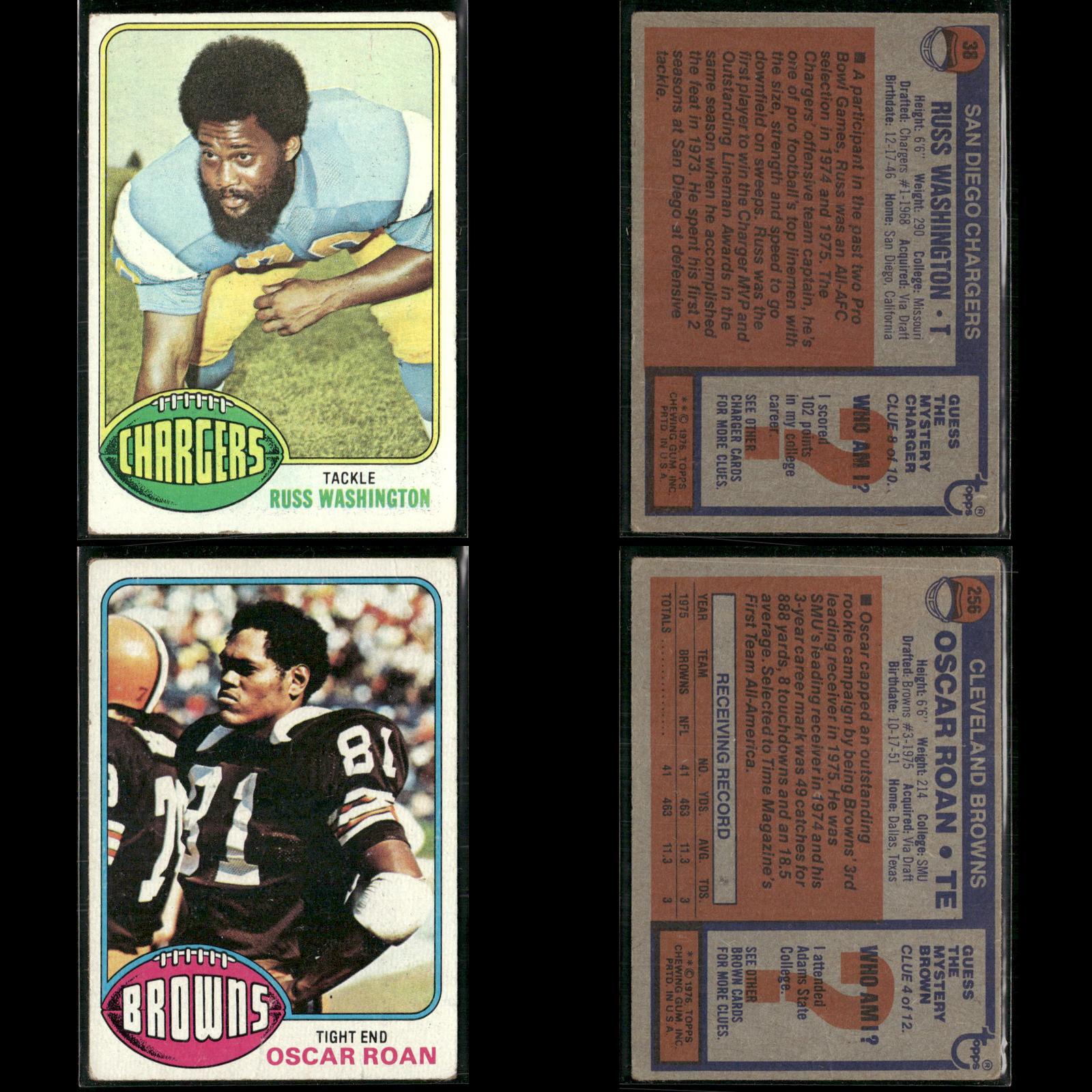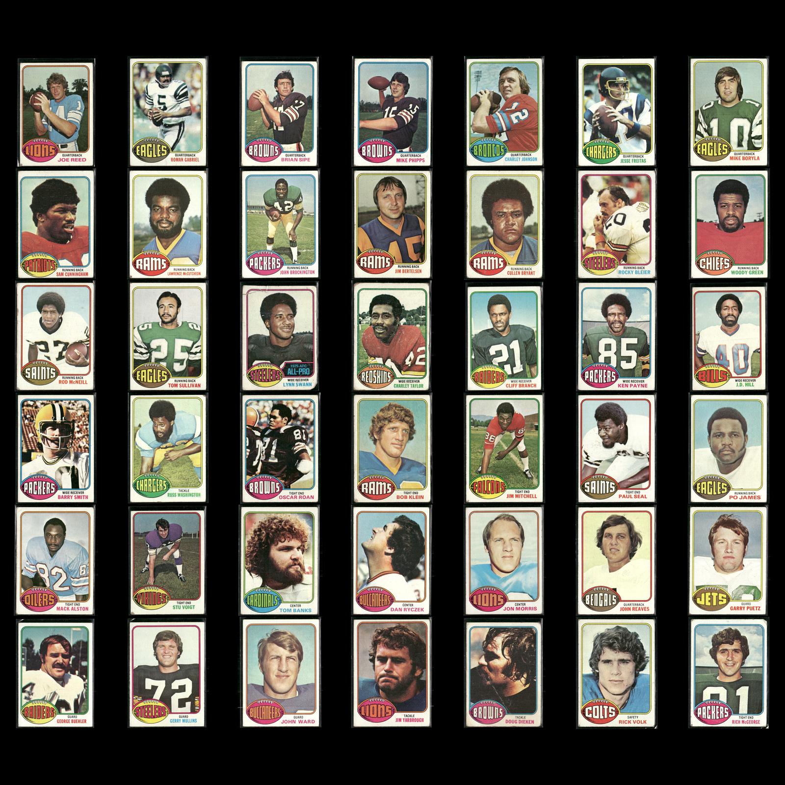 Joe Reed #137 1976 Topps Detroit Lions Roman Gabriel #145 1976 Topps Philadelphia Eagles Brian Sipe Rookie #516 1976 Topps Cleveland Browns Mike Phipps #346 1976 Topps Cleveland Browns Charley Johnson #68 1976 Topps Denver Broncos Jesse Freitas #237 1976 Topps San Diego Chargers Mike Boryla #321 1976 Topps Philadelphia Eagles Sam Cunningham #434 1976 Topps New England Patriots Lawrence McCutcheon #155 1976 Topps Los Angeles Rams John Brockington #345 1976 Topps Green Bay Packers Jim Bertelsen #493 1976 Topps Los Angeles Rams Cullen Bryant Rookie #373 1976 Topps Los Angeles Rams Rocky Bleier #522 1976 Topps Pittsburgh Steelers Woody Green Rookie #336 1976 Topps Kansas City Chiefs Rod McNeill #294 1976 Topps New Orleans Saints Tom Sullivan #39 1976 Topps Philadelphia Eagles Lynn Swann #140 1976 Topps Pittsburgh Steelers Charley Taylor #450 1976 Topps Washington Redskins Cliff Branch #173 1976 Topps Oakland Raiders Ken Payne Rookie #81 1976 Topps Green Bay Packers J.D. Hill #17 1976 Topps Buffalo Bills Barry Smith #412 1976 Topps Green Bay Packers Russ Washington #38 1976 Topps San Diego Chargers Oscar Roan Rookie #256 1976 Topps Cleveland Browns Bob Klein #42 1976 Topps Los Angeles Rams Jim Mitchell #276 1976 Topps Atlanta Falcons Paul Seal Rookie #228 1976 Topps New Orleans Saints Po James #361 1976 Topps Philadelphia Eagles Mack Alston #293 1976 Topps Houston Oilers Stu Voigt #359 1976 Topps Minnesota Vikings Tom Banks Rookie #498 1976 Topps St. Louis Cardinals Dan Ryczek Rookie #366 1976 Topps Tampa Bay Buccaneers Jon Morris #344 1976 Topps Detroit Lions John Reaves #329 1976 Topps Cincinnati Bengals Garry Puetz #356 1976 Topps New York Jets George Buehler Rookie #495 1976 Topps Oakland Raiders Gerry Mullins #159 1976 Topps Pittsburgh Steelers John Ward Rookie #268 1976 Topps Tampa Bay Buccaneers Jim Yarbrough #21 1976 Topps Detroit Lions Doug Dieken #438 1976 Topps Cleveland Browns Rick Volk #371 1976 Topps Baltimore Colts Rich McGeorge #504 1976 Topps Green Bay Packers