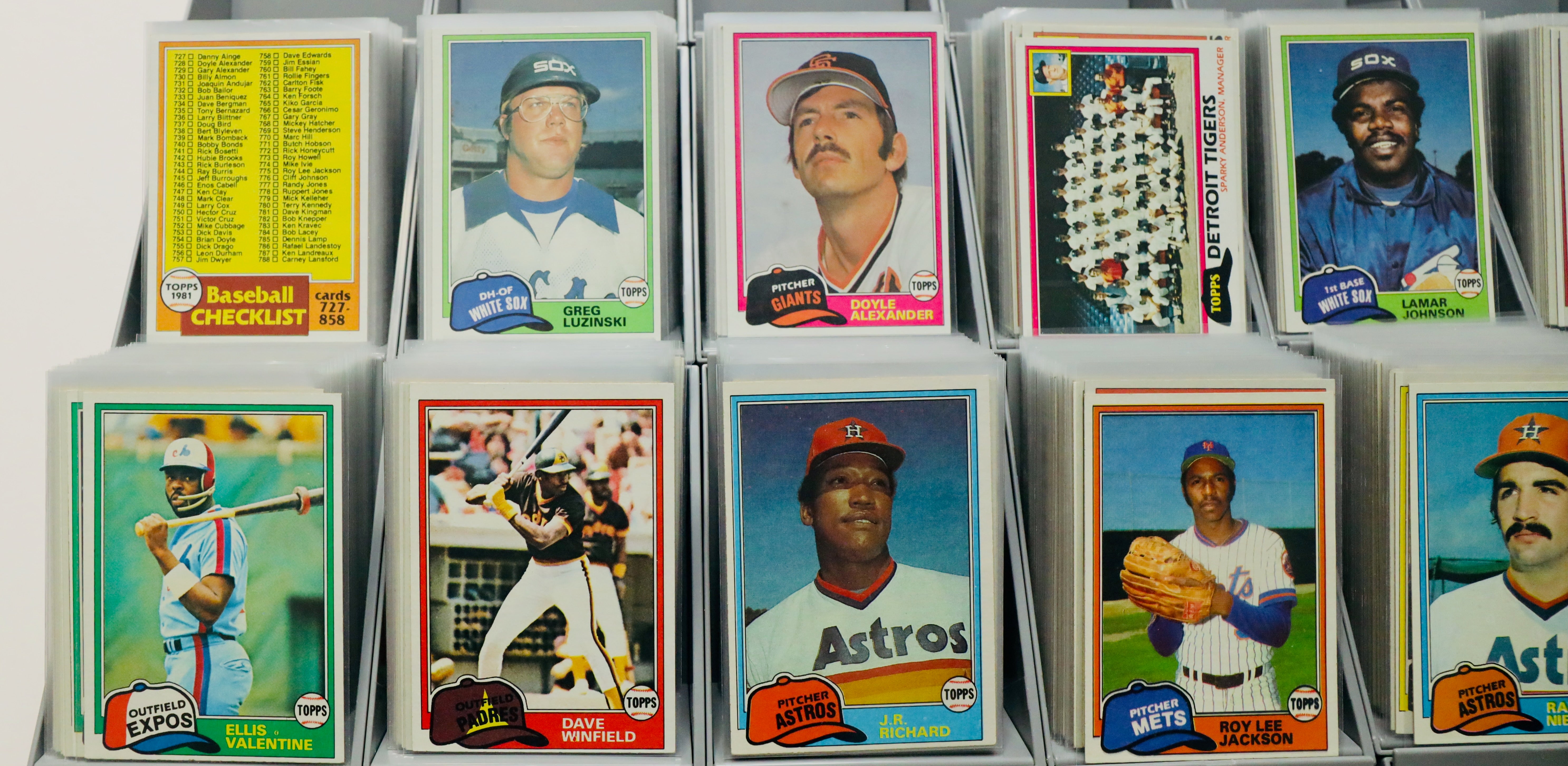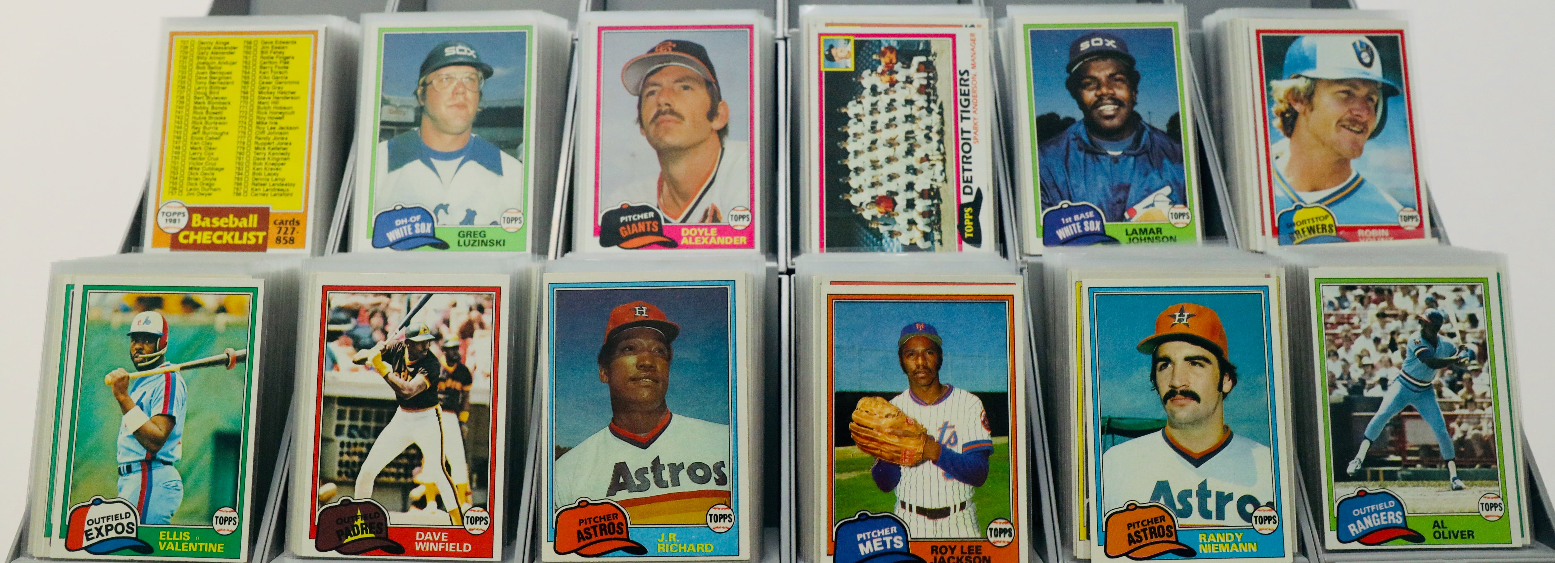Complete 1981 Topps Baseball set (#1–726) plus the 132-card Topps Traded set. Every card is sleeved. Condition varies from Poor to VG+, with key players such as Rickey Henderson, Nolan Ryan, and Fernando Valenzuela.