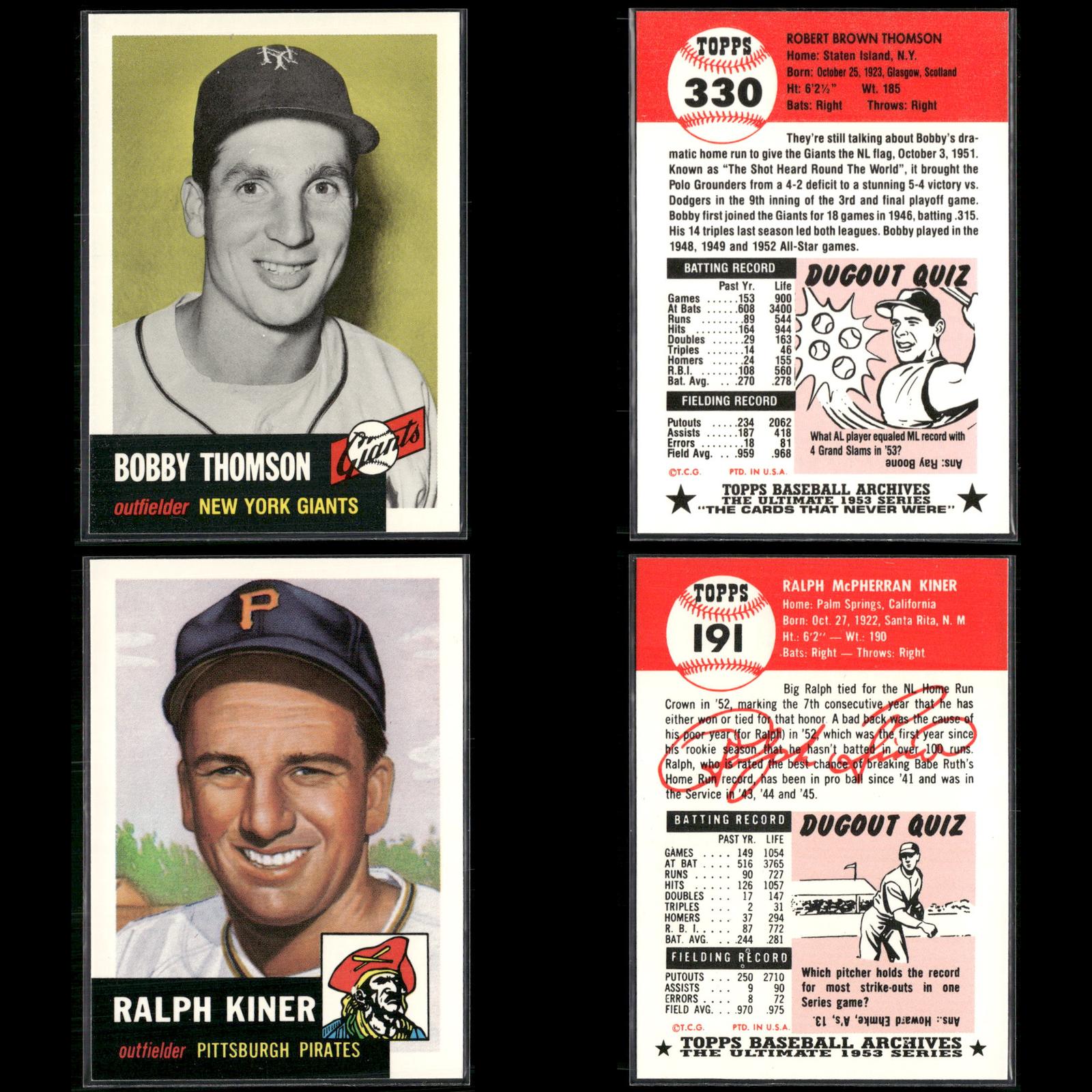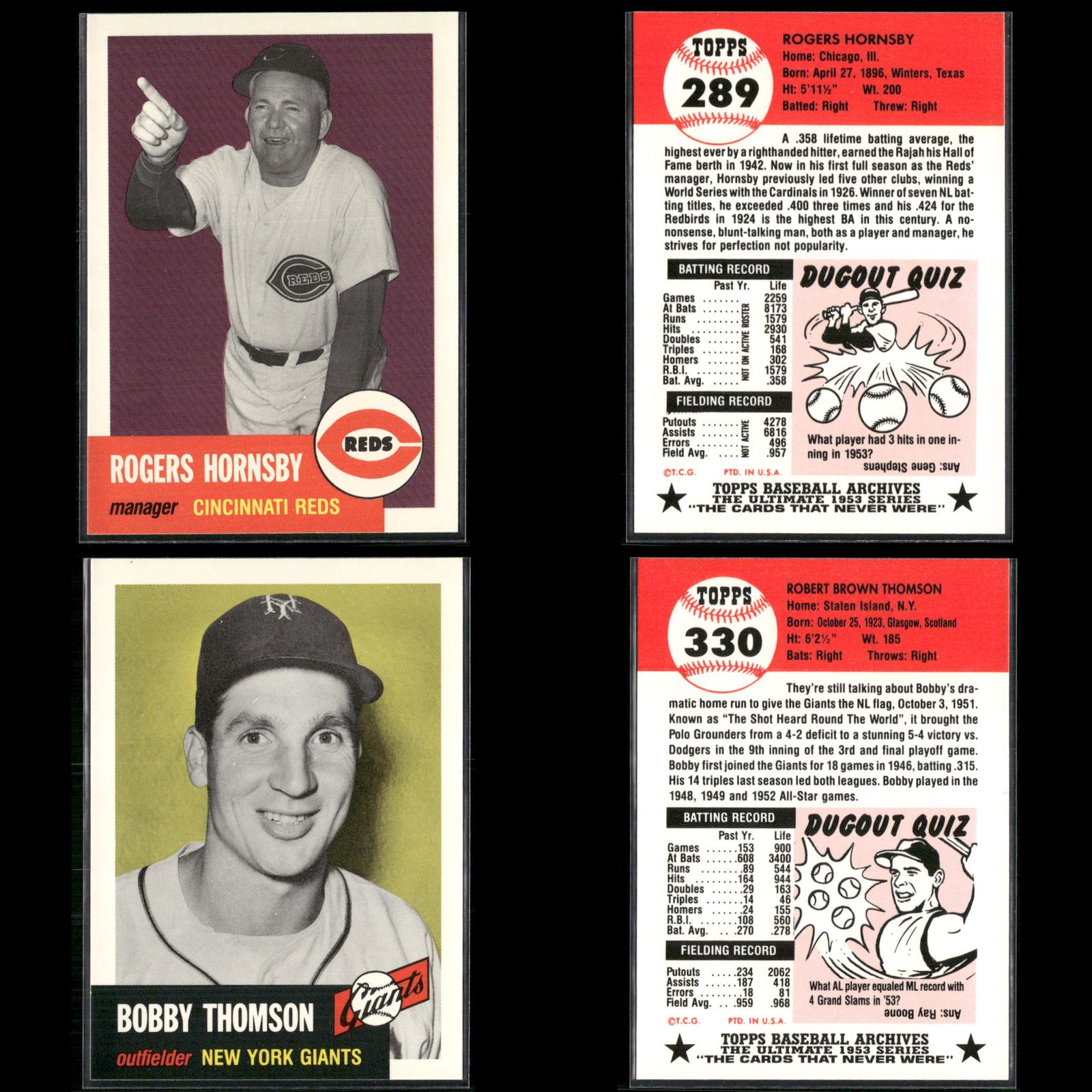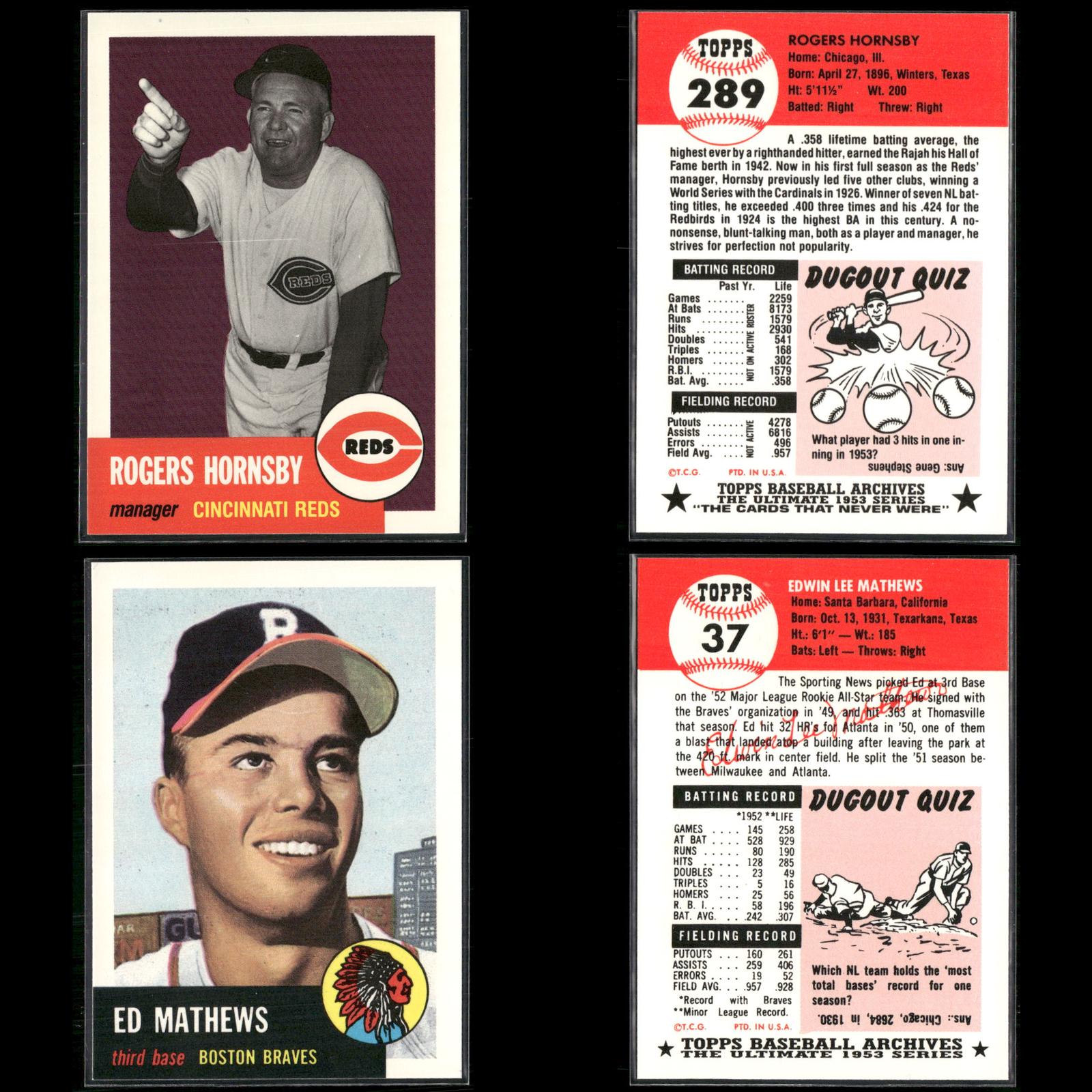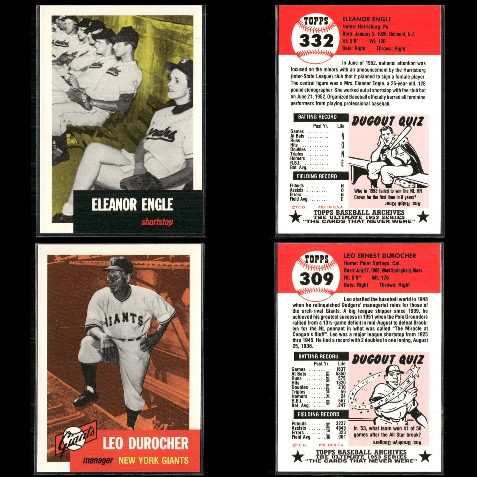 Leo Durocher #309 1991 Topps Archives 1953 New York Giants Phil Rizzuto #114 1991 Topps Archives 1953 New York Yankees Eleanor Engle #332 1991 Topps Archives 1953 Harrisburg Senators Leo Durocher #309 1991 Topps Archives 1953 New York Giants Ed Mathews #37 1991 Topps Archives 1953 Boston Braves Lou Boudreau #304 1991 Topps Archives 1953 Boston Red Sox Hal Newhouser #228 1991 Topps Archives 1953 Detroit Tigers Al Rosen #135 1991 Topps Archives 1953 Cleveland Indians Preacher Roe #254 1991 Topps Archives 1953 Brooklyn Dodgers Nellie Fox #331 1991 Topps Archives 1953 Chicago White Sox Richie Ashburn #311 1991 Topps Archives 1953 Philadelphia Phillies Gil Hodges #296 1991 Topps Archives 1953 Brooklyn Dodgers Don Newcombe #320 1991 Topps Archives 1953 Brooklyn Dodgers Casey Stengel #325 1991 Topps Archives 1953 New York Yankees Casey Stengel #325 1991 Topps Archives 1953 New York Yankees Casey Stengel #325 1991 Topps Archives 1953 New York Yankees Rogers Hornsby #289 1991 Topps Archives 1953 Cincinnati Reds Bobby Thomson #330 1991 Topps Archives 1953 New York Giants Robin Roberts #288 1991 Topps Archives 1953 Philadelphia Phillies Ralph Branca #293 1991 Topps Archives 1953 Detroit Tigers Bobby Thomson #330 1991 Topps Archives 1953 New York Giants Ralph Kiner #191 1991 Topps Archives 1953 Pittsburgh Pirates Rogers Hornsby #289 1991 Topps Archives 1953 Cincinnati Reds Ed Mathews #37 1991 Topps Archives 1953 Boston Braves Bob Feller #54 1991 Topps Archives 1953 Cleveland Indians Hal Newhouser #228 1991 Topps Archives 1953 Detroit Tigers Bob Lemon #284 1991 Topps Archives 1953 Cleveland Indians Al Rosen #135 1991 Topps Archives 1953 Cleveland Indians Don Newcombe #320 1991 Topps Archives 1953 Brooklyn Dodgers Hoyt Wilhelm #312 1991 Topps Archives 1953 New York Giants Carl Erskine #308 1991 Topps Archives 1953 Brooklyn Dodgers Leo Durocher #309 1991 Topps Archives 1953 New York Giants Richie Ashburn #311 1991 Topps Archives 1953 Philadelphia Phillies Dizzy Trout #169 1991 Topps Archives 1953 Boston Red Sox Don Newcombe #320 1991 Topps Archives 1953 Brooklyn Dodgers Dizzy Dean / Al Simmons #326 1991 Topps Archives 1953 Bobby Thomson #330 1991 Topps Archives 1953 New York Giants Duke Snider #327 1991 Topps Archives 1953 Brooklyn Dodgers Hal Newhouser #228 1991 Topps Archives 1953 Detroit Tigers Al Rosen #135 1991 Topps Archives 1953 Cleveland Indians Lou Boudreau #304 1991 Topps Archives 1953 Boston Red Sox