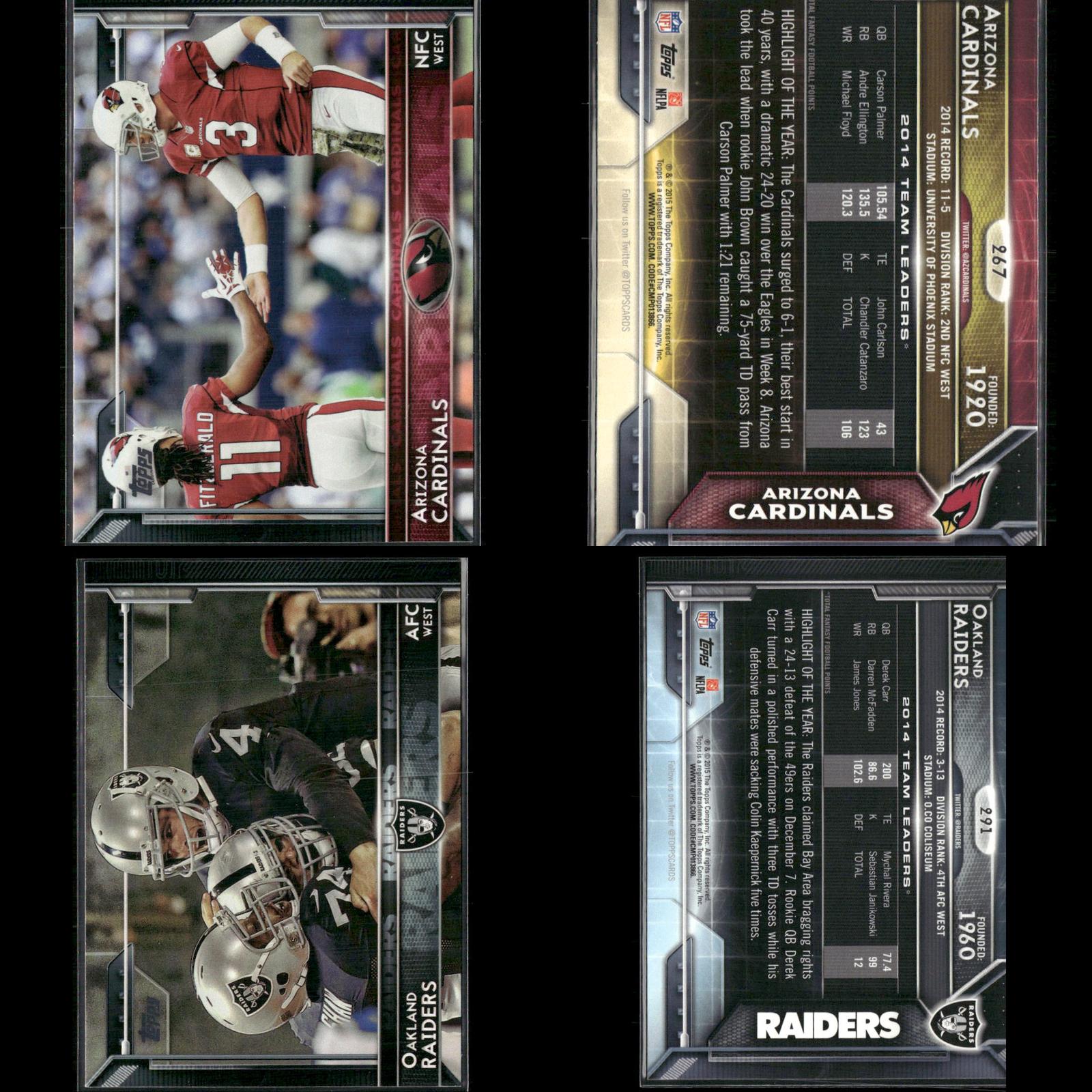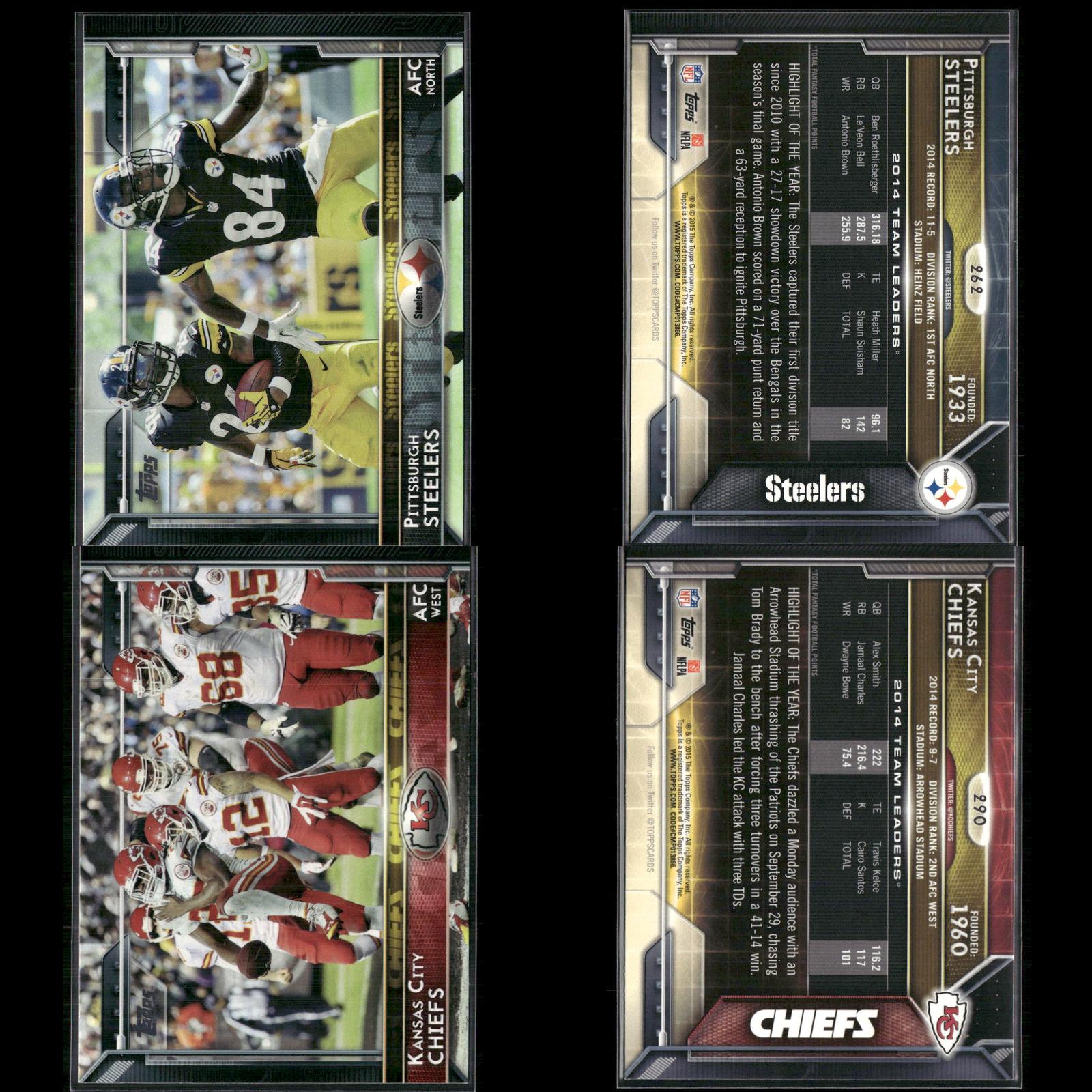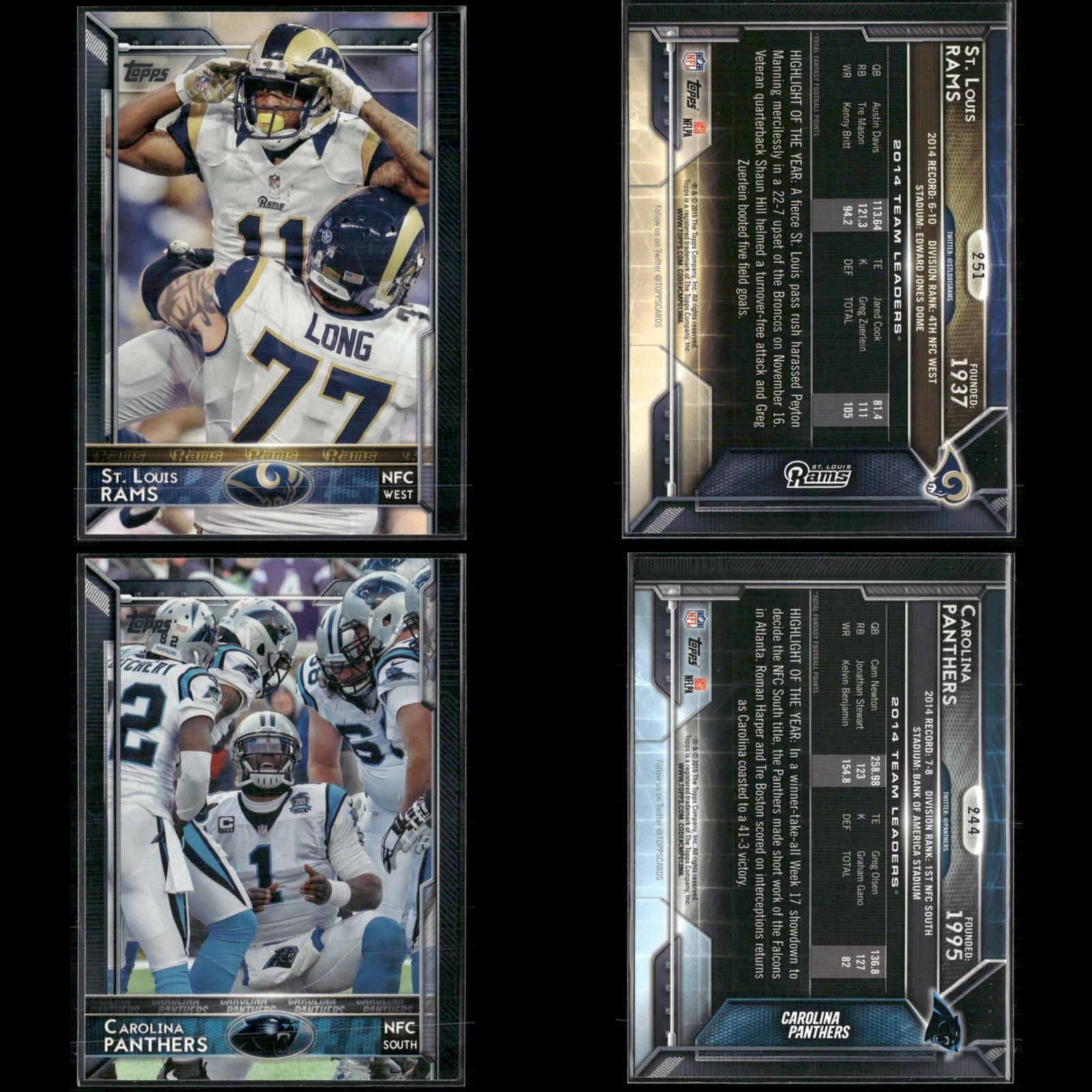 Detroit Lions #241 2015 Topps Detroit Lions Chicago Bears #250 2015 Topps Chicago Bears Atlanta Falcons #246 2015 Topps Atlanta Falcons Baltimore Ravens #275 2015 Topps Baltimore Ravens Pittsburgh Steelers #262 2015 Topps Pittsburgh Steelers Kansas City Chiefs #290 2015 Topps Kansas City Chiefs New England Patriots #264 2015 Topps New England Patriots Buffalo Bills #247 2015 Topps Buffalo Bills Houston Texans #256 2015 Topps Houston Texans New York Jets #277 2015 Topps New York Jets Denver Broncos #270 2015 Topps Denver Broncos Green Bay Packers #266 2015 Topps Green Bay Packers St. Louis Rams #251 2015 Topps St. Louis Rams Carolina Panthers #244 2015 Topps Carolina Panthers Super Bowl XLIX Champions #302 2015 Topps New England Patriots San Francisco 49ers #293 2015 Topps San Francisco 49ers New York Giants #261 2015 Topps New York Giants Seattle Seahawks #276 2015 Topps Seattle Seahawks Arizona Cardinals #267 2015 Topps Arizona Cardinals Oakland Raiders #291 2015 Topps Oakland Raiders Tennessee Titans #299 2015 Topps Tennessee Titans San Diego Chargers #286 2015 Topps San Diego Chargers Dallas Cowboys #279 2015 Topps Dallas Cowboys Minnesota Vikings #292 2015 Topps Minnesota Vikings Jacksonville Jaguars #249 2015 Topps Jacksonville Jaguars Miami Dolphins #257 2015 Topps Miami Dolphins Cincinnati Bengals #278 2015 Topps Cincinnati Bengals Indianapolis Colts #254 2015 Topps Indianapolis Colts Cleveland Browns #248 2015 Topps Cleveland Browns Tampa Bay Buccaneers #283 2015 Topps Tampa Bay Buccaneers New Orleans Saints #242 2015 Topps New Orleans Saints Washington Redskins #274 2015 Topps Washington Redskins Philadelphia Eagles #255 2015 Topps Philadelphia Eagles