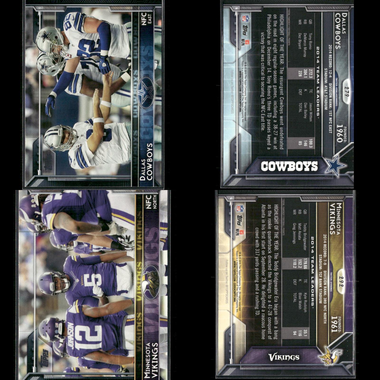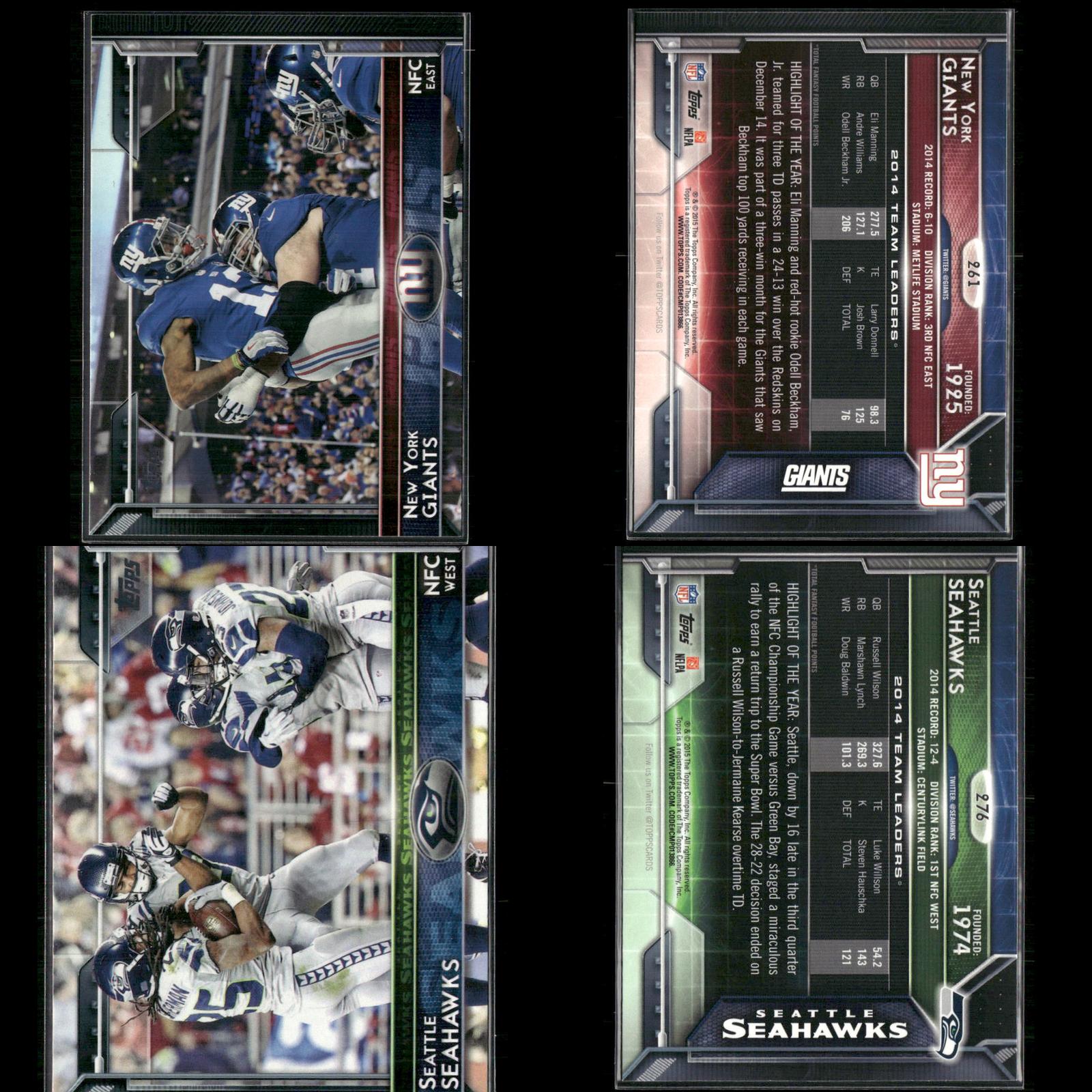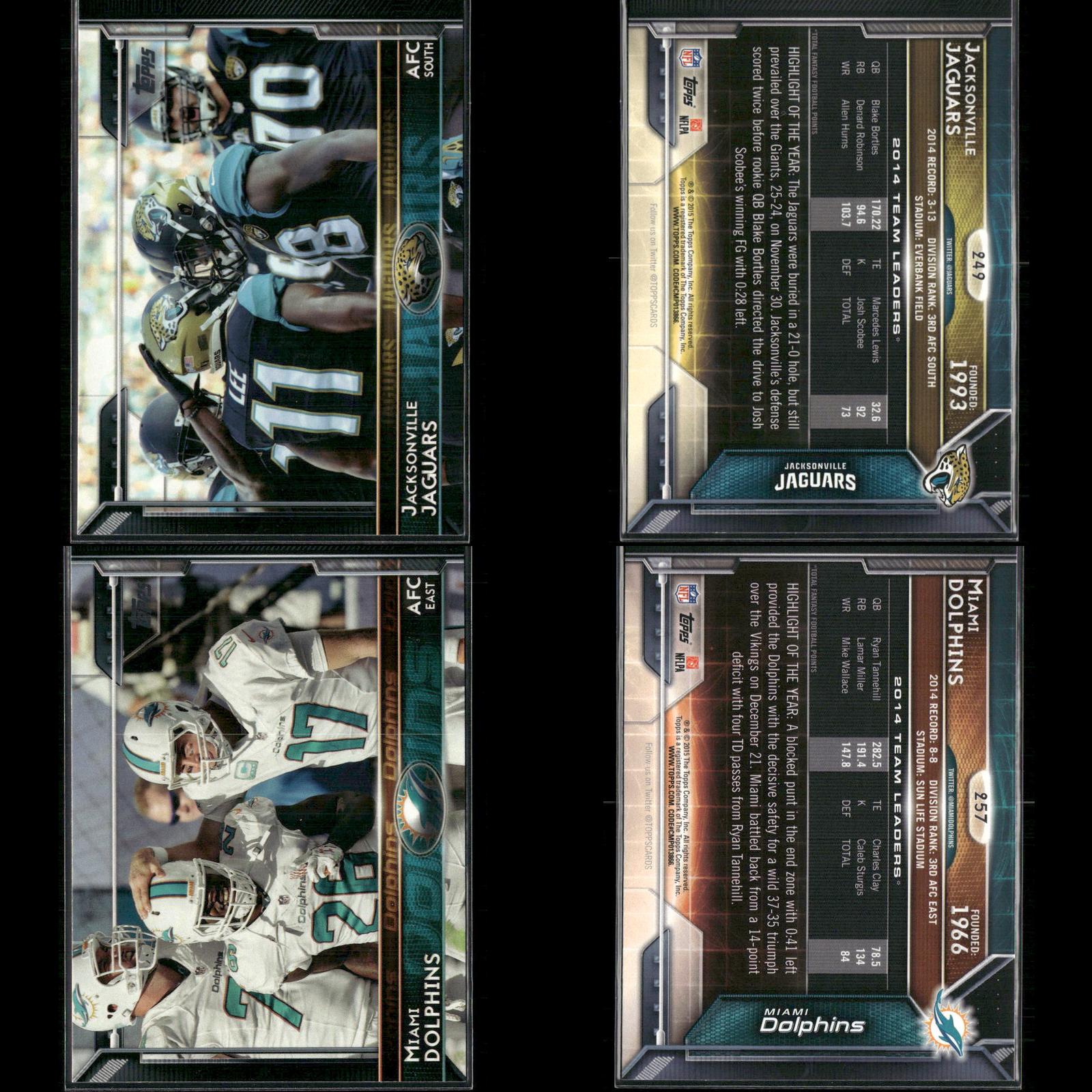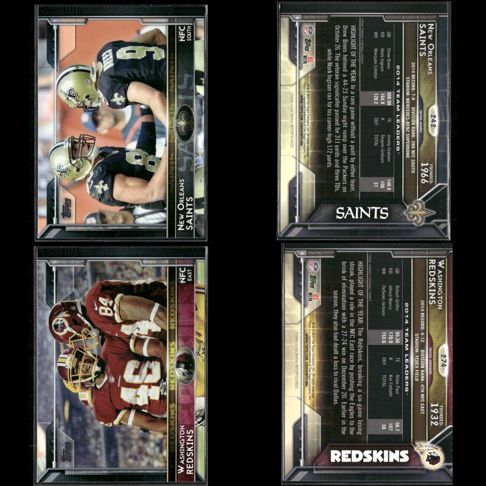 Detroit Lions #241 2015 Topps Detroit Lions Chicago Bears #250 2015 Topps Chicago Bears Atlanta Falcons #246 2015 Topps Atlanta Falcons Baltimore Ravens #275 2015 Topps Baltimore Ravens Pittsburgh Steelers #262 2015 Topps Pittsburgh Steelers Kansas City Chiefs #290 2015 Topps Kansas City Chiefs New England Patriots #264 2015 Topps New England Patriots Buffalo Bills #247 2015 Topps Buffalo Bills Houston Texans #256 2015 Topps Houston Texans New York Jets #277 2015 Topps New York Jets Denver Broncos #270 2015 Topps Denver Broncos Green Bay Packers #266 2015 Topps Green Bay Packers St. Louis Rams #251 2015 Topps St. Louis Rams Carolina Panthers #244 2015 Topps Carolina Panthers Super Bowl XLIX Champions #302 2015 Topps New England Patriots San Francisco 49ers #293 2015 Topps San Francisco 49ers New York Giants #261 2015 Topps New York Giants Seattle Seahawks #276 2015 Topps Seattle Seahawks Arizona Cardinals #267 2015 Topps Arizona Cardinals Oakland Raiders #291 2015 Topps Oakland Raiders Tennessee Titans #299 2015 Topps Tennessee Titans San Diego Chargers #286 2015 Topps San Diego Chargers Dallas Cowboys #279 2015 Topps Dallas Cowboys Minnesota Vikings #292 2015 Topps Minnesota Vikings Jacksonville Jaguars #249 2015 Topps Jacksonville Jaguars Miami Dolphins #257 2015 Topps Miami Dolphins Cincinnati Bengals #278 2015 Topps Cincinnati Bengals Indianapolis Colts #254 2015 Topps Indianapolis Colts Cleveland Browns #248 2015 Topps Cleveland Browns Tampa Bay Buccaneers #283 2015 Topps Tampa Bay Buccaneers New Orleans Saints #242 2015 Topps New Orleans Saints Washington Redskins #274 2015 Topps Washington Redskins Philadelphia Eagles #255 2015 Topps Philadelphia Eagles
