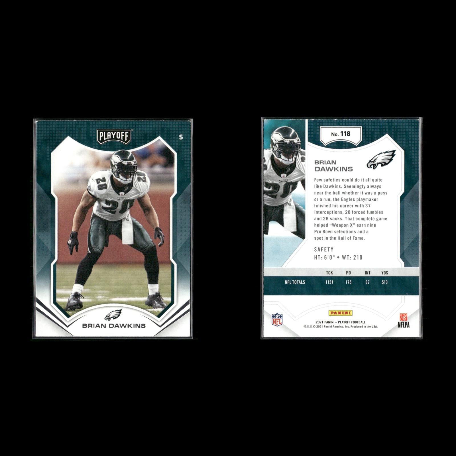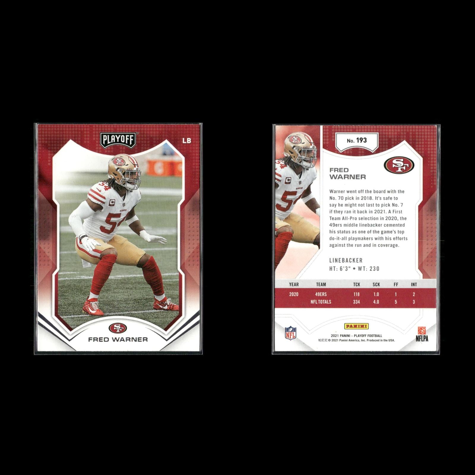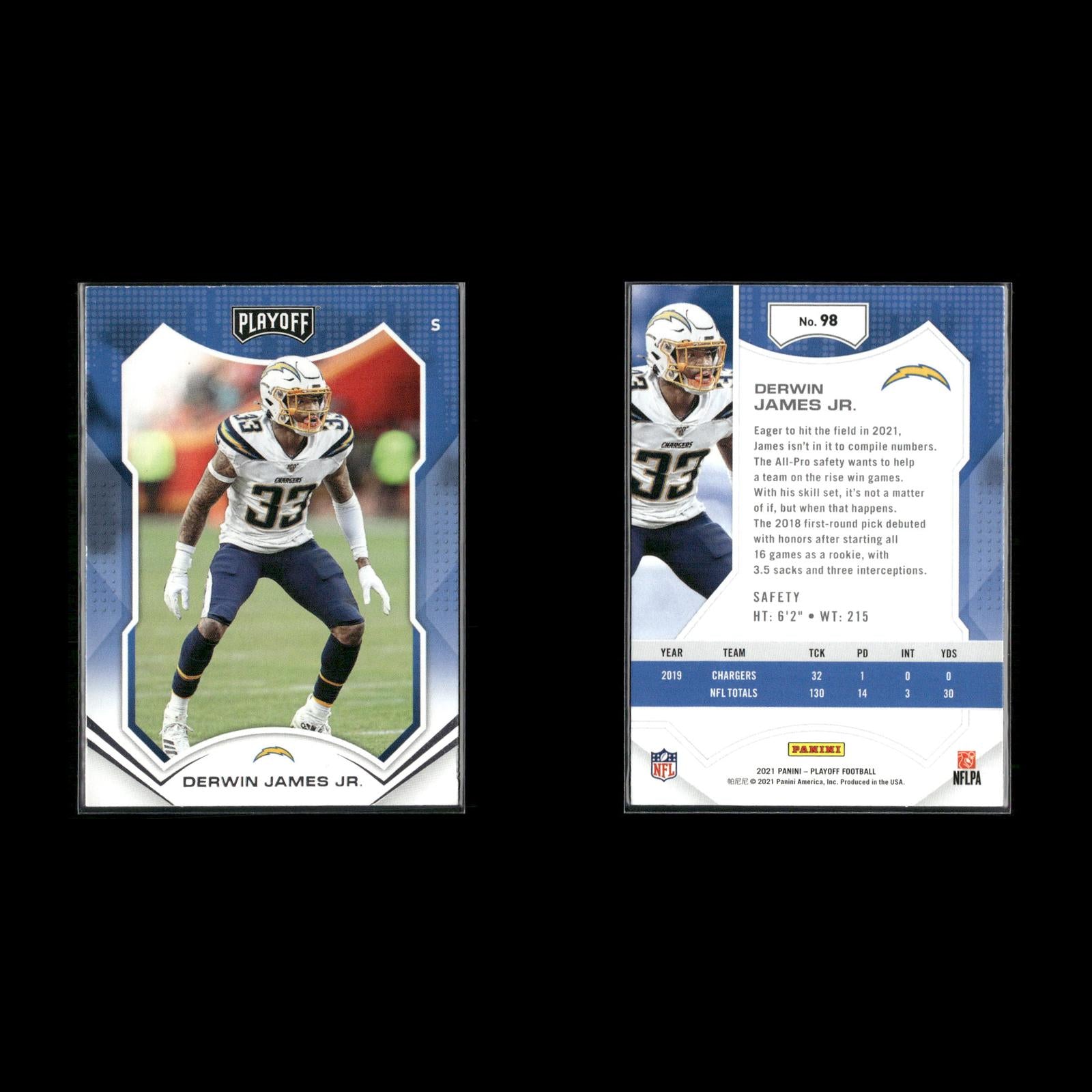 Chris Herndon IV #21 2021 Panini Playoff Minnesota Vikings Brian Dawkins #118 2021 Panini Playoff Philadelphia Eagles Tee Higgins #33 2021 Panini Playoff Cincinnati Bengals Mac Jones Rookie #209 2021 Panini Playoff New England Patriots Henry Ruggs III #89 2021 Panini Playoff Las Vegas Raiders Antonio Gibson #122 2021 Panini Playoff Washington Football Team Tremaine Edmunds #5 2021 Panini Playoff Buffalo Bills Derwin James Jr. #98 2021 Panini Playoff Los Angeles Chargers Minkah Fitzpatrick #48 2021 Panini Playoff Pittsburgh Steelers Brandon Aiyuk #189 2021 Panini Playoff San Francisco 49ers Tyrell Williams #132 2021 Panini Playoff Detroit Lions DJ Chark Jr. #63 2021 Panini Playoff Jacksonville Jaguars Greg Newsome II Rookie #251 2021 Panini Playoff Cleveland Browns Odafe Oweh Rookie #255 2021 Panini Playoff Baltimore Ravens Darren Waller #90 2021 Panini Playoff Las Vegas Raiders Fred Warner #193 2021 Panini Playoff San Francisco 49ers
