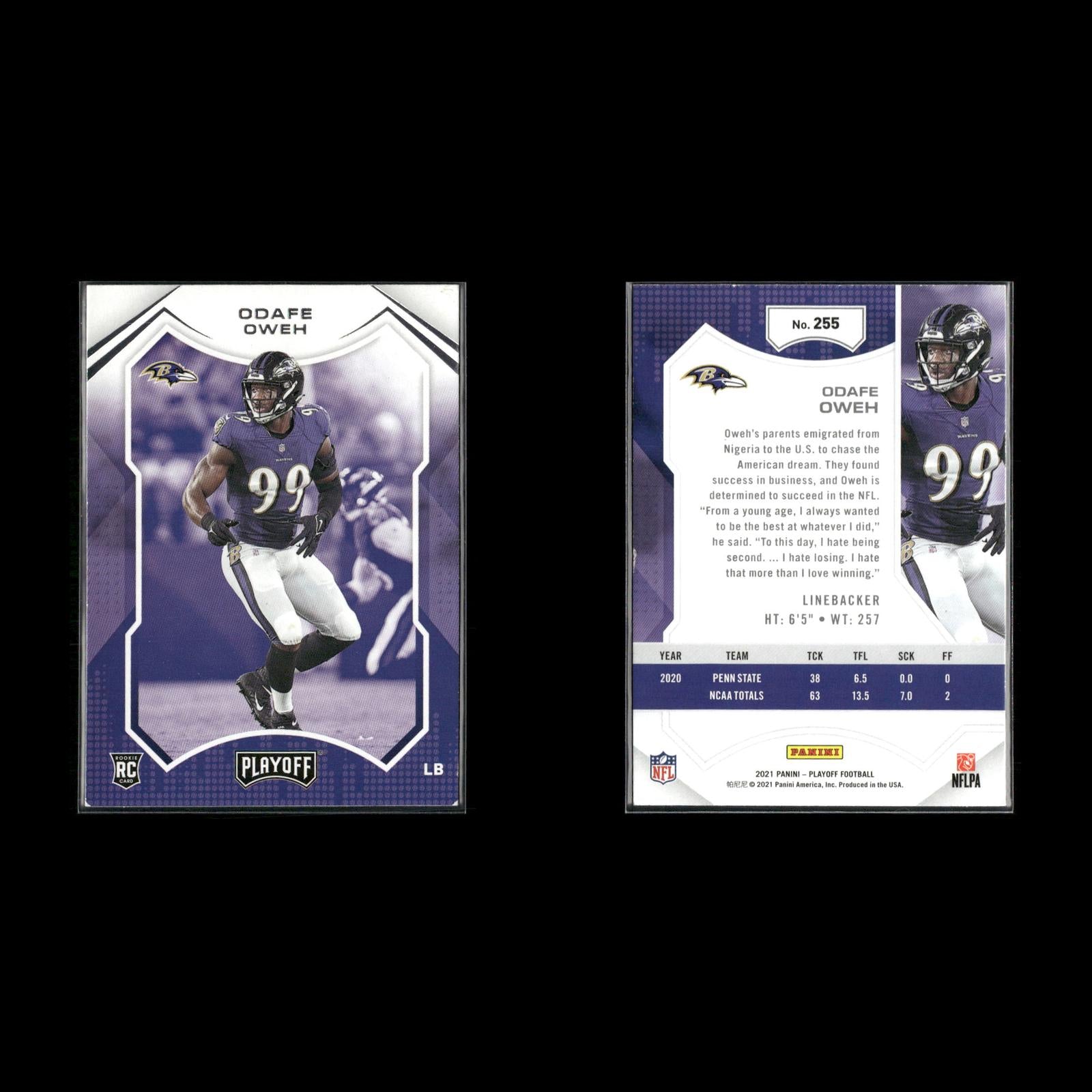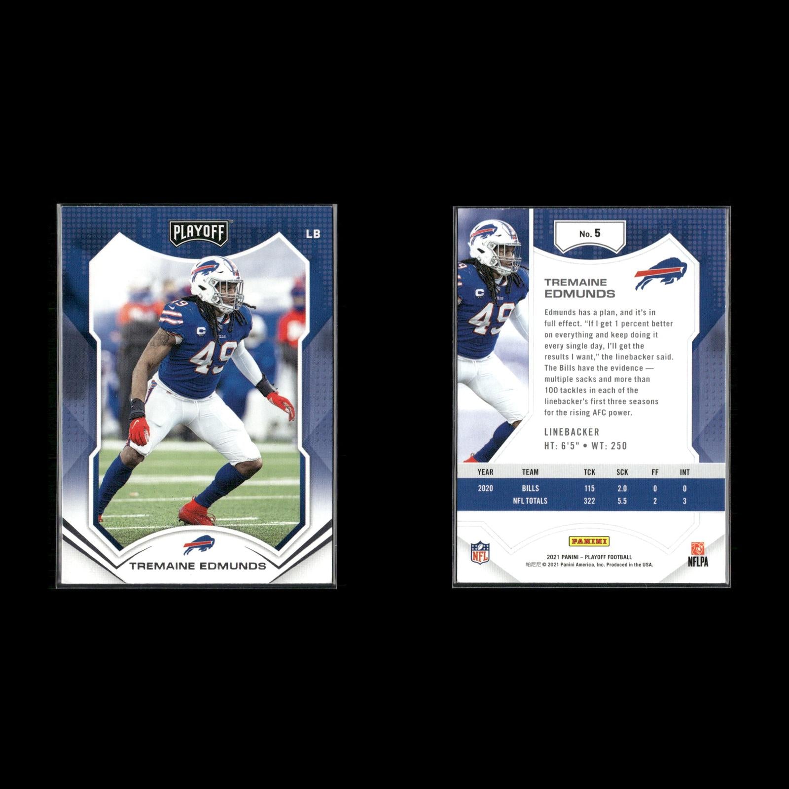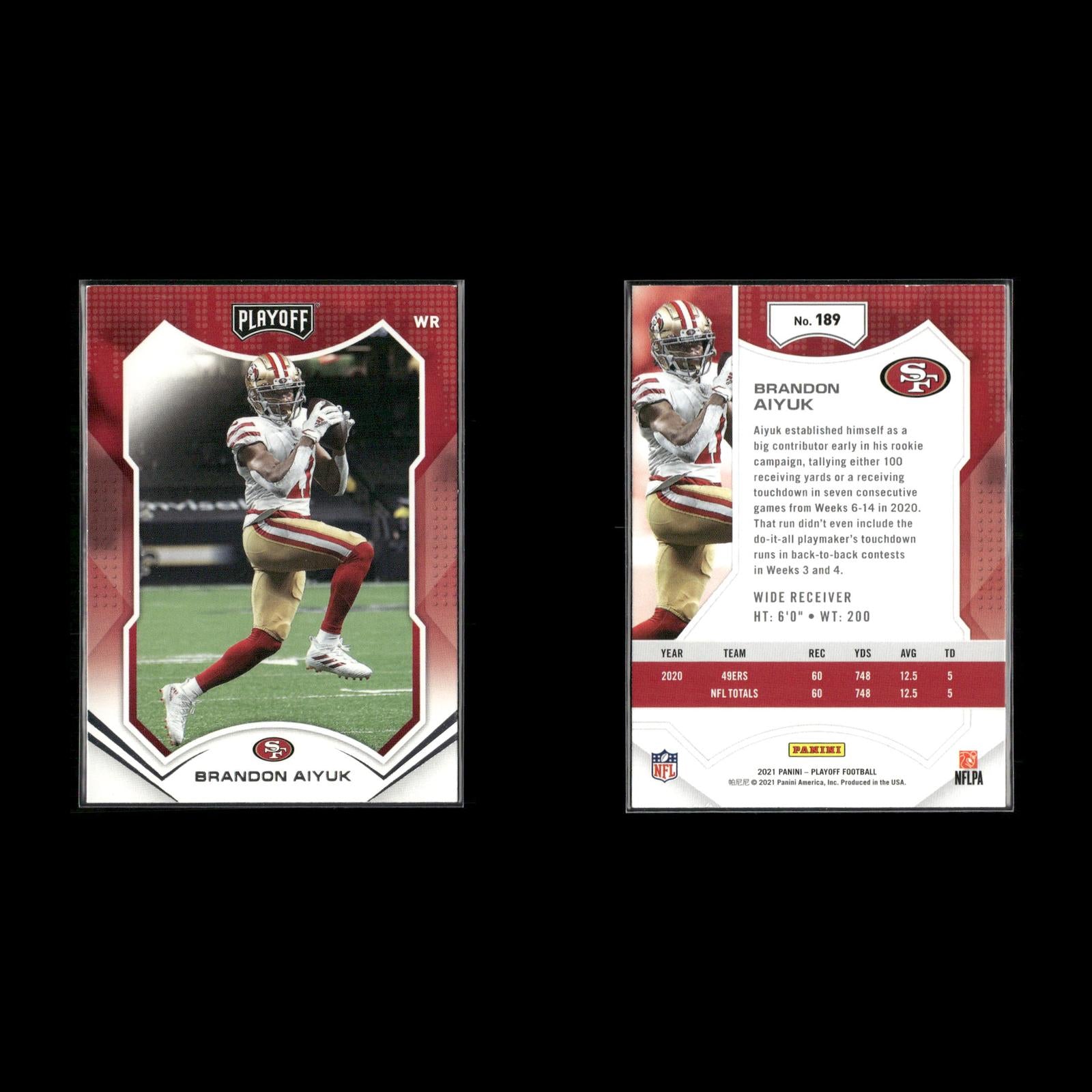 Chris Herndon IV #21 2021 Panini Playoff Minnesota Vikings Brian Dawkins #118 2021 Panini Playoff Philadelphia Eagles Tee Higgins #33 2021 Panini Playoff Cincinnati Bengals Mac Jones Rookie #209 2021 Panini Playoff New England Patriots Henry Ruggs III #89 2021 Panini Playoff Las Vegas Raiders Antonio Gibson #122 2021 Panini Playoff Washington Football Team Tremaine Edmunds #5 2021 Panini Playoff Buffalo Bills Derwin James Jr. #98 2021 Panini Playoff Los Angeles Chargers Minkah Fitzpatrick #48 2021 Panini Playoff Pittsburgh Steelers Brandon Aiyuk #189 2021 Panini Playoff San Francisco 49ers Tyrell Williams #132 2021 Panini Playoff Detroit Lions DJ Chark Jr. #63 2021 Panini Playoff Jacksonville Jaguars Greg Newsome II Rookie #251 2021 Panini Playoff Cleveland Browns Odafe Oweh Rookie #255 2021 Panini Playoff Baltimore Ravens Darren Waller #90 2021 Panini Playoff Las Vegas Raiders Fred Warner #193 2021 Panini Playoff San Francisco 49ers