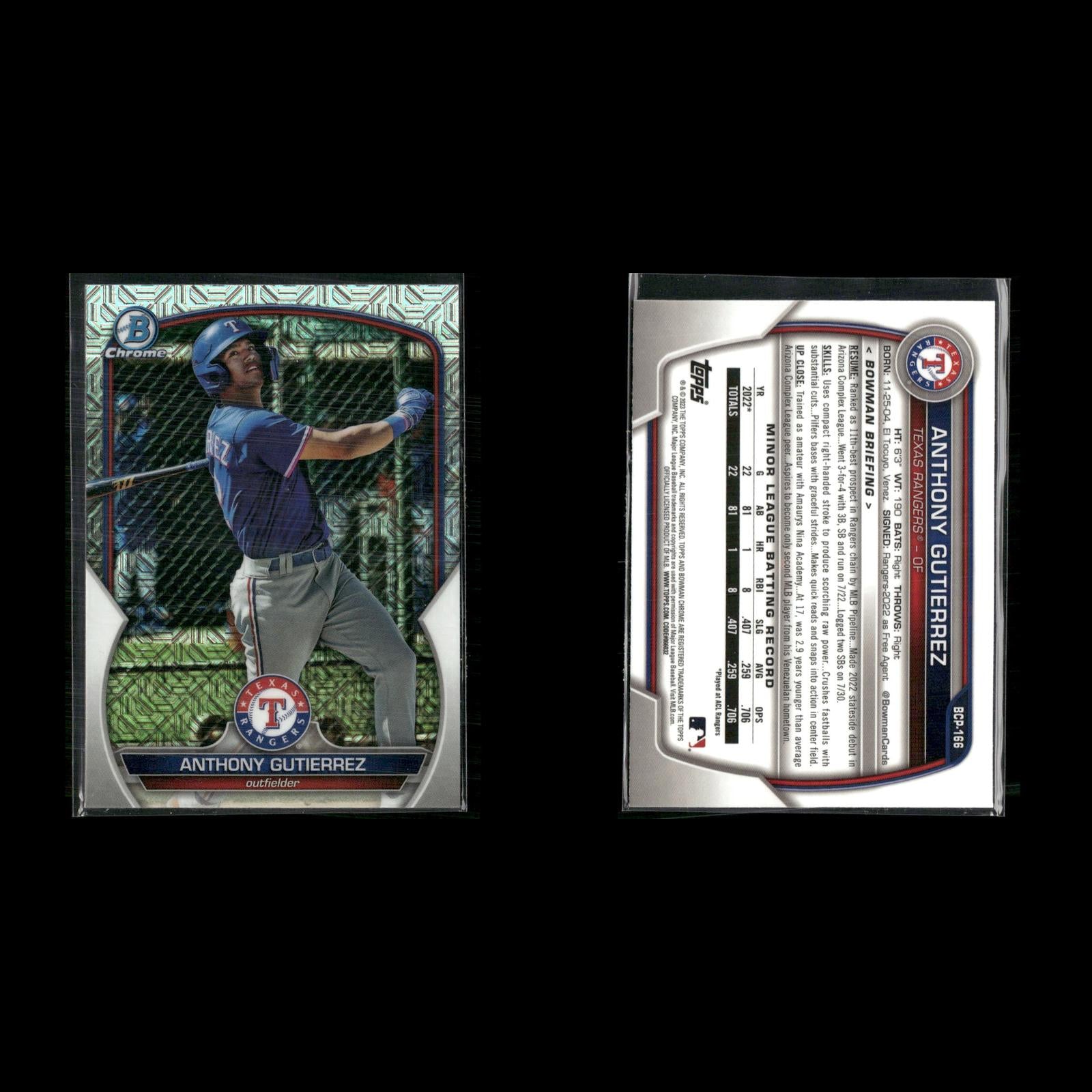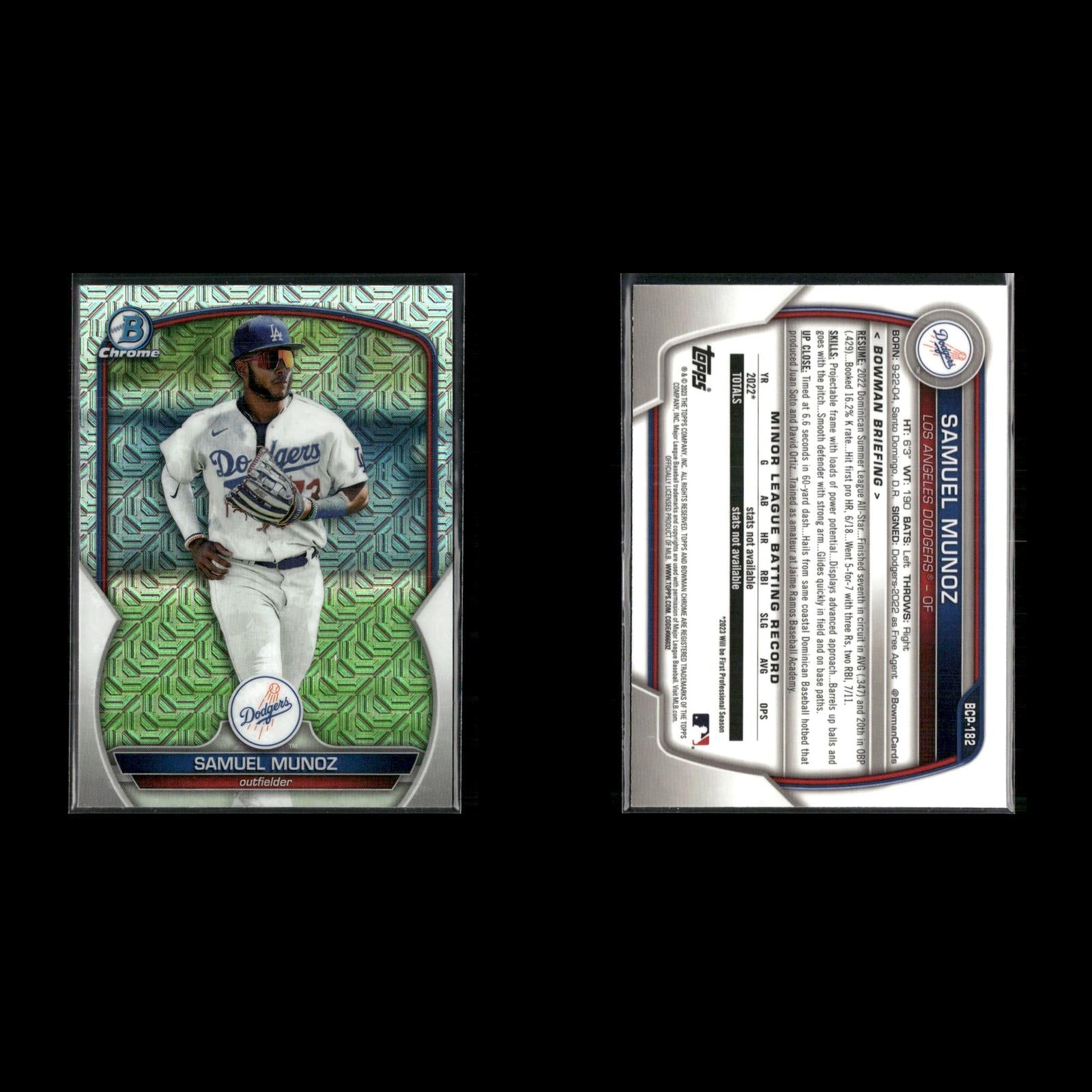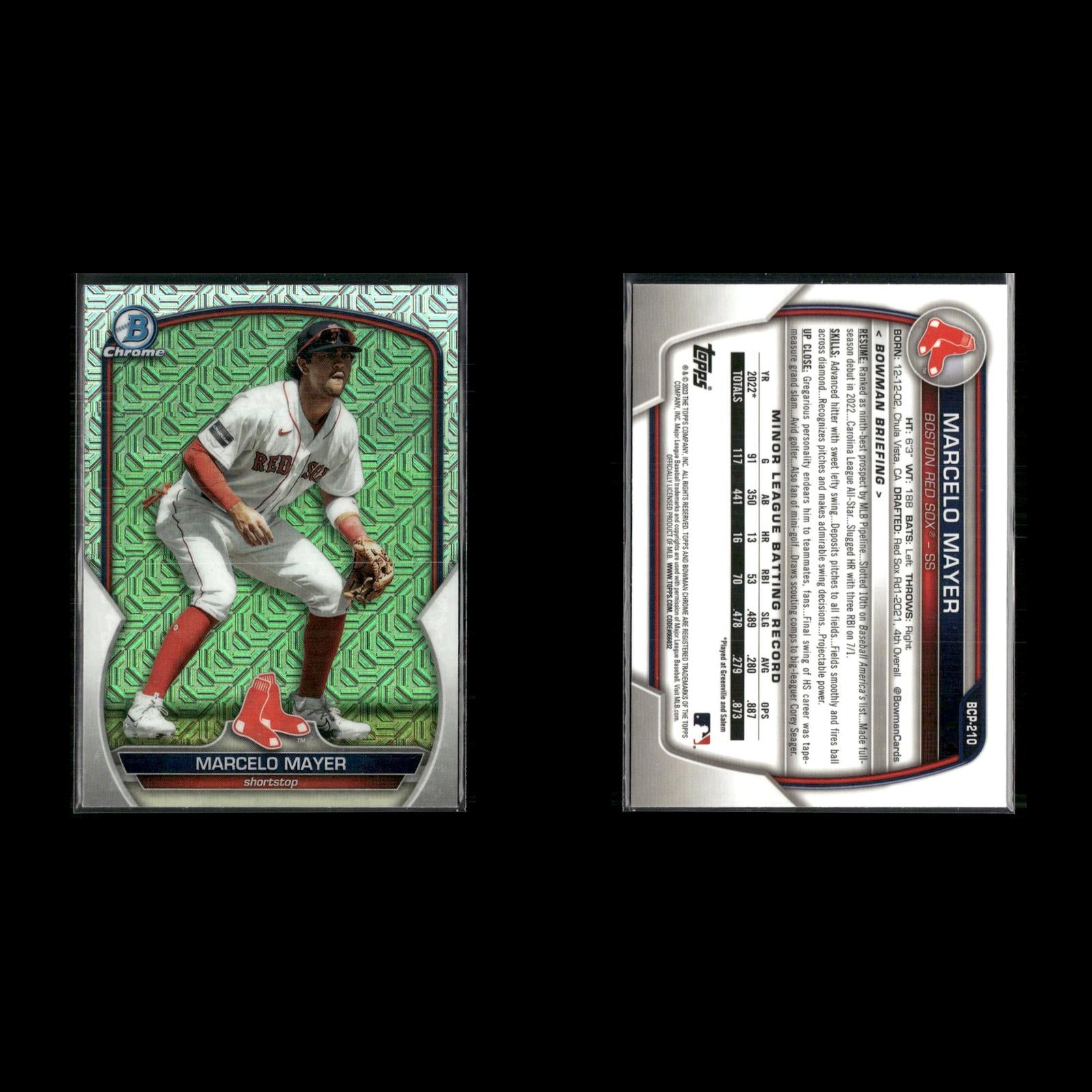 Matt Shaw #BCP-30 2024 Bowman Chrome Prospects Mojo Refractor Chicago Cubs Druw Jones #BCP-249 2023 Bowman Chrome Prospects Mojo Refractor Arizona Diamondbacks Samuel Munoz #BCP-182 2023 Bowman Chrome Prospects Mojo Refractor Los Angeles Dodgers Marcelo Mayer #BCP-210 2023 Bowman Chrome Prospects Mojo Refractor Boston Red Sox Gavin Cross #BCP-160 2023 Bowman Chrome Prospects Mojo Refractor Kansas City Royals Jordan Lawlar #BCP-247 2023 Bowman Chrome Prospects Mojo Refractor Arizona Diamondbacks Anthony Gutierrez #BCP-166 2023 Bowman Chrome Prospects Mojo Refractor Texas Rangers