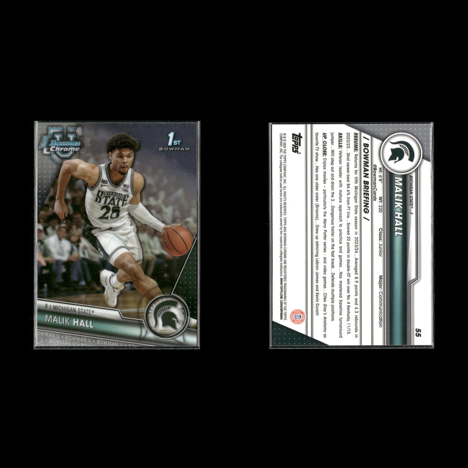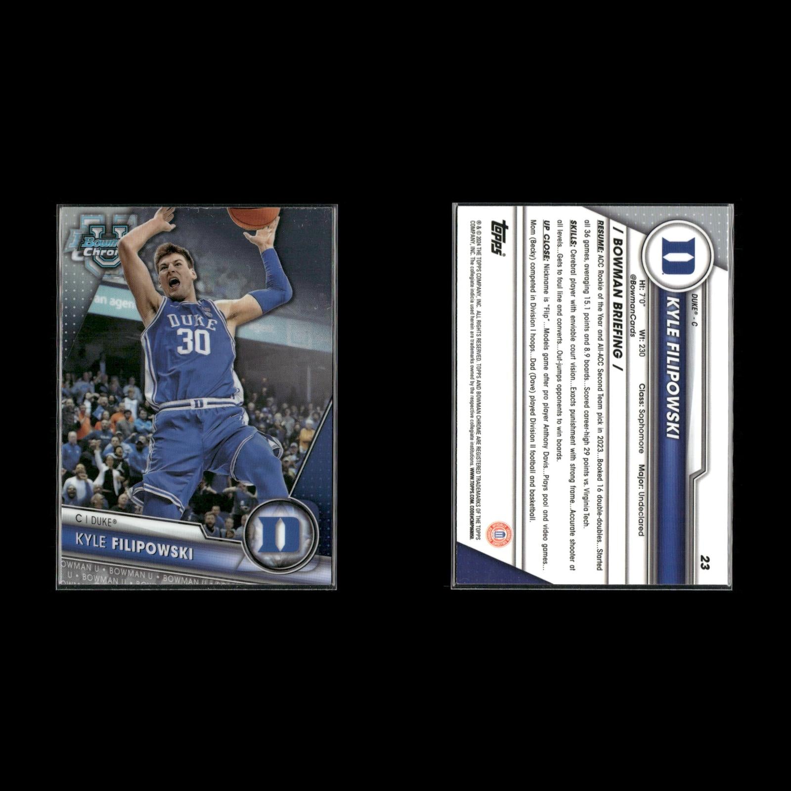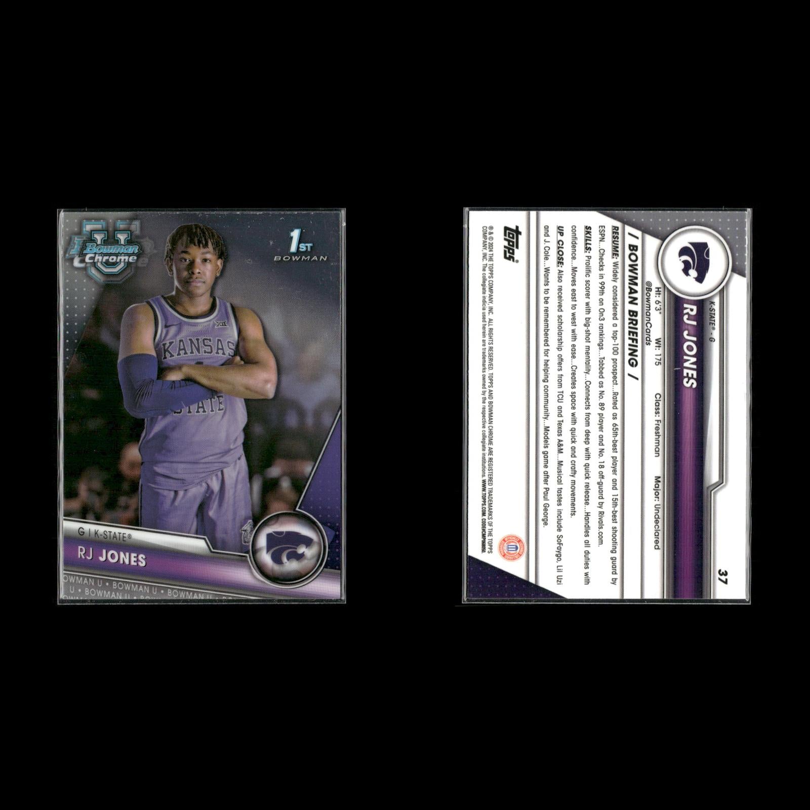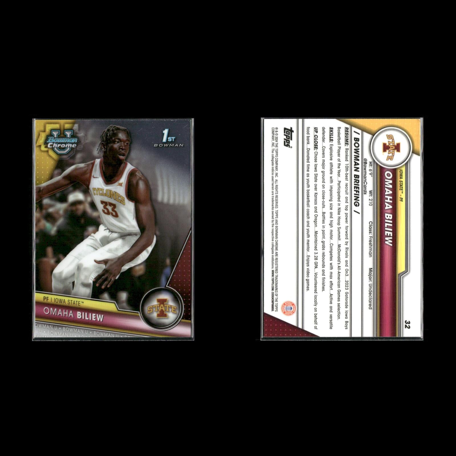 Colby Jones #69 2021-22 Bowman University Pink Xavier Musketeers David McCormack #BCPA-DM 2021-22 Bowman University Chrome Prospect Autographs Lava #/199 Kansas Jayhawks Miro Little #12 2023-24 Bowman University Chrome Baylor Bears Garwey Dual #69 2023-24 Bowman University Chrome Providence Friars Dylan Disu #80 2023-24 Bowman University Chrome Texas Longhorns Isaac McKneely #27 2023-24 Bowman University Chrome Virginia Cavaliers Justin Edwards #46 2023-24 Bowman University Chrome Kentucky Wildcats Rejean Ellis #29 2023-24 Bowman University Chrome USC Trojans Max Abmas #81 2023-24 Bowman University Chrome Texas Longhorns Malik Hall #55 2023-24 Bowman University Chrome Michigan State Spartans Aaron Bradshaw #42 2023-24 Bowman University Chrome Kentucky Wildcats Mark Sears #72 2023-24 Bowman University Chrome Refractor Alabama Crimson Tide Riley Kugel #38 2023-24 Bowman University Chrome Florida Gators RJ Jones #37 2023-24 Bowman University Chrome Kansas State Wildcats Solomon Ball #89 2023-24 Bowman University Chrome Connecticut Huskies Reed Sheppard #45 2023-24 Bowman University Chrome Kentucky Wildcats Kwame Evans #66 2023-24 Bowman University Chrome Oregon Ducks Omaha Biliew #32 2023-24 Bowman University Chrome Iowa State Cyclones Kyle Filipowski #23 2023-24 Bowman University Chrome Duke Blue Devils Zaccharie Risacher #9 2023-24 Bowman University Chrome Xavier Booker #57 2023-24 Bowman University Chrome Michigan State Spartans