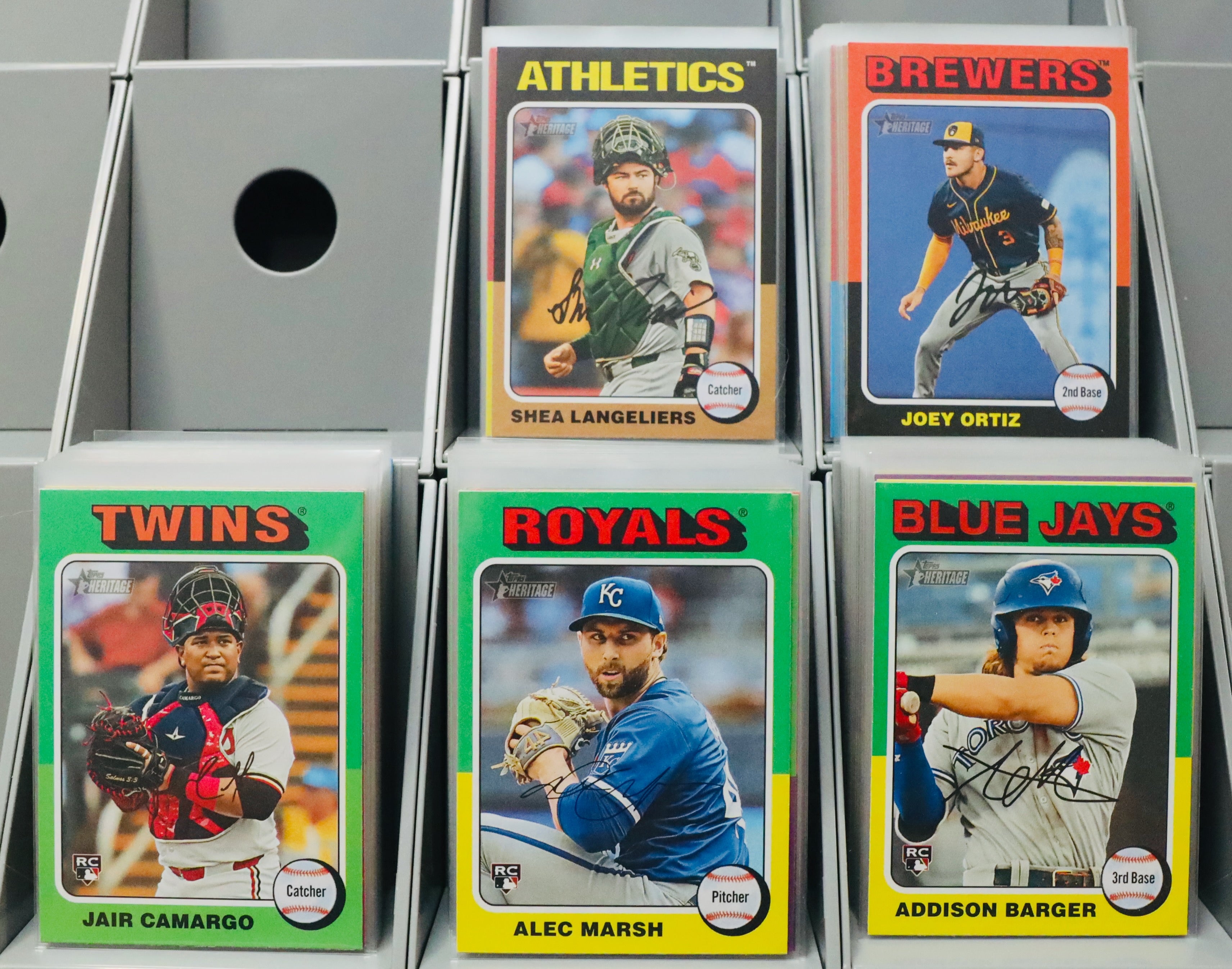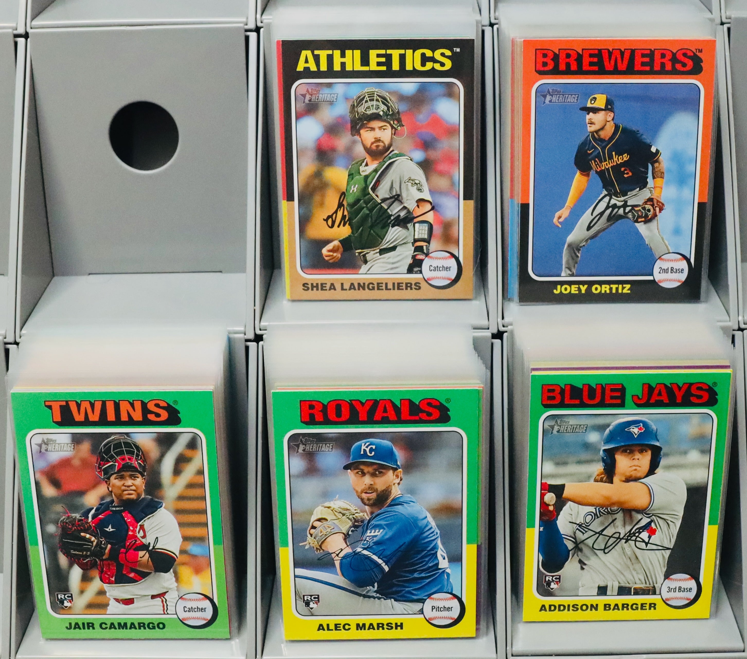 Fresh 2024 Topps Heritage High Number lot featuring cards #501–725. All cards are sleeved and well preserved in VG+ condition. The latest in the Heritage series, highlighting recent rookies and stars in a vintage-style format.