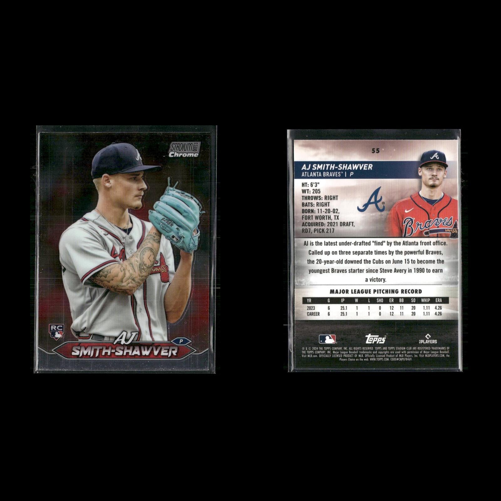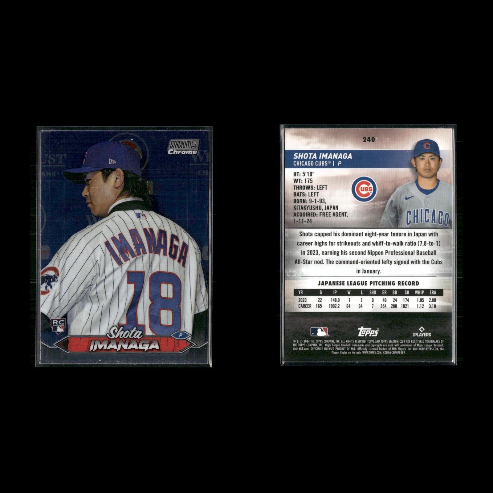 Ted Williams #7 2024 Stadium Club Chrome Boston Red Sox George Kirby #254 2024 Stadium Club Chrome Seattle Mariners Shota Imanaga #240 2024 Stadium Club Chrome Chicago Cubs Josh Gibson #107 2024 Stadium Club Chrome Homestead Grays AJ Smith-Shawver #55 2024 Stadium Club Chrome Atlanta Braves Jared Jones #72 2024 Stadium Club Chrome Pittsburgh Pirates Dansby Swanson #11 2024 Stadium Club Chrome Chicago Cubs Satchel Paige #278 2024 Stadium Club Chrome St. Louis Browns Aaron Nola #295 2024 Stadium Club Chrome Philadelphia Phillies Sandy Koufax #255 2024 Stadium Club Chrome Los Angeles Dodgers Austin Wells #216 2024 Stadium Club Chrome New York Yankees