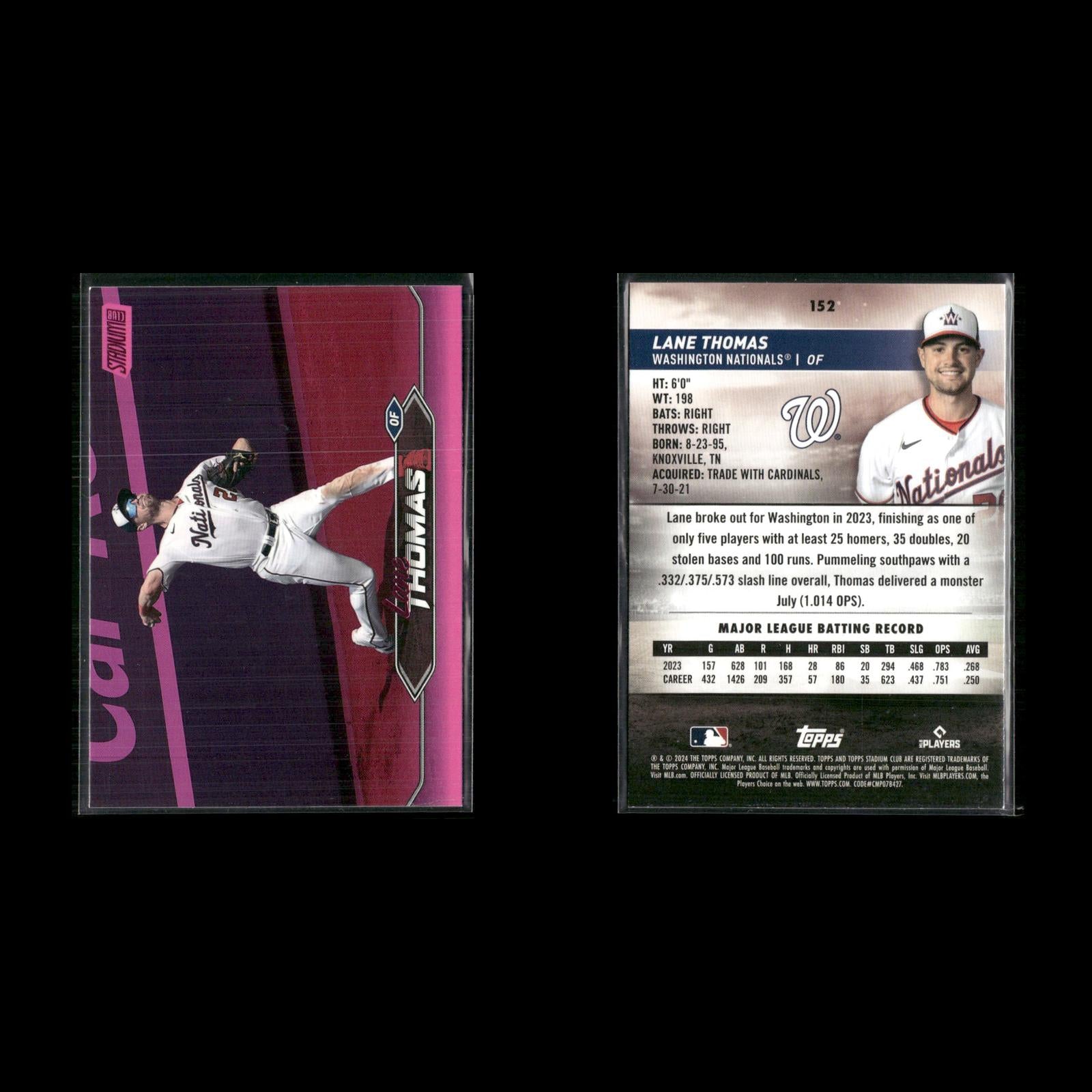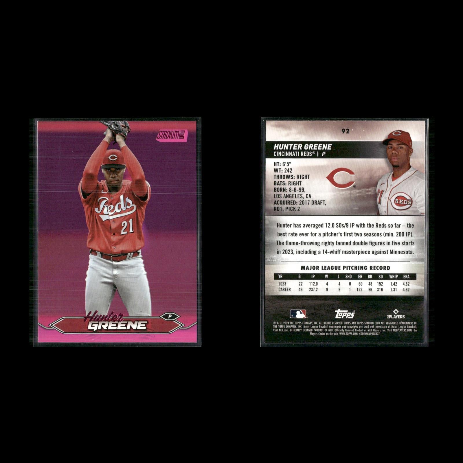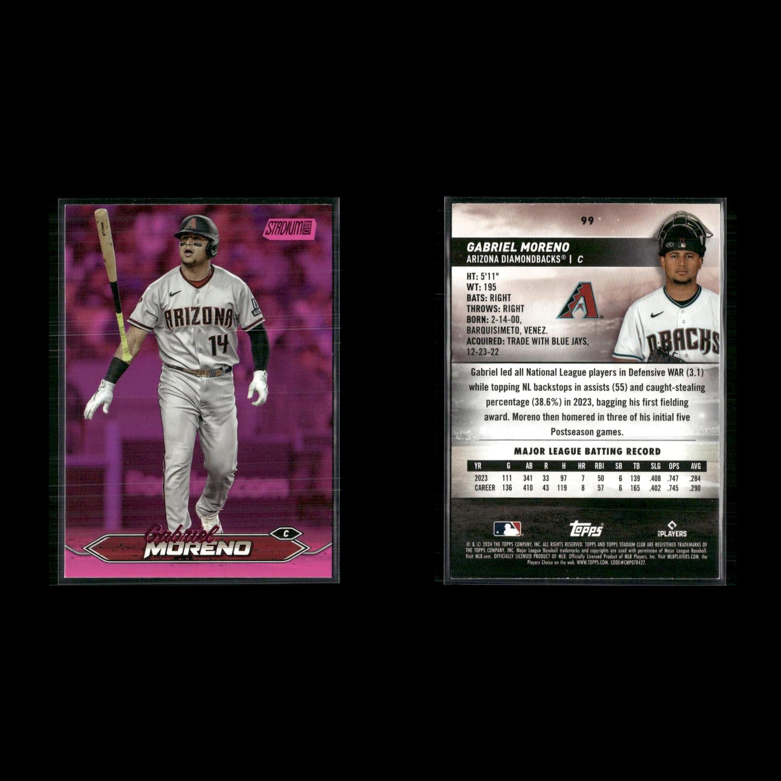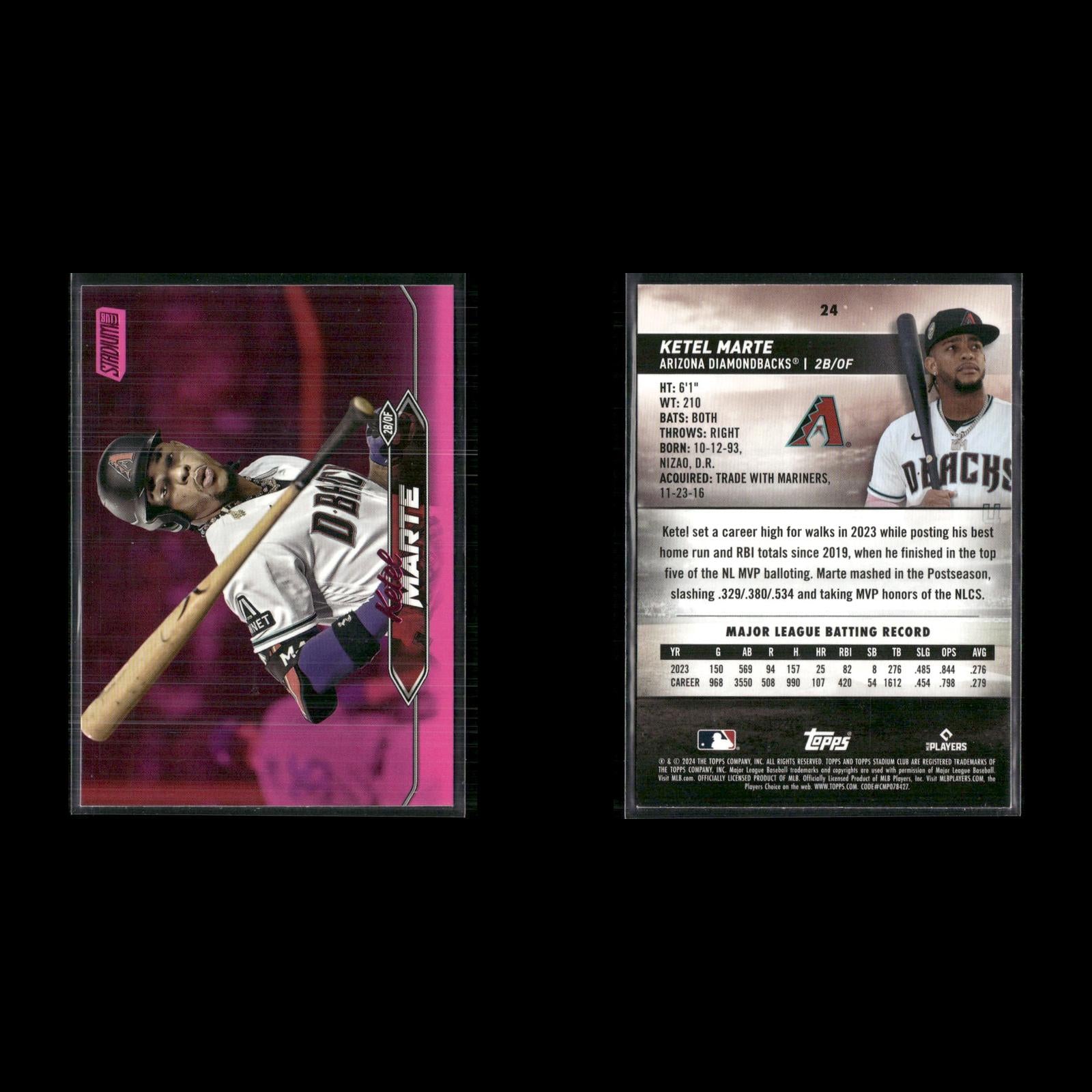 Endy Rodríguez #249 2024 Stadium Club Pink Foil Pittsburgh Pirates Henry Davis #207 2024 Stadium Club Pink Foil Pittsburgh Pirates Cole Ragans #199 2024 Stadium Club Pink Foil Kansas City Royals Christy Mathewson #169 2024 Stadium Club Pink Foil New York Giants Lane Thomas #152 2024 Stadium Club Pink Foil Washington Nationals Salvador Perez #149 2024 Stadium Club Pink Foil Kansas City Royals Mel Ott #120 2024 Stadium Club Pink Foil New York Giants Zac Gallen #35 2024 Stadium Club Pink Foil Arizona Diamondbacks Ketel Marte #24 2024 Stadium Club Pink Foil Arizona Diamondbacks Hunter Greene #92 2024 Stadium Club Pink Foil Cincinnati Reds Jonathan India #19 2024 Stadium Club Pink Foil Cincinnati Reds Spencer Steer #76 2024 Stadium Club Pink Foil Cincinnati Reds George Kirby #254 2024 Stadium Club Pink Foil Seattle Mariners Luis Castillo #268 2024 Stadium Club Pink Foil Seattle Mariners Gabriel Moreno #99 2024 Stadium Club Pink Foil Arizona Diamondbacks Willy Adames #115 2024 Stadium Club Pink Foil Milwaukee Brewers