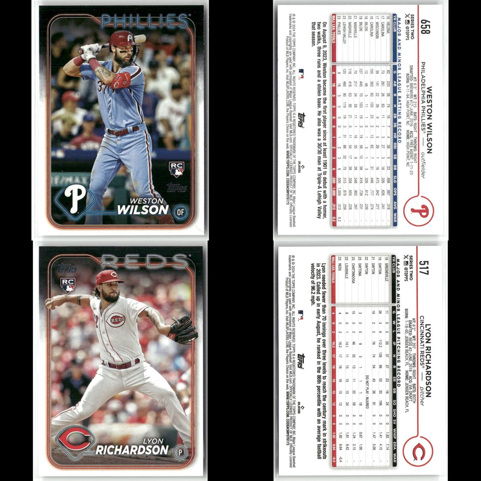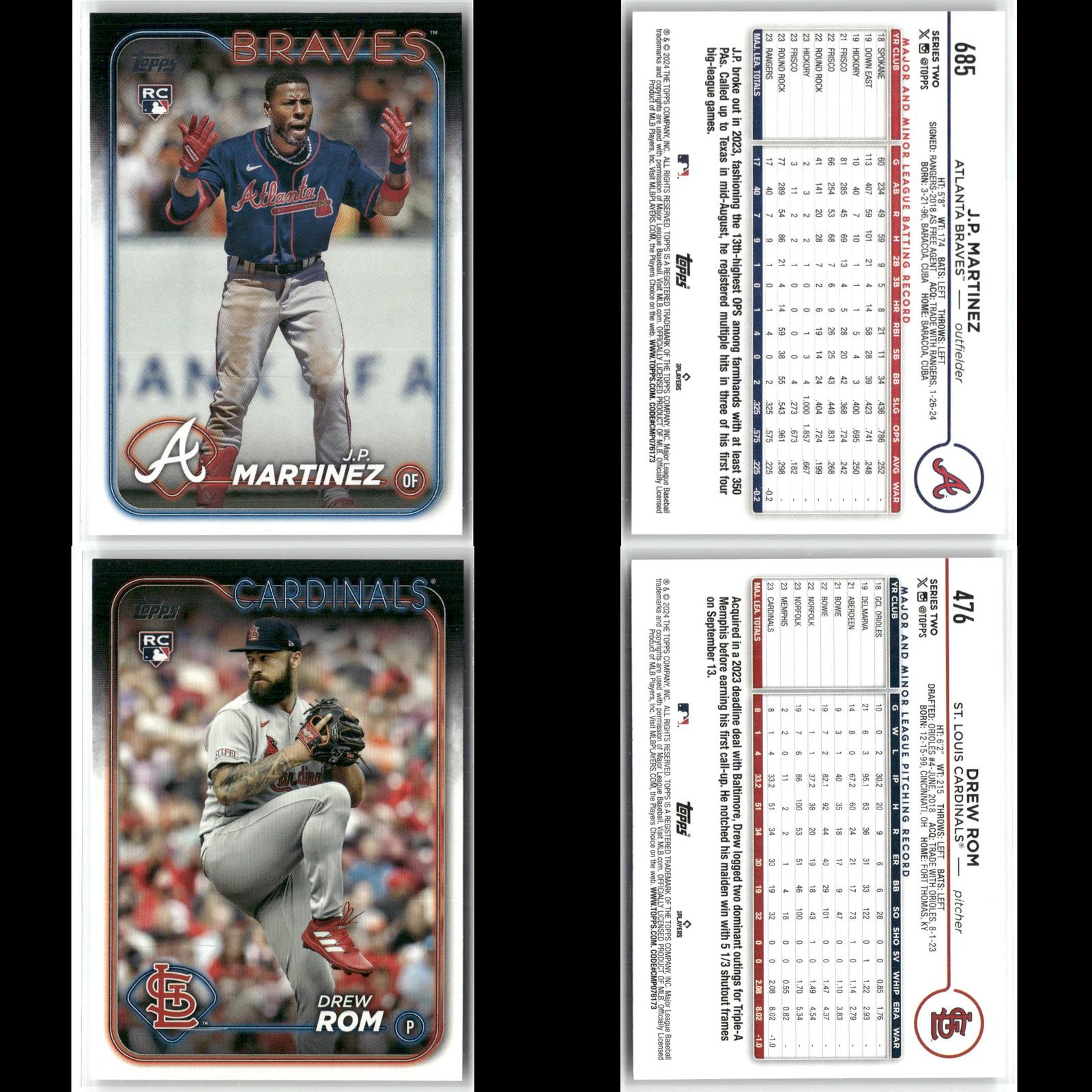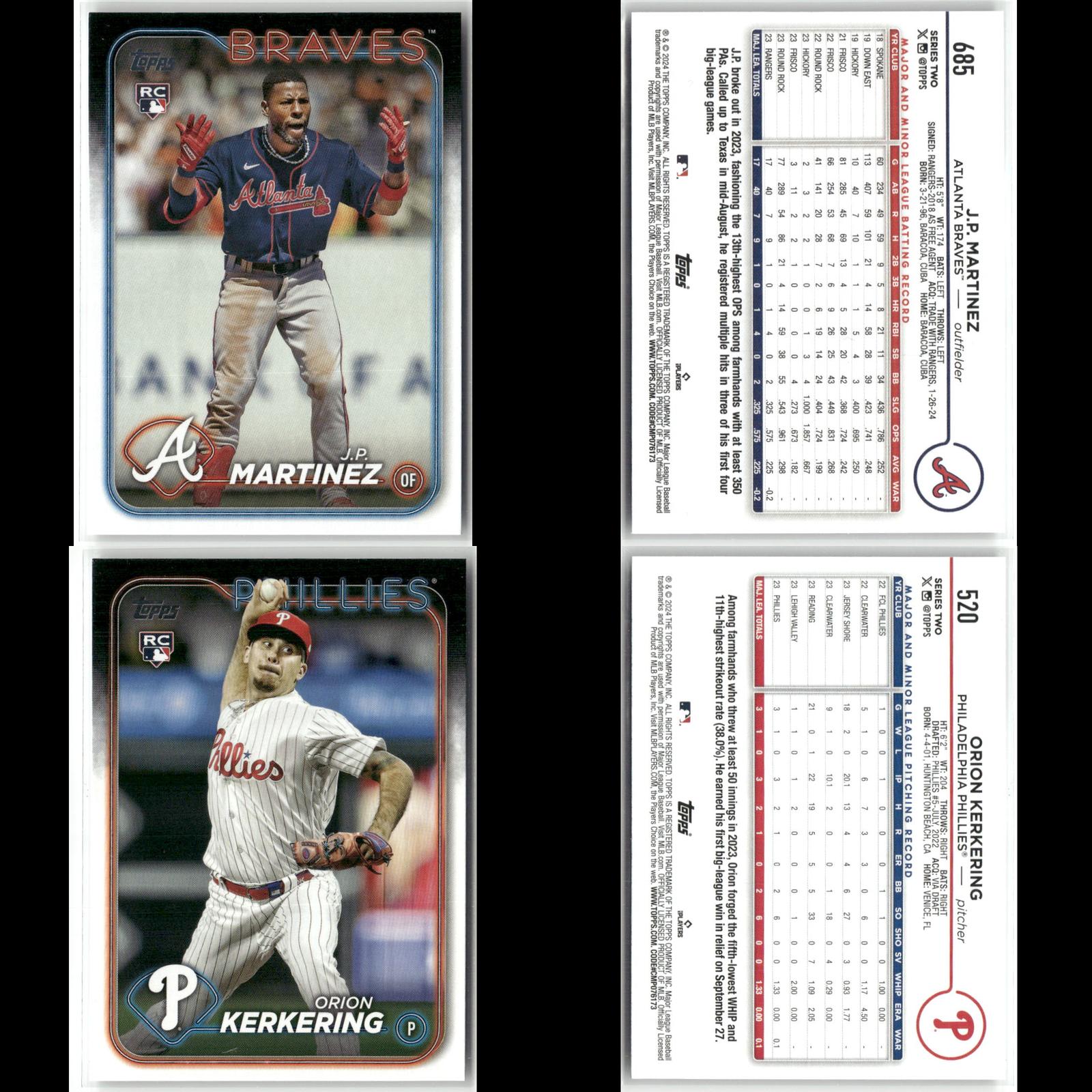 J.P. Martinez Rookie #685 2024 Topps Atlanta Braves Orion Kerkering Rookie #520 2024 Topps Philadelphia Phillies Weston Wilson Rookie #658 2024 Topps Philadelphia Phillies Lyon Richardson Rookie #517 2024 Topps Cincinnati Reds Wilyer Abreu Rookie #672 2024 Topps Boston Red Sox Colt Keith Rookie #US73 2024 Topps Update Detroit Tigers Osleivis Basabe Rookie #440 2024 Topps Tampa Bay Rays Lyon Richardson Rookie #517 2024 Topps Cincinnati Reds J.P. Martinez Rookie #685 2024 Topps Atlanta Braves Drew Rom Rookie #476 2024 Topps St. Louis Cardinals Andre Lipcius Rookie #509 2024 Topps Detroit Tigers Jackson Rutledge Rookie #503 2024 Topps Washington Nationals Parker Meadows Rookie #516 2024 Topps Detroit Tigers Colt Keith #US192 2024 Topps Update Detroit Tigers Emmet Sheehan #US141 2024 Topps Update Los Angeles Dodgers Nick Loftin Rookie #506 2024 Topps Kansas City Royals Kyle Hurt Rookie #583 2024 Topps Los Angeles Dodgers Austin Wells Rookie #624 2024 Topps New York Yankees Kyren Paris Rookie #549 2024 Topps Los Angeles Angels Kyren Paris Rookie #549 2024 Topps Los Angeles Angels Jackson Rutledge Rookie #503 2024 Topps Washington Nationals Masyn Winn Rookie #480 2024 Topps St. Louis Cardinals Jordan Lawlar Rookie #451 2024 Topps Arizona Diamondbacks Logan Porter Rookie #666 2024 Topps Kansas City Royals Jonathan Bowlan Rookie #399 2024 Topps Kansas City Royals Andre Lipcius Rookie #509 2024 Topps Detroit Tigers Lyon Richardson Rookie #517 2024 Topps Cincinnati Reds Allan Winans Rookie #494 2024 Topps Atlanta Braves James McArthur Rookie #434 2024 Topps Kansas City Royals José Soriano Rookie #15 2024 Topps Los Angeles Angels
