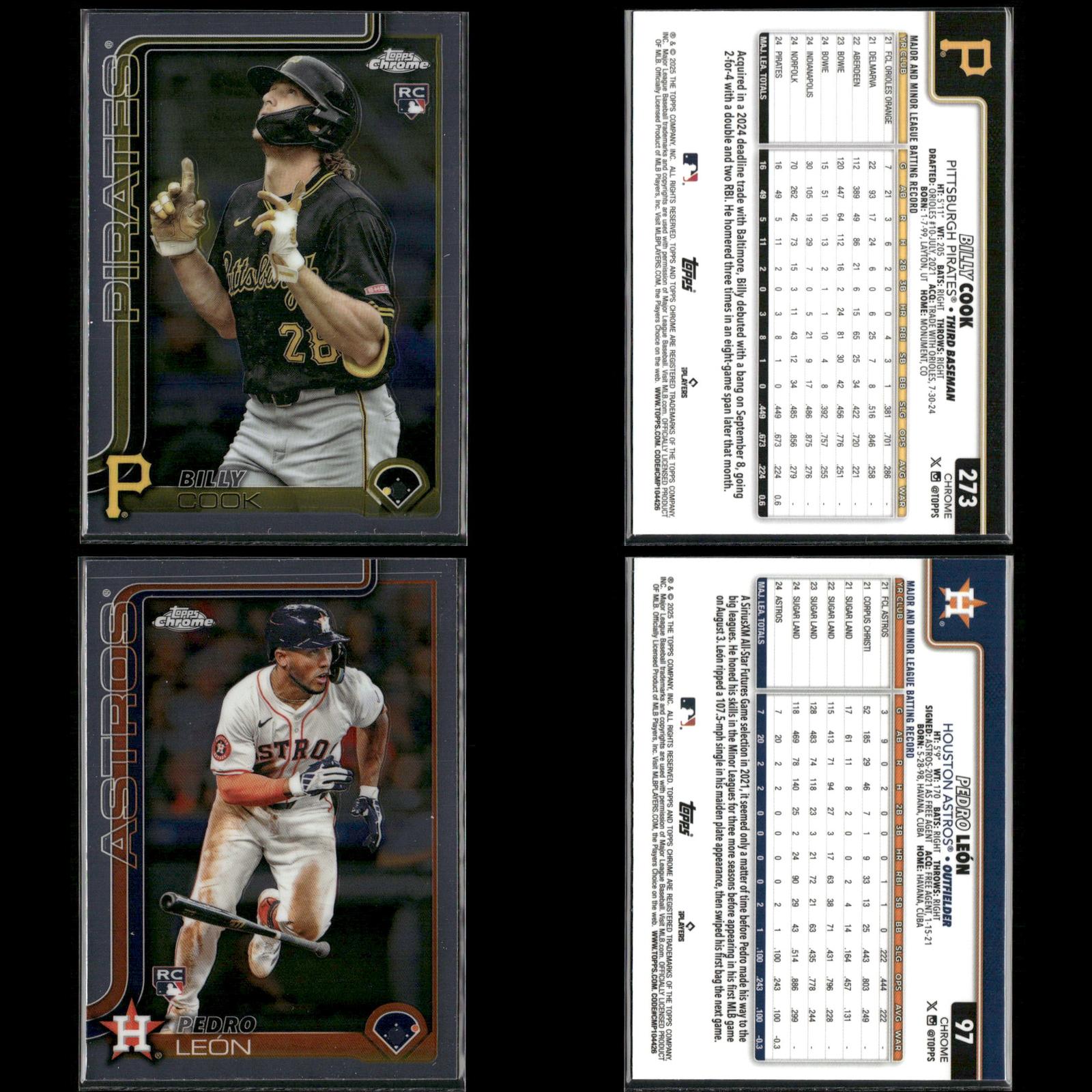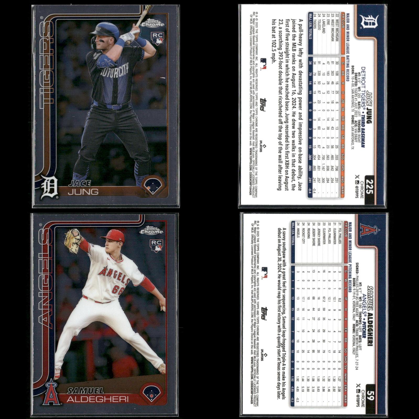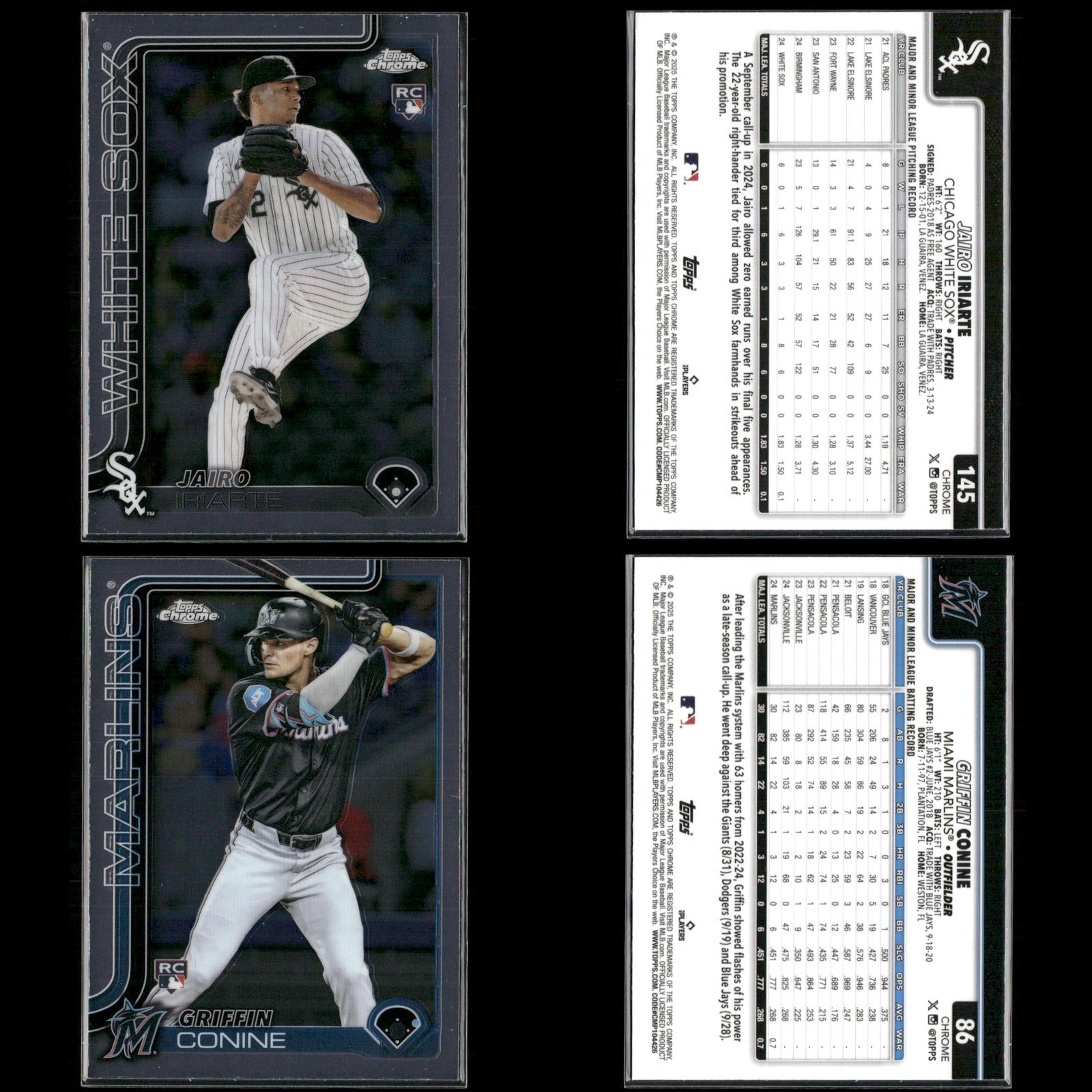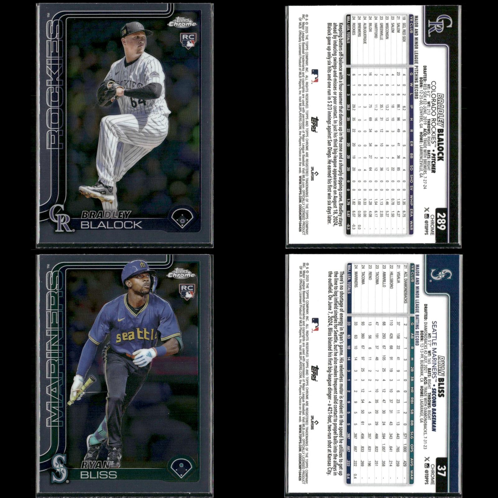 Shay Whitcomb Rookie #251 2025 Topps Chrome Houston Astros Connor Norby Rookie #199 2025 Topps Chrome Miami Marlins Bradley Blalock Rookie #289 2025 Topps Chrome Colorado Rockies Ryan Bliss Rookie #37 2025 Topps Chrome Seattle Mariners Niko Kavadas Rookie #20 2025 Topps Chrome Los Angeles Angels Dustin Harris Rookie #131 2025 Topps Chrome Texas Rangers Trey Sweeney Rookie #6 2025 Topps Chrome Detroit Tigers Adrian Del Castillo Rookie #240 2025 Topps Chrome Refractors Arizona Diamondbacks Jairo Iriarte Rookie #145 2025 Topps Chrome Chicago White Sox Griffin Conine Rookie #86 2025 Topps Chrome Miami Marlins Andrés Chaparro Rookie #187 2025 Topps Chrome Washington Nationals Zach Dezenzo Rookie #294 2025 Topps Chrome Houston Astros Darren Baker Rookie #231 2025 Topps Chrome Washington Nationals Adam Mazur Rookie #157 2025 Topps Chrome Miami Marlins Max Muncy Rookie #221 2025 Topps Chrome Athletics Angel Martínez Rookie #155 2025 Topps Chrome Cleveland Guardians Justin Wrobleski Rookie #38 2025 Topps Chrome Los Angeles Dodgers Brooks Baldwin Rookie #3 2025 Topps Chrome Chicago White Sox Billy Cook Rookie #273 2025 Topps Chrome Pittsburgh Pirates Pedro León Rookie #97 2025 Topps Chrome Houston Astros Adam Mazur Rookie #157 2025 Topps Chrome Miami Marlins Will Warren Rookie #81 2025 Topps Chrome New York Yankees Jace Jung Rookie #225 2025 Topps Chrome Detroit Tigers Samuel Aldegheri Rookie #59 2025 Topps Chrome Los Angeles Angels Drew Romo Rookie #124 2025 Topps Chrome Colorado Rockies Luis De Los Santos Rookie #74 2025 Topps Chrome New York Mets Hunter Feduccia Rookie #288 2025 Topps Chrome Los Angeles Dodgers Gordon Graceffo Rookie #256 2025 Topps Chrome St. Louis Cardinals Cristian Mena Rookie #102 2025 Topps Chrome Arizona Diamondbacks Dillon Dingler Rookie #274 2025 Topps Chrome Detroit Tigers