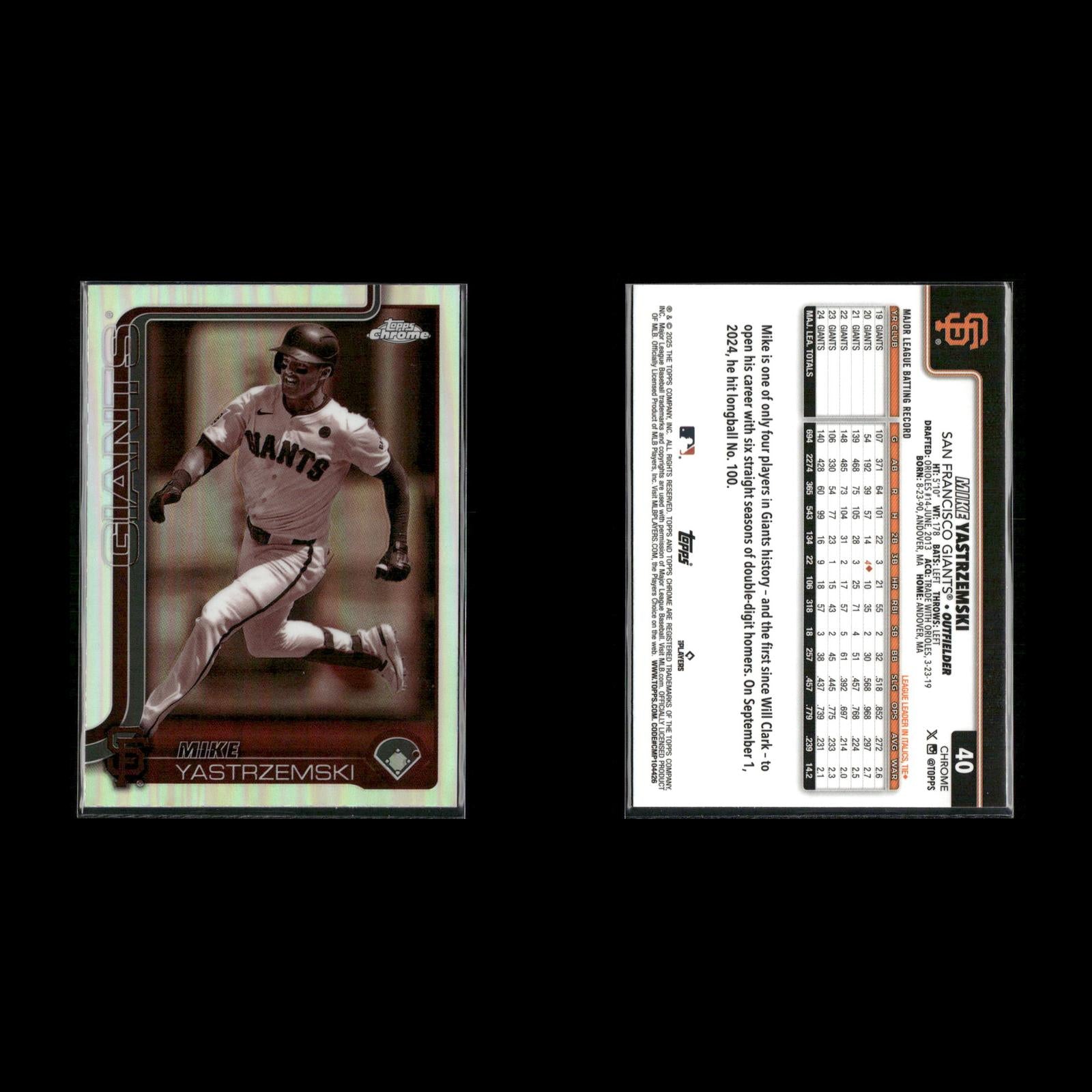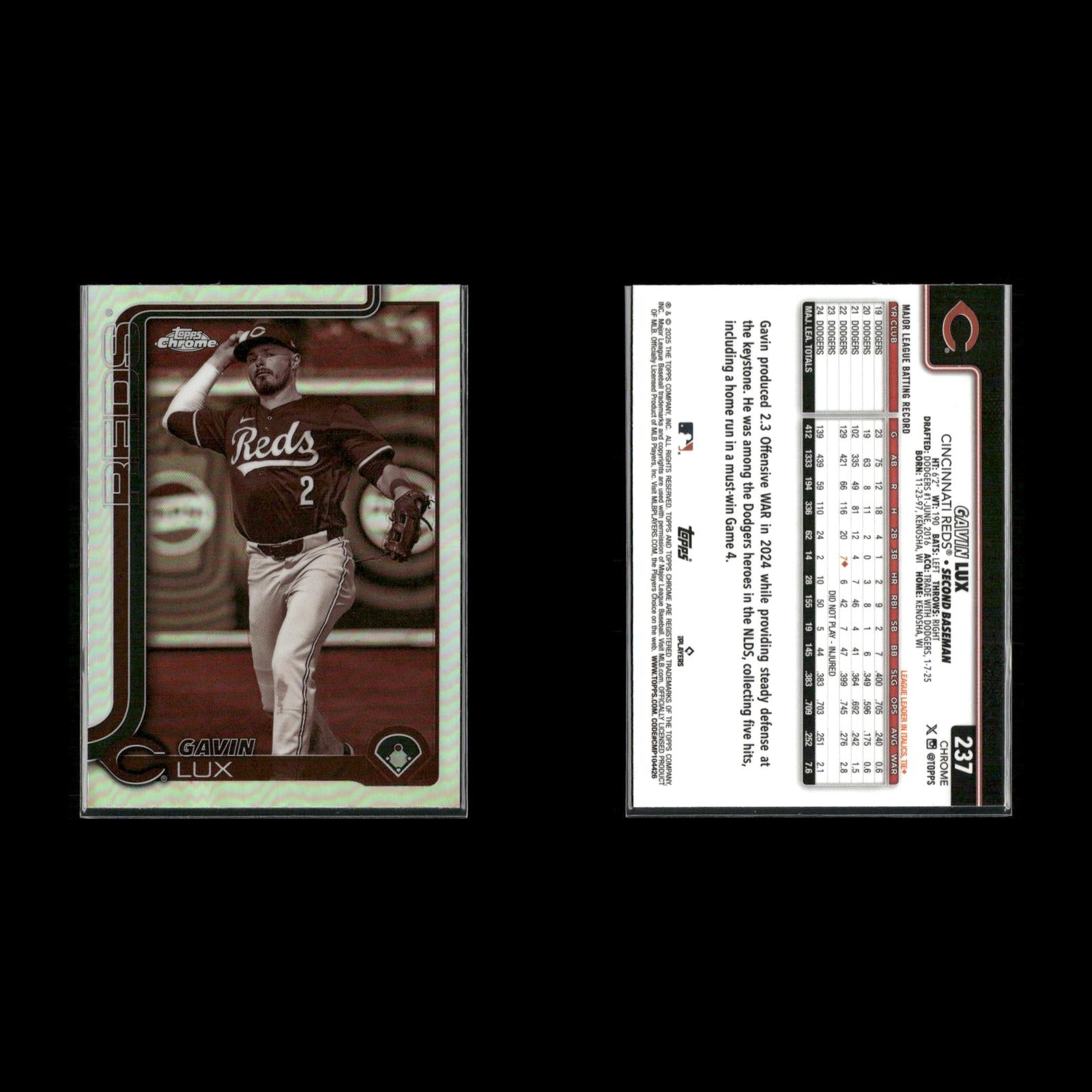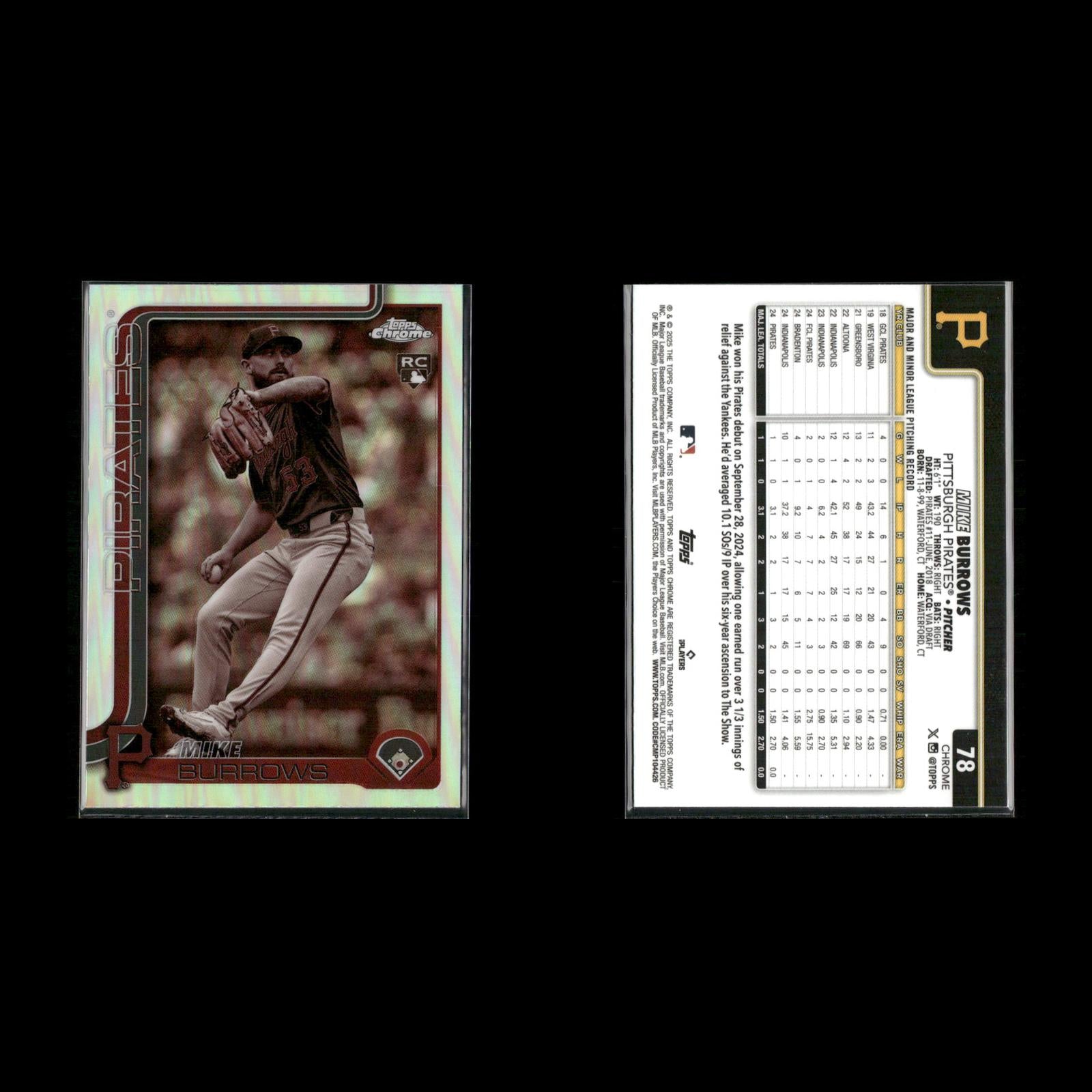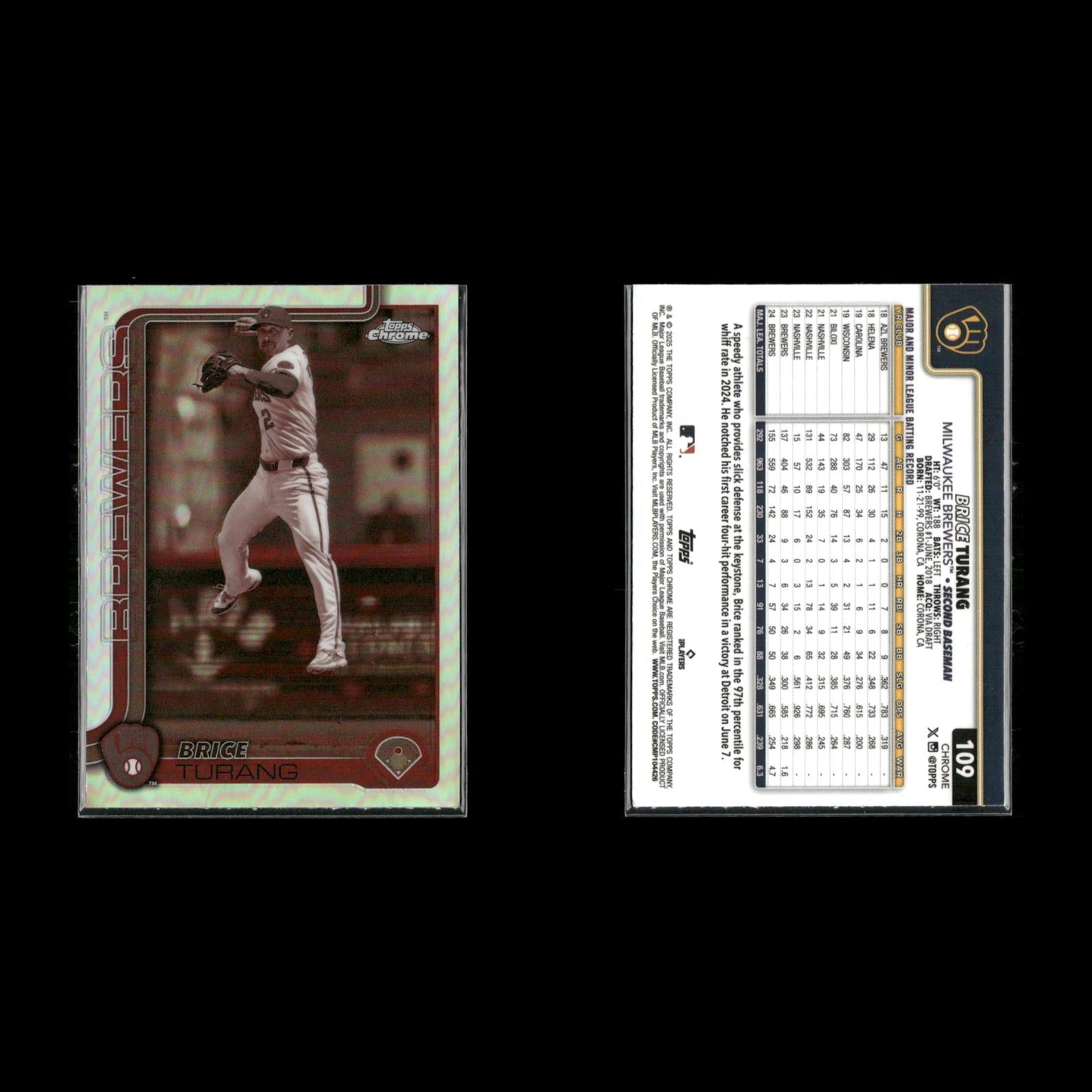 Blake Dunn Rookie #161 2025 Topps Chrome Sepia Refractors Cincinnati Reds William Contreras #25 2025 Topps Chrome Sepia Refractors Milwaukee Brewers Logan Webb #296 2025 Topps Chrome Sepia Refractors San Francisco Giants Jack Kochanowicz Rookie #121 2025 Topps Chrome Sepia Refractors Los Angeles Angels Mike Burrows Rookie #78 2025 Topps Chrome Sepia Refractors Pittsburgh Pirates Gavin Lux #237 2025 Topps Chrome Sepia Refractors Cincinnati Reds Triston McKenzie #21 2025 Topps Chrome Sepia Refractors Cleveland Guardians Brice Turang #109 2025 Topps Chrome Sepia Refractors Milwaukee Brewers Chayce McDermott Rookie #266 2025 Topps Chrome Sepia Refractors Baltimore Orioles Leo Jiménez Rookie #276 2025 Topps Chrome Sepia Refractors Toronto Blue Jays Salvador Perez #114 2025 Topps Chrome Sepia Refractors Kansas City Royals Oneil Cruz #252 2025 Topps Chrome Sepia Refractors Pittsburgh Pirates Cedric Mullins #5 2025 Topps Chrome Sepia Refractors Baltimore Orioles Mike Yastrzemski #40 2025 Topps Chrome Sepia Refractors San Francisco Giants