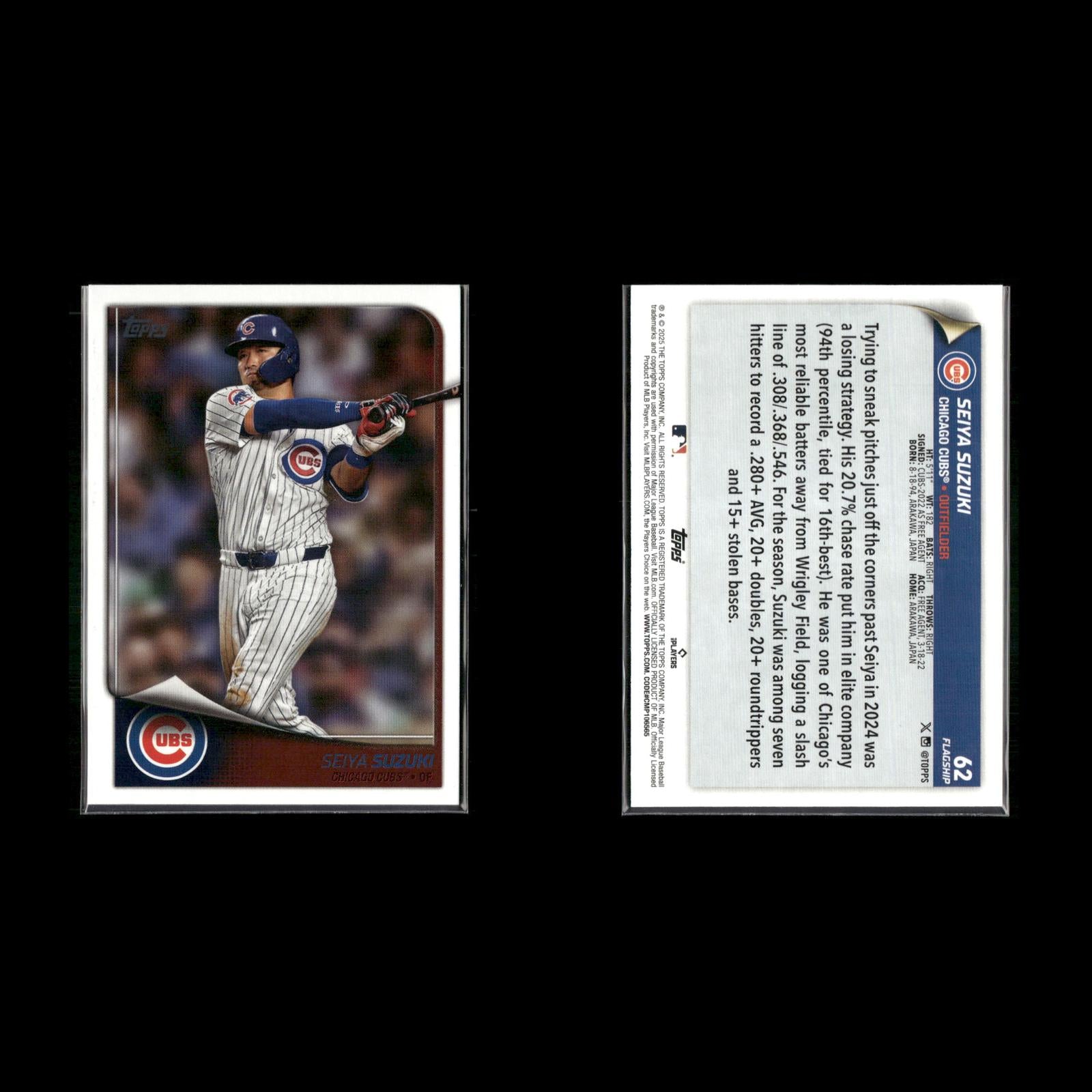Justin Steele #36 2025 Topps Flagship Collection Chicago Cubs Sal Frelick #46 2025 Topps Flagship Collection Milwaukee Brewers Salvador Perez #3 2025 Topps Flagship Collection Kansas City Royals Christopher Morel #30 2025 Topps Flagship Collection Tampa Bay Rays Adrian Del Castillo #45 2025 Topps Flagship Collection Arizona Diamondbacks David Festa #95 2025 Topps Flagship Collection Minnesota Twins Grant McCray #54 2025 Topps Flagship Collection San Francisco Giants Dansby Swanson #92 2025 Topps Flagship Collection Chicago Cubs Teoscar Hernandez #14 2025 Topps Flagship Collection Los Angeles Dodgers Jace Jung #37 2025 Topps Flagship Collection Detroit Tigers Zach Neto #31 2025 Topps Flagship Collection Los Angeles Angels Alec Bohm #51 2025 Topps Flagship Collection Philadelphia Phillies Seiya Suzuki #62 2025 Topps Flagship Collection Chicago Cubs