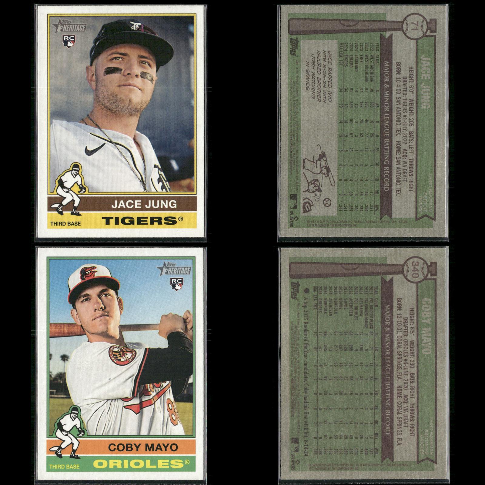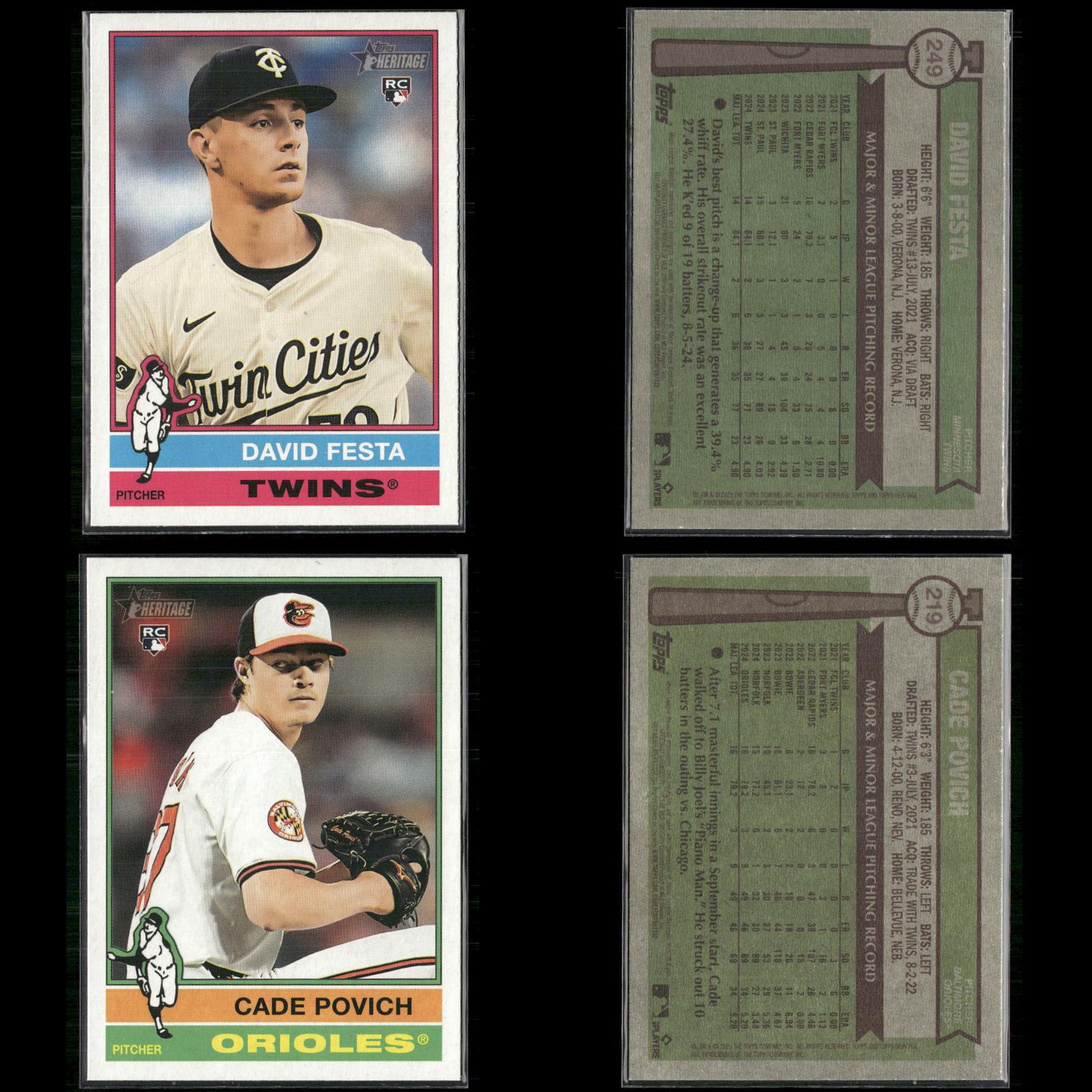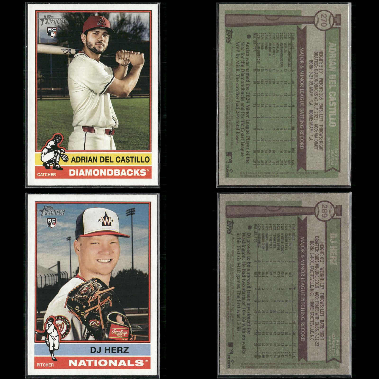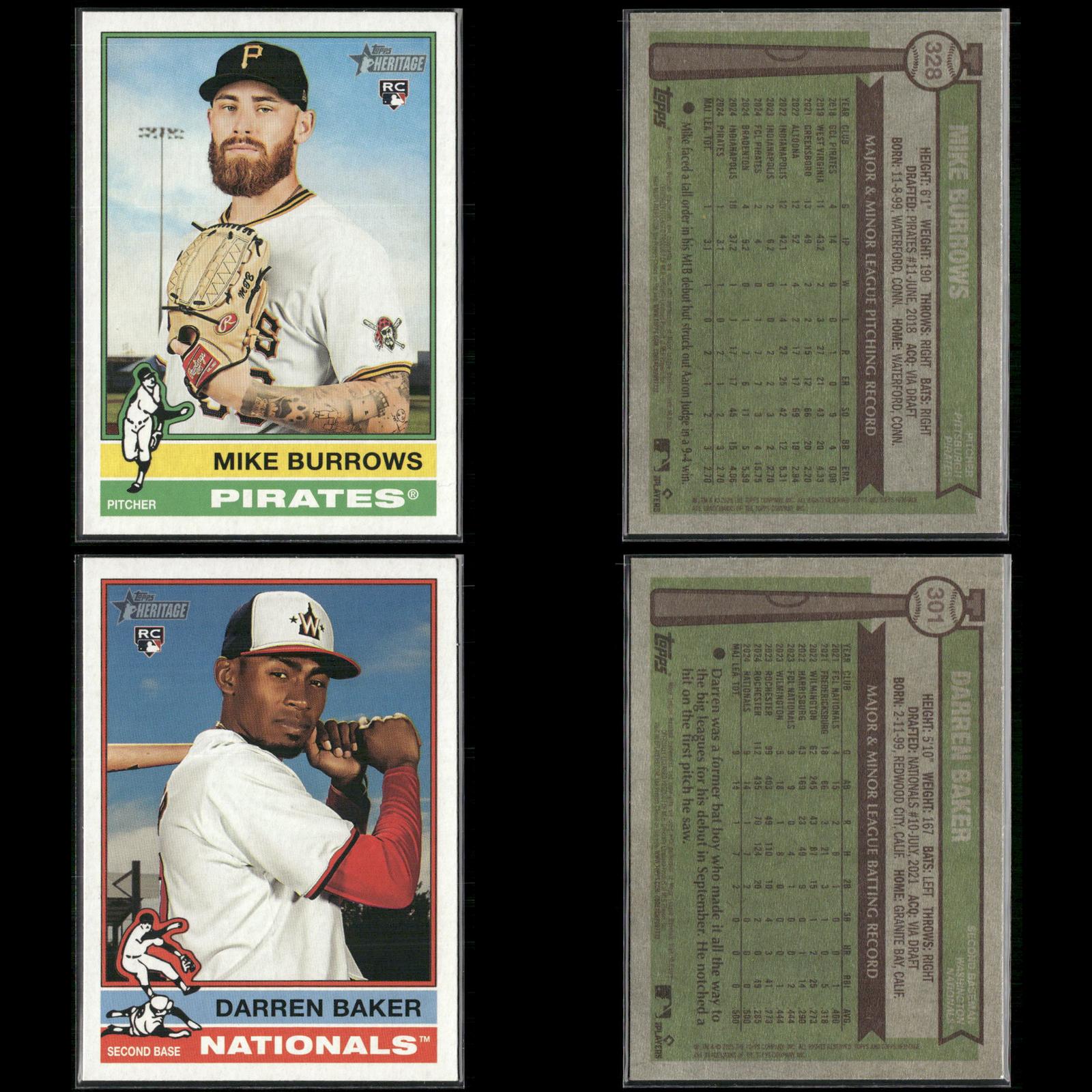 Nick Sogard Rookie #133 2025 Topps Heritage Boston Red Sox Levi Jordan Rookie #88 2025 Topps Heritage Cincinnati Reds Caden Dana Rookie #378 2025 Topps Heritage Los Angeles Angels Justin Wrobleski Rookie #319 2025 Topps Heritage Los Angeles Dodgers David Festa Rookie #249 2025 Topps Heritage Minnesota Twins Cade Povich Rookie #219 2025 Topps Heritage Baltimore Orioles Nick Sogard Rookie #133 2025 Topps Heritage Boston Red Sox Shay Whitcomb Rookie #362 2025 Topps Heritage Houston Astros Mike Burrows Rookie #328 2025 Topps Heritage Pittsburgh Pirates Darren Baker Rookie #301 2025 Topps Heritage Washington Nationals David Festa Rookie #249 2025 Topps Heritage Minnesota Twins Dustin Harris Rookie #114 2025 Topps Heritage Texas Rangers Dusty Baker / Darren Baker FS #70 2025 Topps Heritage Jhonkensy Noel Rookie #79 2025 Topps Heritage Cleveland Guardians Adrian Del Castillo Rookie #270 2025 Topps Heritage Arizona Diamondbacks DJ Herz Rookie #289 2025 Topps Heritage Washington Nationals Aaron Schunk Rookie #90 2025 Topps Heritage Colorado Rockies Justin Wrobleski Rookie #319 2025 Topps Heritage Los Angeles Dodgers Grant Holmes Rookie #22 2025 Topps Heritage Atlanta Braves Walter Pennington Rookie #101 2025 Topps Heritage Texas Rangers Lake Bachar Rookie #254 2025 Topps Heritage Miami Marlins Spencer Schwellenbach Rookie #58 2025 Topps Heritage Atlanta Braves Will Wagner Rookie #35 2025 Topps Heritage Toronto Blue Jays Connor Norby Rookie #136 2025 Topps Heritage Miami Marlins Dillon Dingler Rookie #130 2025 Topps Heritage Detroit Tigers Edgardo Henriquez Rookie #180 2025 Topps Heritage Los Angeles Dodgers Nick Sogard Rookie #133 2025 Topps Heritage Boston Red Sox Nick Yorke Rookie #80 2025 Topps Heritage Pittsburgh Pirates Niko Kavadas Rookie #320 2025 Topps Heritage Los Angeles Angels Jaden Hill Rookie #398 2025 Topps Heritage Colorado Rockies Grant Holman Rookie #40 2025 Topps Heritage Athletics Angel Chivilli Rookie #230 2025 Topps Heritage Colorado Rockies Jace Jung Rookie #71 2025 Topps Heritage Detroit Tigers Coby Mayo Rookie #340 2025 Topps Heritage Baltimore Orioles Duke Ellis Rookie #266 2025 Topps Heritage New York Yankees Pedro León Rookie #271 2025 Topps Heritage Houston Astros Bradley Blalock Rookie #351 2025 Topps Heritage Colorado Rockies Jacob Hurtubise #124 2025 Topps Heritage Cincinnati Reds Cristian Mena Rookie #134 2025 Topps Heritage Arizona Diamondbacks Joey Cantillo Rookie #104 2025 Topps Heritage Cleveland Guardians