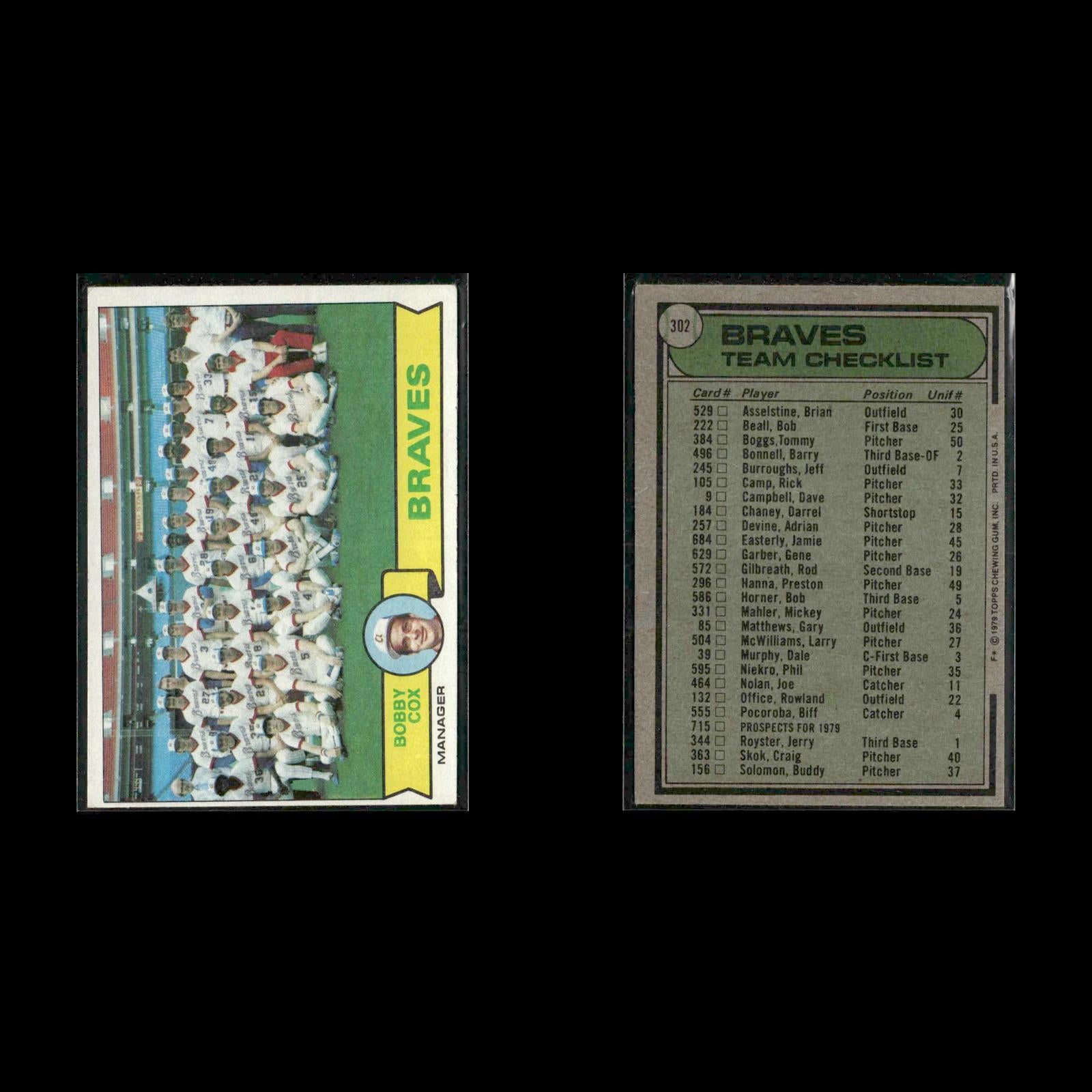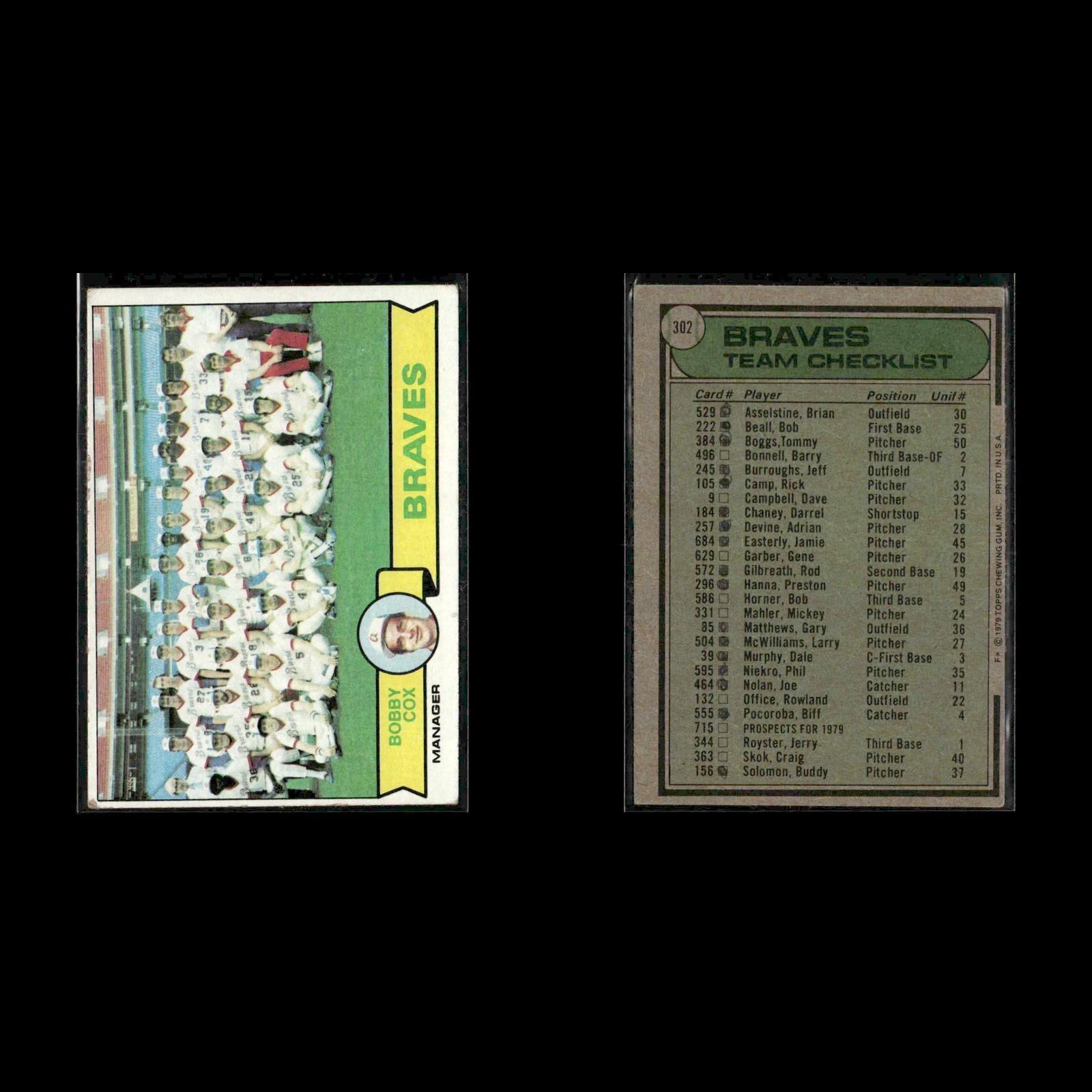 Jamie Easterly #684 1979 Topps Atlanta Braves Jamie Easterly #684 1979 Topps Atlanta Braves Jamie Easterly #684 1979 Topps Atlanta Braves Jamie Easterly #684 1979 Topps Atlanta Braves Jamie Easterly #684 1979 Topps Atlanta Braves Jerry Royster #344 1979 Topps Atlanta Braves Atlanta Braves / Bobby Cox TC, MGR, CL #302 1979 Topps Atlanta Braves Atlanta Braves / Bobby Cox TC, MGR, CL #302 1979 Topps Atlanta Braves Barry Bonnell #496 1979 Topps Atlanta Braves Barry Bonnell #496 1979 Topps Atlanta Braves Barry Bonnell #496 1979 Topps Atlanta Braves Biff Pocoroba #555 1979 Topps Atlanta Braves Buddy Solomon #156 1979 Topps Atlanta Braves Dave Campbell #9 1979 Topps Atlanta Braves Rowland Office #132 1979 Topps Atlanta Braves Rowland Office #132 1979 Topps Atlanta Braves Rowland Office #132 1979 Topps Atlanta Braves Rowland Office #132 1979 Topps Atlanta Braves Rowland Office #132 1979 Topps Atlanta Braves Jeff Burroughs #245 1979 Topps Atlanta Braves Adrian Devine #257 1979 Topps Atlanta Braves Tommy Boggs #384 1979 Topps Atlanta Braves Preston Hanna Rookie #296 1979 Topps Atlanta Braves Brian Asselstine #529 1979 Topps Atlanta Braves Brian Asselstine #529 1979 Topps Atlanta Braves Gary Matthews #85 1979 Topps Atlanta Braves Gene Garber #629 1979 Topps Atlanta Braves Larry McWilliams Rookie #504 1979 Topps Atlanta Braves Braves 1979 Prospects (Bruce Benedict / Glenn Hubbard / Larry Whisenton) PROS, RC Rookie #715 1979 Topps Atlanta Braves Braves 1979 Prospects (Bruce Benedict / Glenn Hubbard / Larry Whisenton) PROS, RC Rookie #715 1979 Topps Atlanta Braves