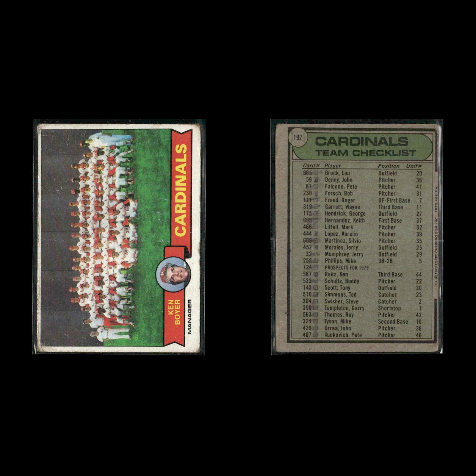 John Denny #59 1979 Topps St. Louis Cardinals John Denny #59 1979 Topps St. Louis Cardinals John Denny #59 1979 Topps St. Louis Cardinals John Denny #59 1979 Topps St. Louis Cardinals John Denny #59 1979 Topps St. Louis Cardinals Wayne Garrett #319 1979 Topps St. Louis Cardinals Mike Tyson #324 1979 Topps St. Louis Cardinals Steve Swisher #304 1979 Topps St. Louis Cardinals Steve Swisher #304 1979 Topps St. Louis Cardinals Steve Swisher #304 1979 Topps St. Louis Cardinals Steve Swisher #304 1979 Topps St. Louis Cardinals St. Louis Cardinals / Ken Boyer TC, MGR, CL #192 1979 Topps St. Louis Cardinals Jerry Mumphrey #32 1979 Topps St. Louis Cardinals Jerry Mumphrey #32 1979 Topps St. Louis Cardinals Pete Vuckovich #407 1979 Topps St. Louis Cardinals Roger Freed #111 1979 Topps St. Louis Cardinals Buddy Schultz #532 1979 Topps St. Louis Cardinals Buddy Schultz #532 1979 Topps St. Louis Cardinals Ted Simmons #510 1979 Topps St. Louis Cardinals Cardinals 1979 Prospects (Tom Bruno / George Frazier / Terry Kennedy) PROS, RC #724 1979 Topps St. Louis Cardinals John Urrea #429 1979 Topps St. Louis Cardinals John Urrea #429 1979 Topps St. Louis Cardinals Jerry Morales #452 1979 Topps St. Louis Cardinals Jerry Morales #452 1979 Topps St. Louis Cardinals Jerry Morales #452 1979 Topps St. Louis Cardinals Bob Forsch #230 1979 Topps St. Louis Cardinals Bob Forsch #230 1979 Topps St. Louis Cardinals Bob Forsch #230 1979 Topps St. Louis Cardinals Aurelio Lopez Rookie #444 1979 Topps St. Louis Cardinals Aurelio Lopez Rookie #444 1979 Topps St. Louis Cardinals Pete Falcone #87 1979 Topps St. Louis Cardinals Pete Falcone #87 1979 Topps St. Louis Cardinals Pete Falcone #87 1979 Topps St. Louis Cardinals