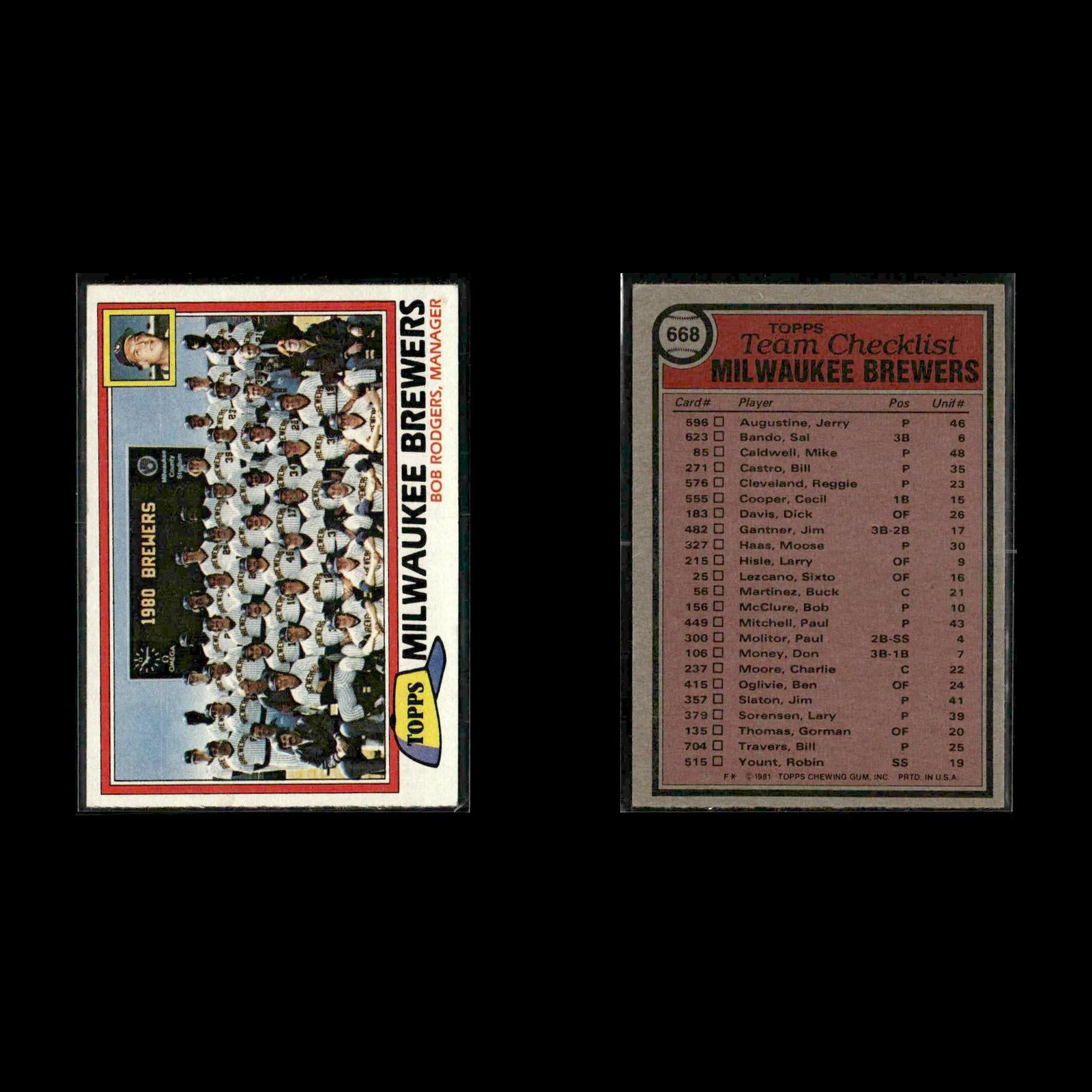 Reggie Cleveland #576 1981 Topps Milwaukee Brewers Sal Bando #623 1981 Topps Milwaukee Brewers Bob McClure #156 1981 Topps Milwaukee Brewers Dick Davis #183 1981 Topps Milwaukee Brewers Jim Slaton #357 1981 Topps Milwaukee Brewers Gorman Thomas #135 1981 Topps Milwaukee Brewers Lary Sorensen #379 1981 Topps Milwaukee Brewers Jerry Augustine #596 1981 Topps Milwaukee Brewers Paul Mitchell #449 1981 Topps Milwaukee Brewers Brewers Future Stars (John Flinn / Ed Romero / Ned Yost) FS #659 1981 Topps Milwaukee Brewers Charlie Moore #237 1981 Topps Milwaukee Brewers Reggie Cleveland #576 1981 Topps Milwaukee Brewers Ben Oglivie #415 1981 Topps Milwaukee Brewers Bill Castro #271 1981 Topps Milwaukee Brewers Reggie Cleveland #576 1981 Topps Milwaukee Brewers Ben Oglivie #415 1981 Topps Milwaukee Brewers Sal Bando #623 1981 Topps Milwaukee Brewers Brewers Future Stars (John Flinn / Ed Romero / Ned Yost) FS #659 1981 Topps Milwaukee Brewers Moose Haas #327 1981 Topps Milwaukee Brewers Dick Davis #183 1981 Topps Milwaukee Brewers Reggie Cleveland #576 1981 Topps Milwaukee Brewers Cecil Cooper #555 1981 Topps Milwaukee Brewers Gorman Thomas #135 1981 Topps Milwaukee Brewers Bob McClure #156 1981 Topps Milwaukee Brewers Bill Travers #704 1981 Topps Milwaukee Brewers Bill Travers #704 1981 Topps Milwaukee Brewers Reggie Cleveland #576 1981 Topps Milwaukee Brewers Mike Caldwell #85 1981 Topps Milwaukee Brewers Jim Slaton #357 1981 Topps Milwaukee Brewers Sixto Lezcano #25 1981 Topps Milwaukee Brewers Jerry Augustine #596 1981 Topps Milwaukee Brewers Lary Sorensen #379 1981 Topps Milwaukee Brewers Dick Davis #183 1981 Topps Milwaukee Brewers Bob McClure #156 1981 Topps Milwaukee Brewers Paul Mitchell #449 1981 Topps Milwaukee Brewers Larry Hisle #215 1981 Topps Milwaukee Brewers Brewers Future Stars (John Flinn / Ed Romero / Ned Yost) FS #659 1981 Topps Milwaukee Brewers Charlie Moore #237 1981 Topps Milwaukee Brewers Lary Sorensen #379 1981 Topps Milwaukee Brewers Mike Caldwell #85 1981 Topps Milwaukee Brewers Bill Travers #704 1981 Topps Milwaukee Brewers Milwaukee Brewers / Bob Rodgers TC, MGR, CL #668 1981 Topps Milwaukee Brewers Dick Davis #183 1981 Topps Milwaukee Brewers Jim Gantner #482 1981 Topps Milwaukee Brewers Sal Bando #623 1981 Topps Milwaukee Brewers Jim Slaton #357 1981 Topps Milwaukee Brewers Paul Molitor #300 1981 Topps Milwaukee Brewers Sal Bando #623 1981 Topps Milwaukee Brewers Jim Gantner #482 1981 Topps Milwaukee Brewers
