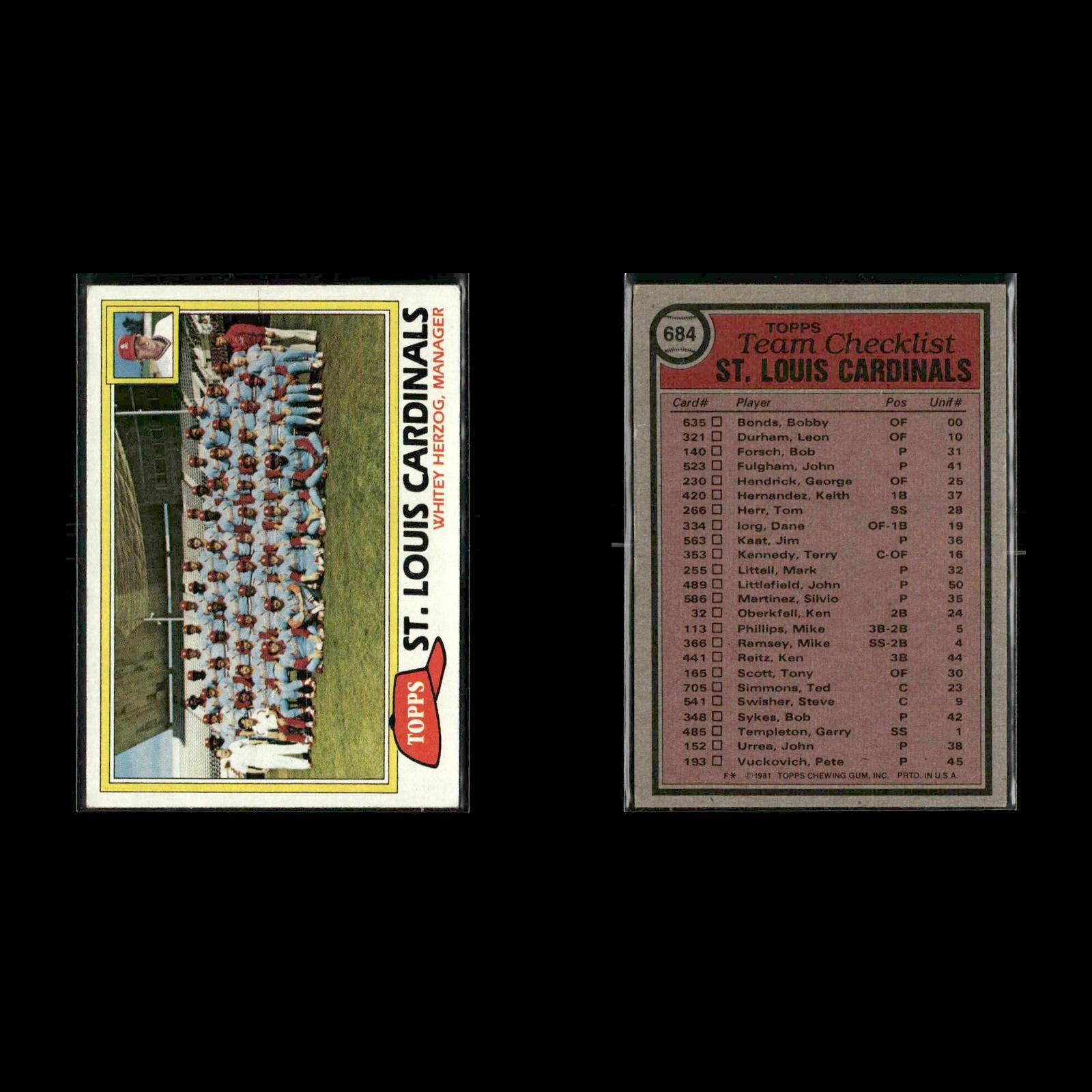 St. Louis Cardinals / Whitey Herzog TC, MGR, CL #684 1981 Topps St. Louis Cardinals