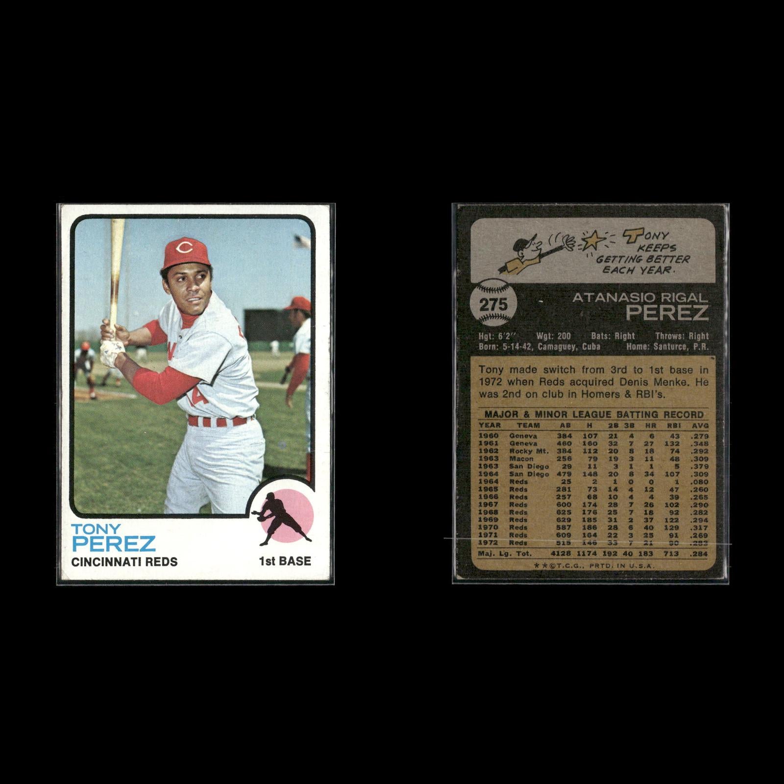 Pedro Borbon #492 1973 Topps Cincinnati Reds George Foster #399 1973 Topps Cincinnati Reds Tony Perez #275 1973 Topps Cincinnati Reds Gary Nolan #260 1973 Topps Cincinnati Reds Gary Nolan #260 1973 Topps Cincinnati Reds Denis Menke #52 1973 Topps Cincinnati Reds Denis Menke #52 1973 Topps Cincinnati Reds Jack Billingham #89 1973 Topps Cincinnati Reds Darrel Chaney #507 1973 Topps Cincinnati Reds Jack Billingham #89 1973 Topps Cincinnati Reds