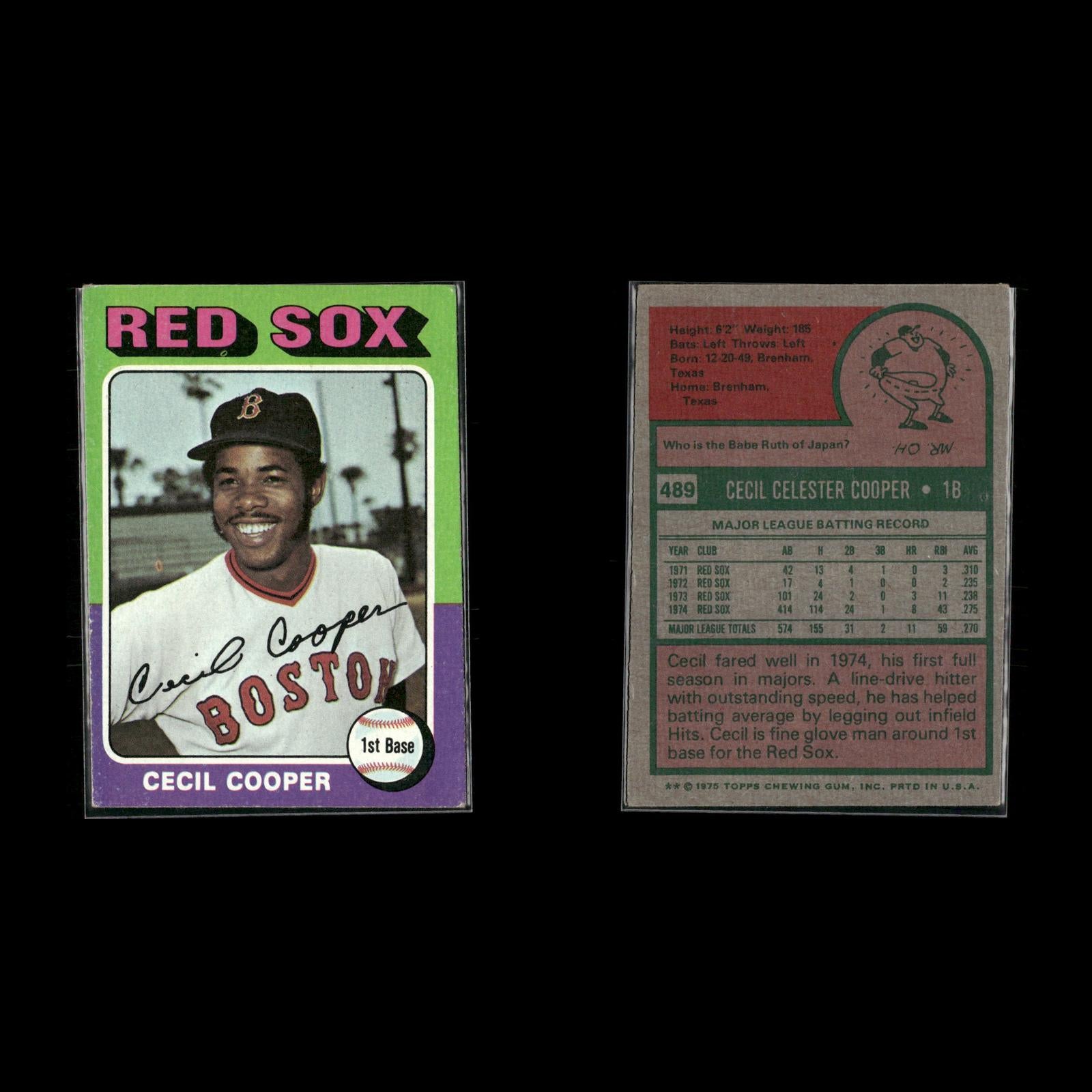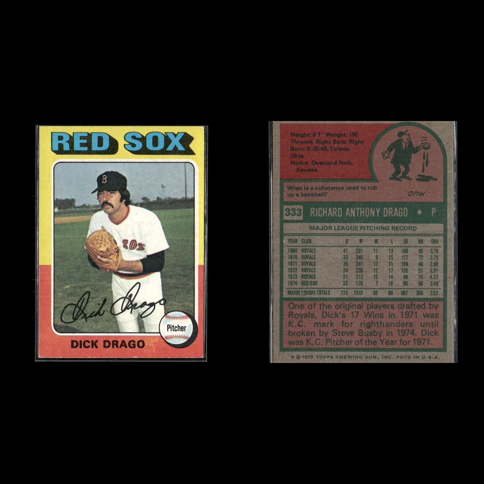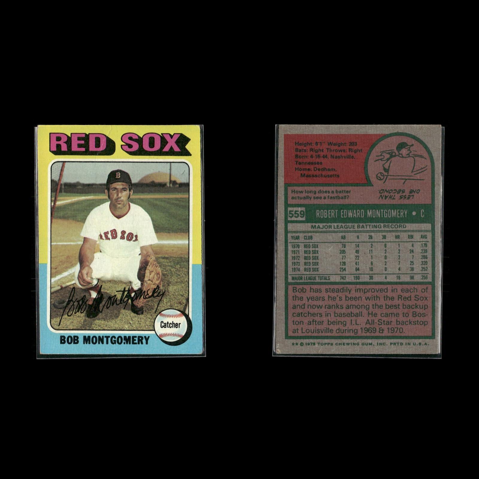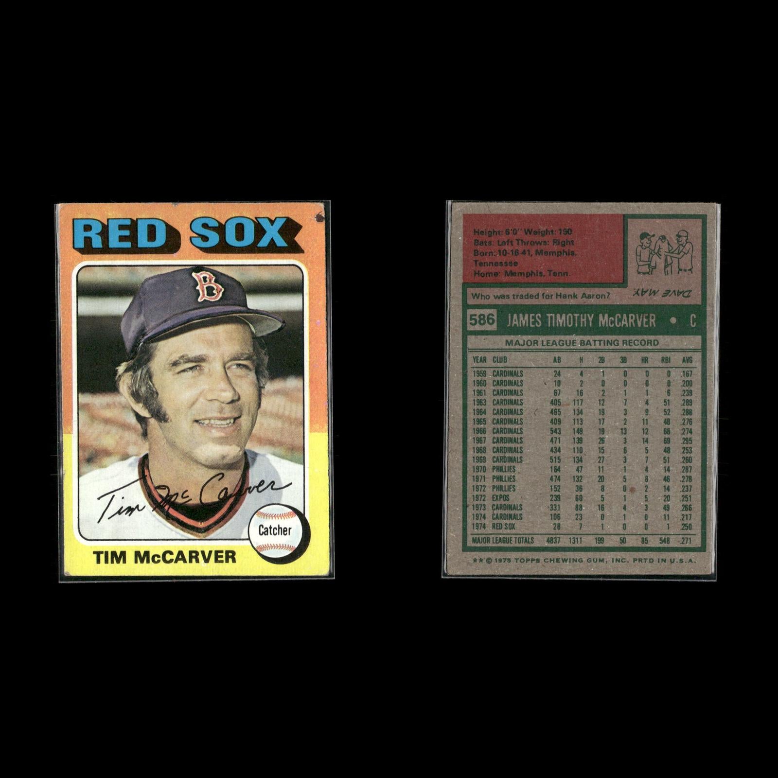 Luis Tiant #430 1975 Topps Boston Red Sox Dick Drago #333 1975 Topps Boston Red Sox Bill Lee #128 1975 Topps Boston Red Sox Bob Montgomery #559 1975 Topps Boston Red Sox Cecil Cooper #489 1975 Topps Boston Red Sox Rico Petrocelli #356 1975 Topps Boston Red Sox Bernie Carbo #379 1975 Topps Boston Red Sox Tim McCarver #586 1975 Topps Boston Red Sox Bernie Carbo #379 1975 Topps Boston Red Sox