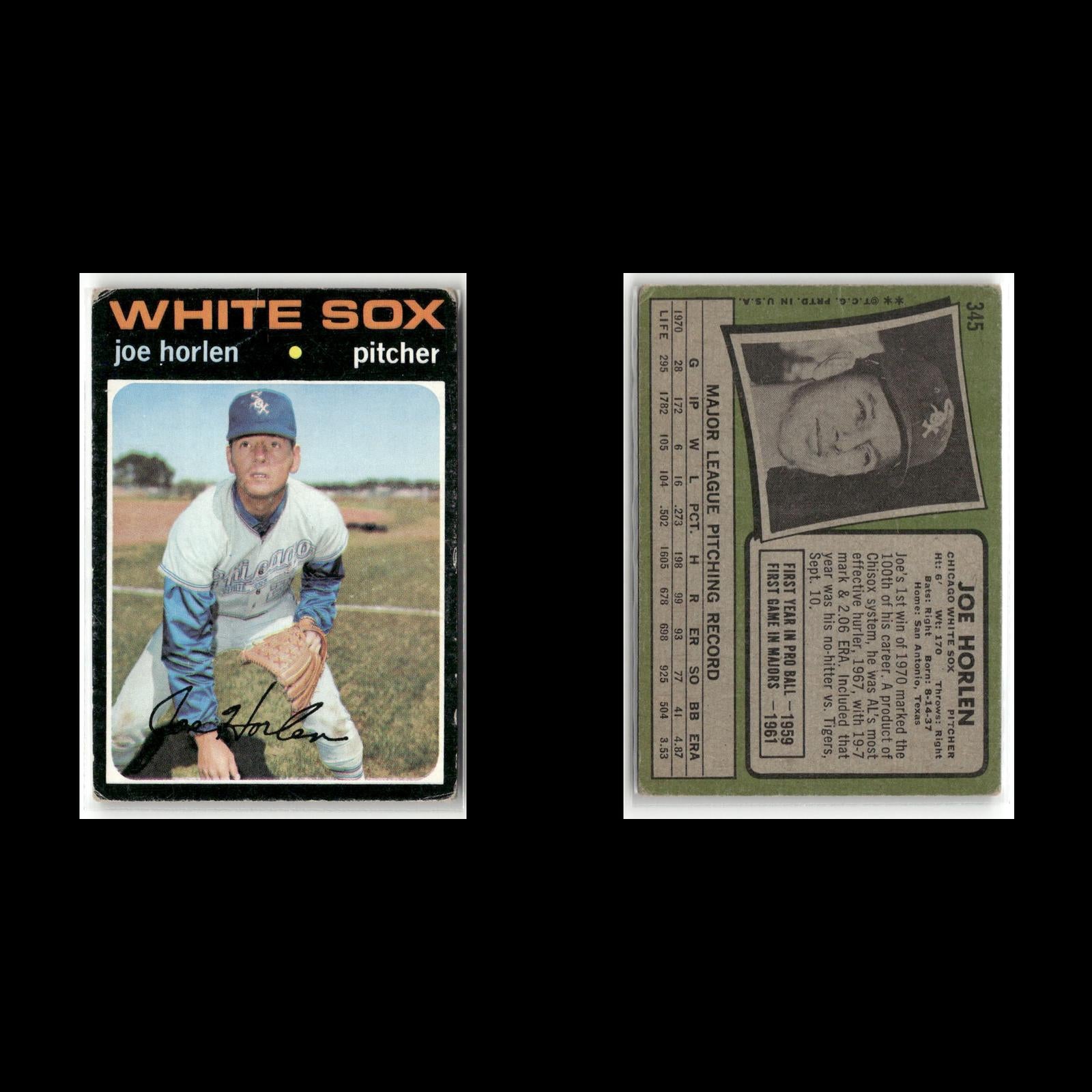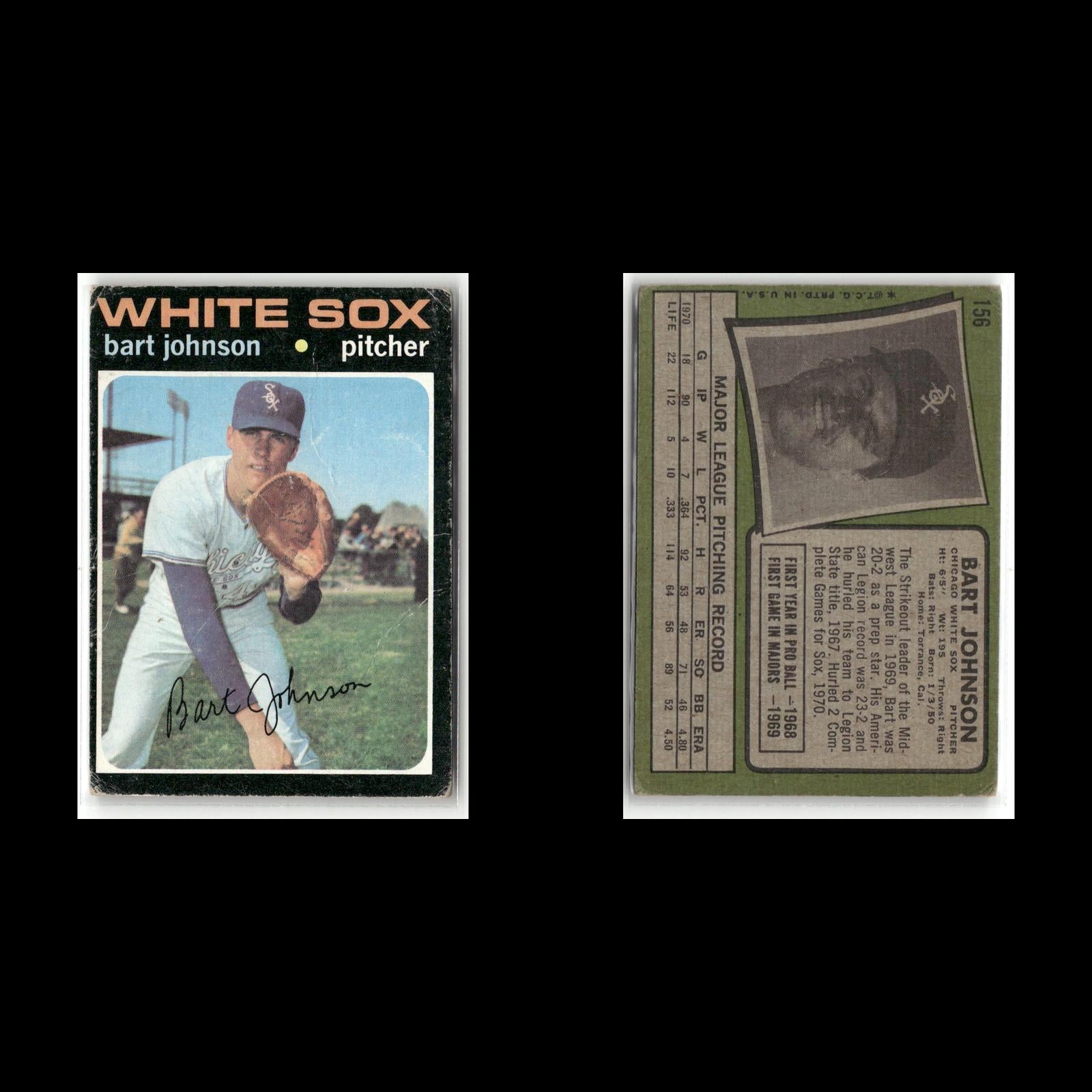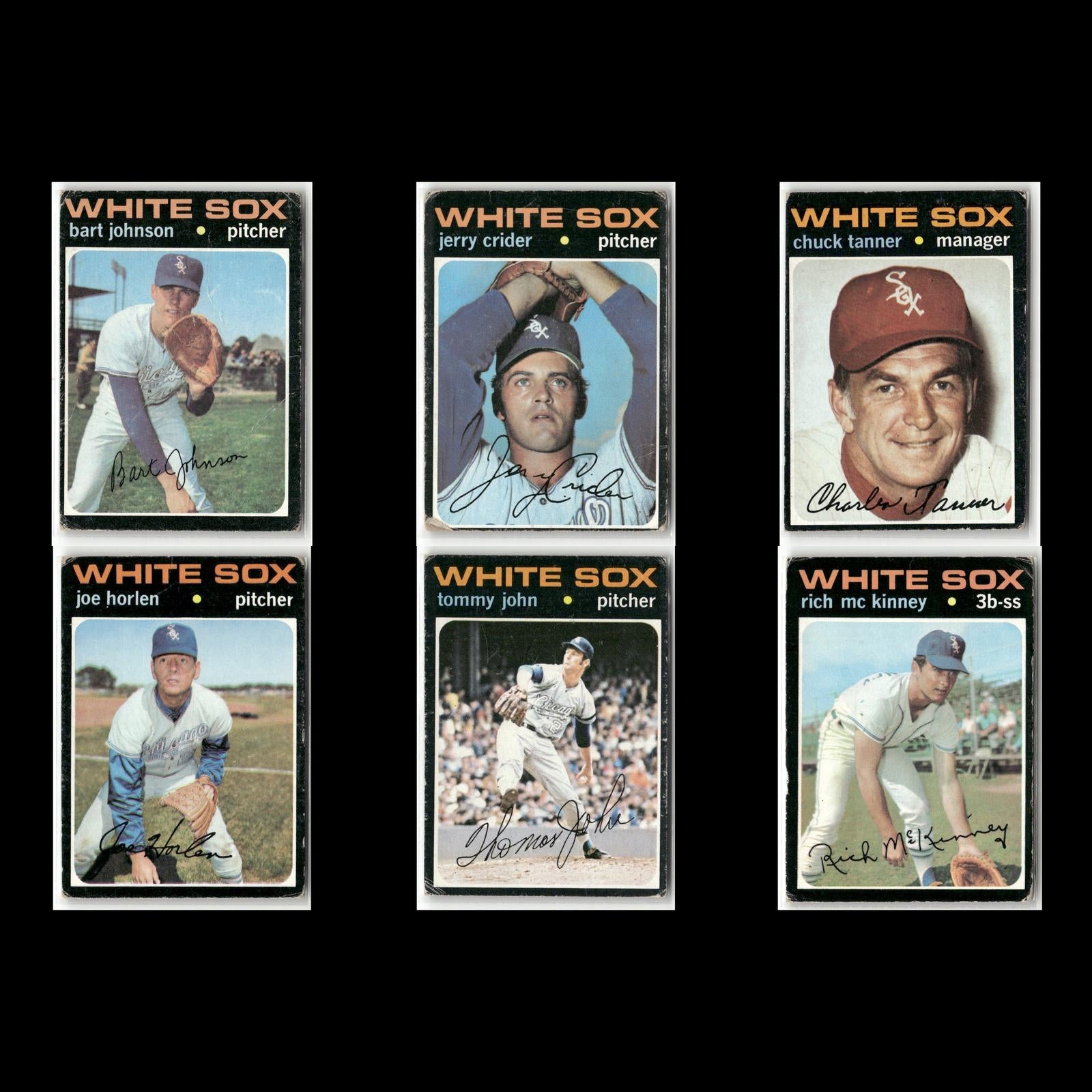 Bart Johnson #156 1971 Topps Chicago White Sox Jerry Crider #113 1971 Topps Chicago White Sox Chuck Tanner #661 1971 Topps Chicago White Sox Joe Horlen #345 1971 Topps Chicago White Sox Tommy John #520 1971 Topps Chicago White Sox Rich McKinney Rookie #37 1971 Topps Chicago White Sox