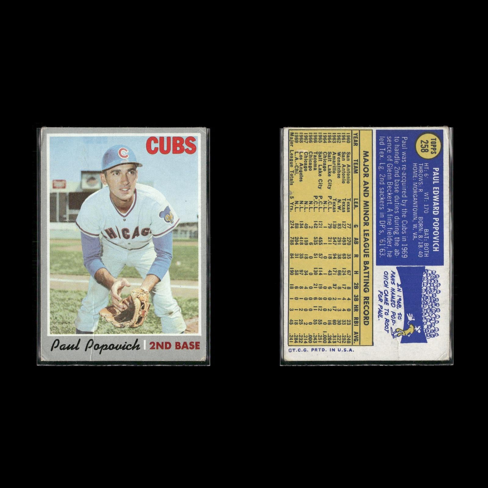 Jim Hickman #612 1970 Topps Chicago Cubs Ken Holtzman #505 1970 Topps Chicago Cubs Fergie Jenkins #240 1970 Topps Chicago Cubs Paul Popovich #258 1970 Topps Chicago Cubs Leo Durocher #291 1970 Topps Chicago Cubs Willie Smith #318 1970 Topps Chicago Cubs Don Young #117 1970 Topps Chicago Cubs