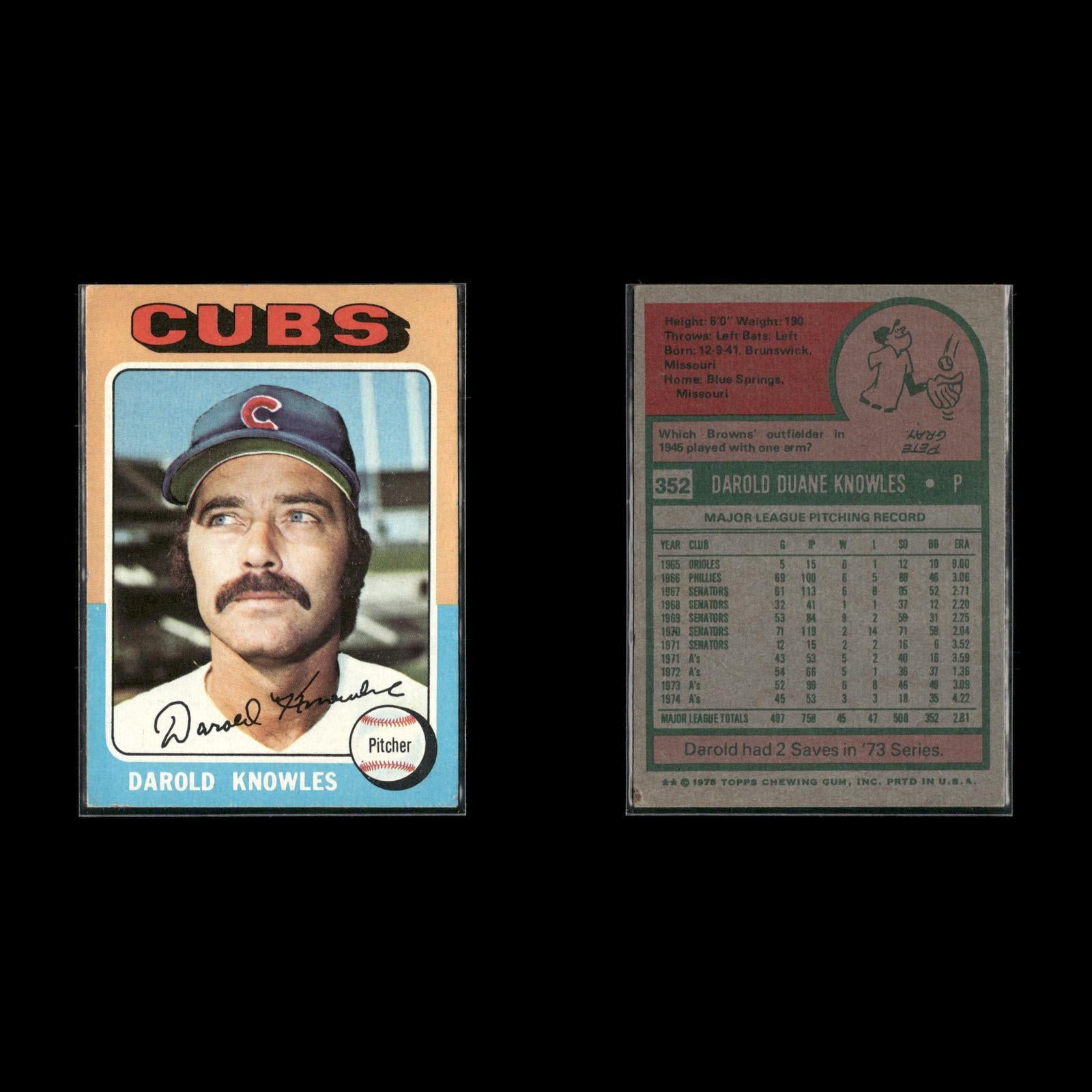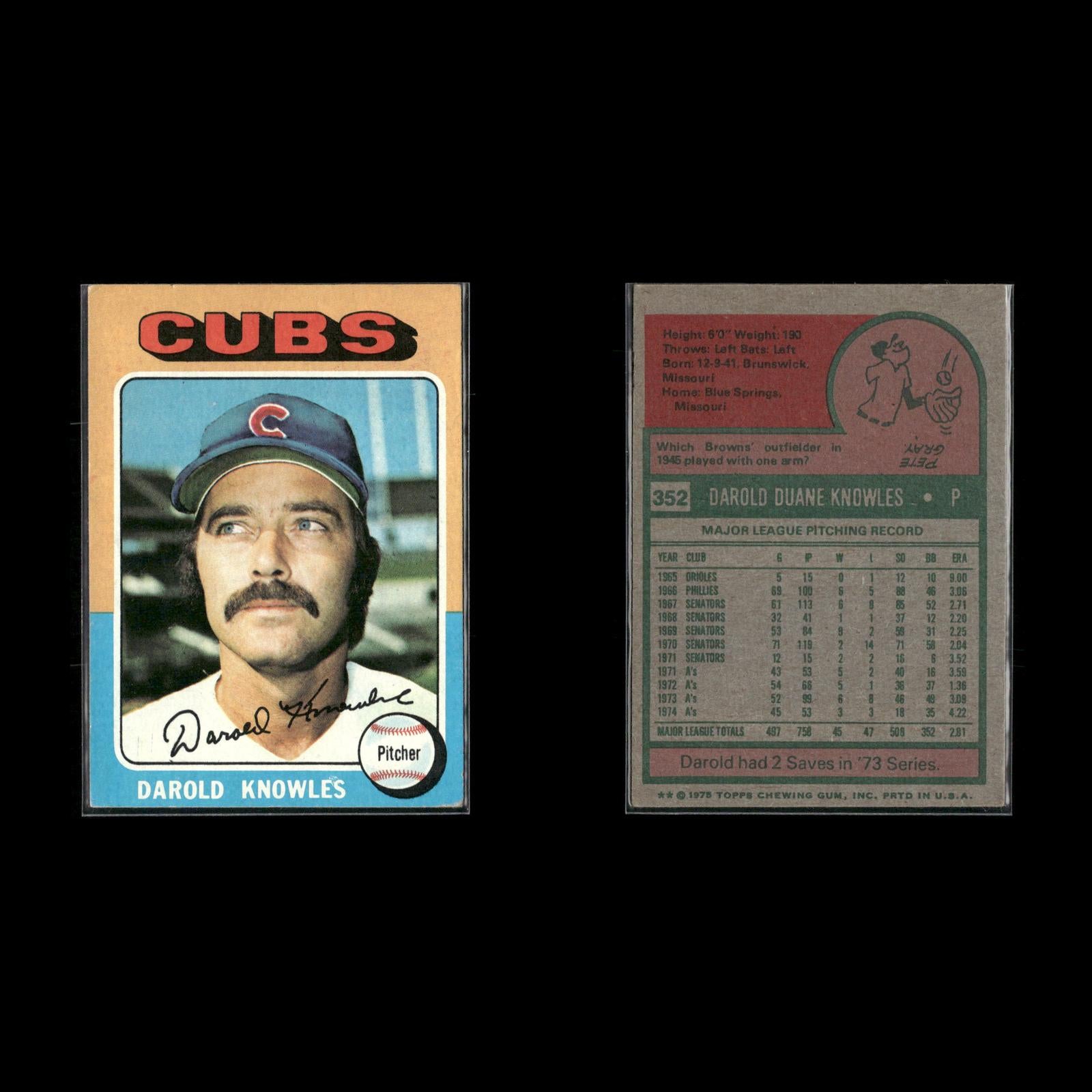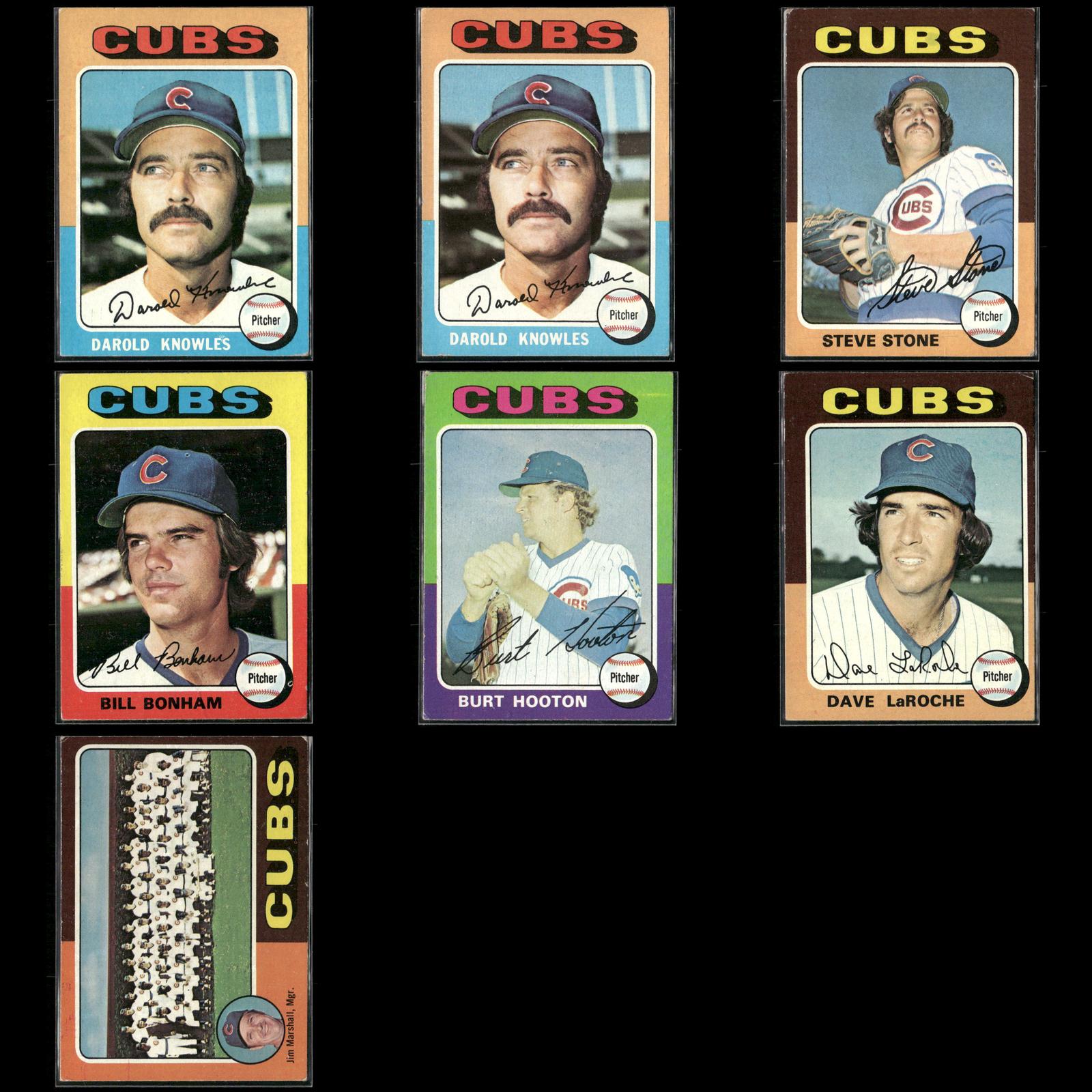 Darold Knowles #352 1975 Topps Chicago Cubs Darold Knowles #352 1975 Topps Chicago Cubs Steve Stone #388 1975 Topps Chicago Cubs Bill Bonham #85 1975 Topps Chicago Cubs Burt Hooton #176 1975 Topps Chicago Cubs Dave LaRoche #258 1975 Topps Chicago Cubs Chicago Cubs / Jim Marshall TC, MGR, CL #638 1975 Topps Chicago Cubs