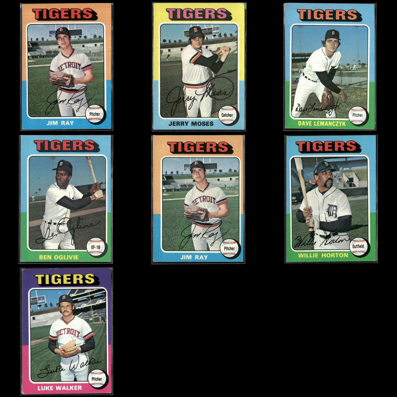 7-Card Lot Vintage 1975 Topps Detroit Tigers | MLB Baseball Trading Cards Topps