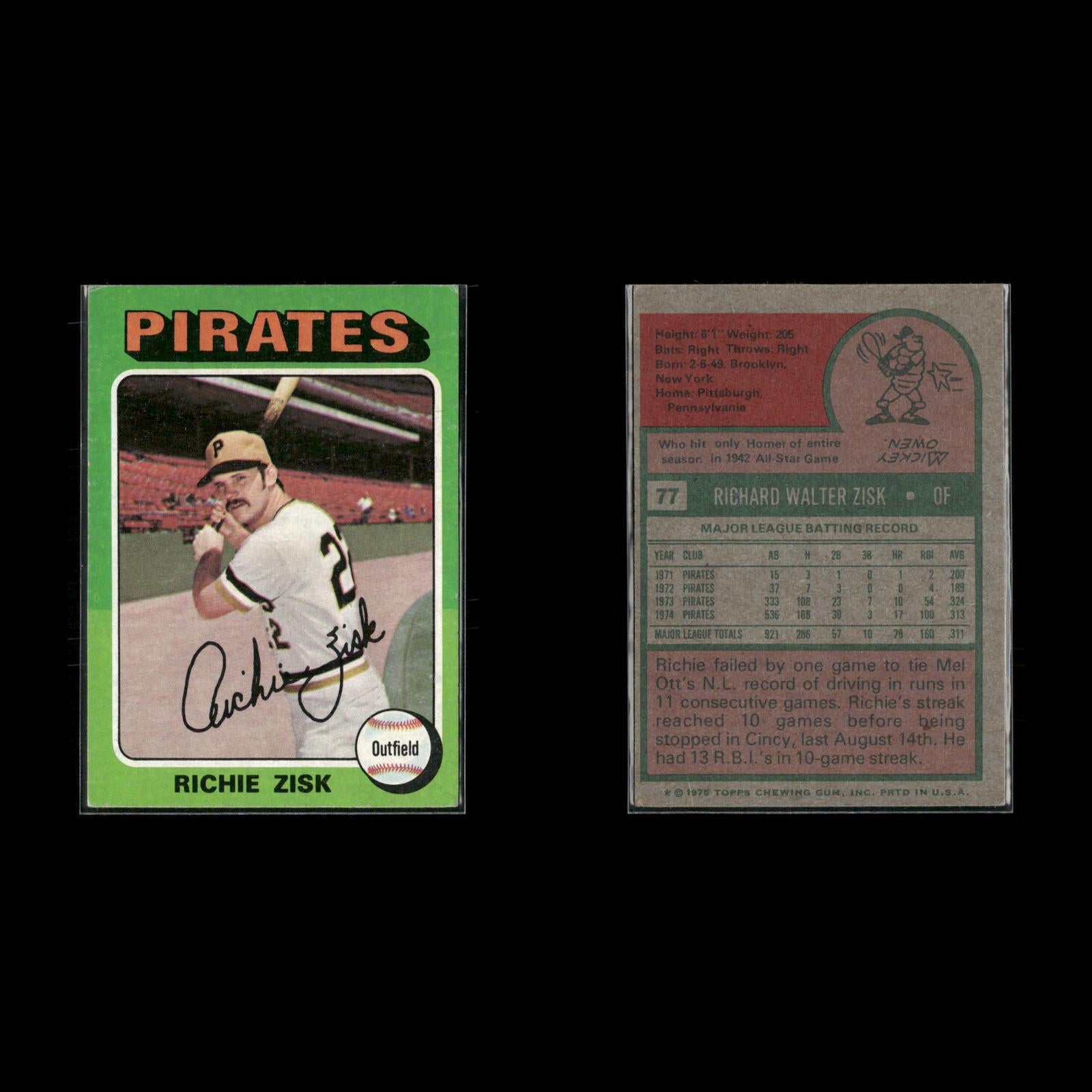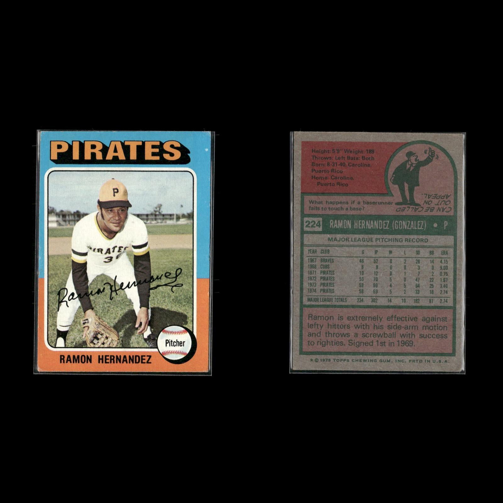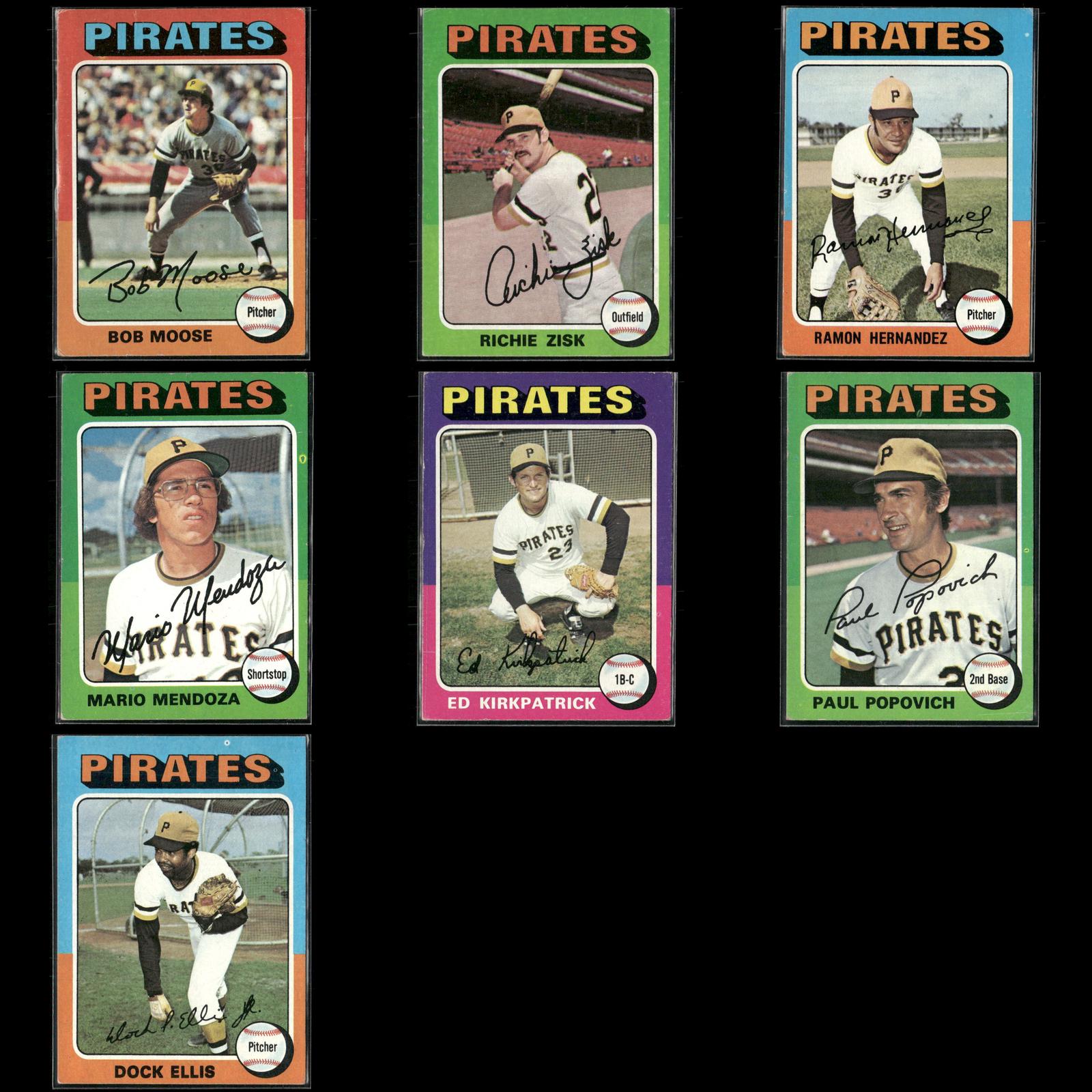 Bob Moose #536 1975 Topps Pittsburgh Pirates Richie Zisk #77 1975 Topps Pittsburgh Pirates Ramon Hernandez #224 1975 Topps Pittsburgh Pirates Mario Mendoza Rookie #457 1975 Topps Pittsburgh Pirates Ed Kirkpatrick #171 1975 Topps Pittsburgh Pirates Paul Popovich #359 1975 Topps Pittsburgh Pirates Dock Ellis #385 1975 Topps Pittsburgh Pirates
