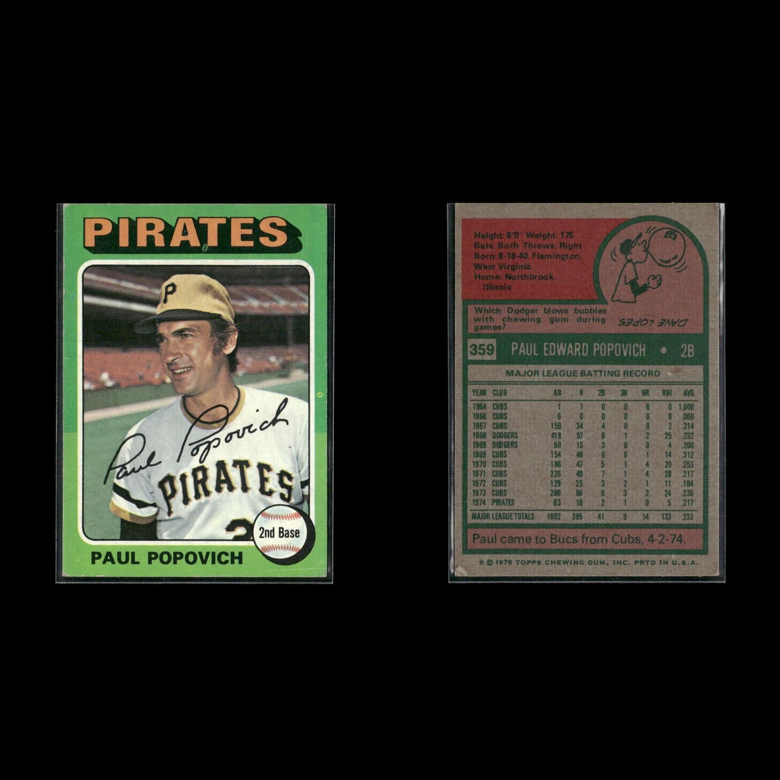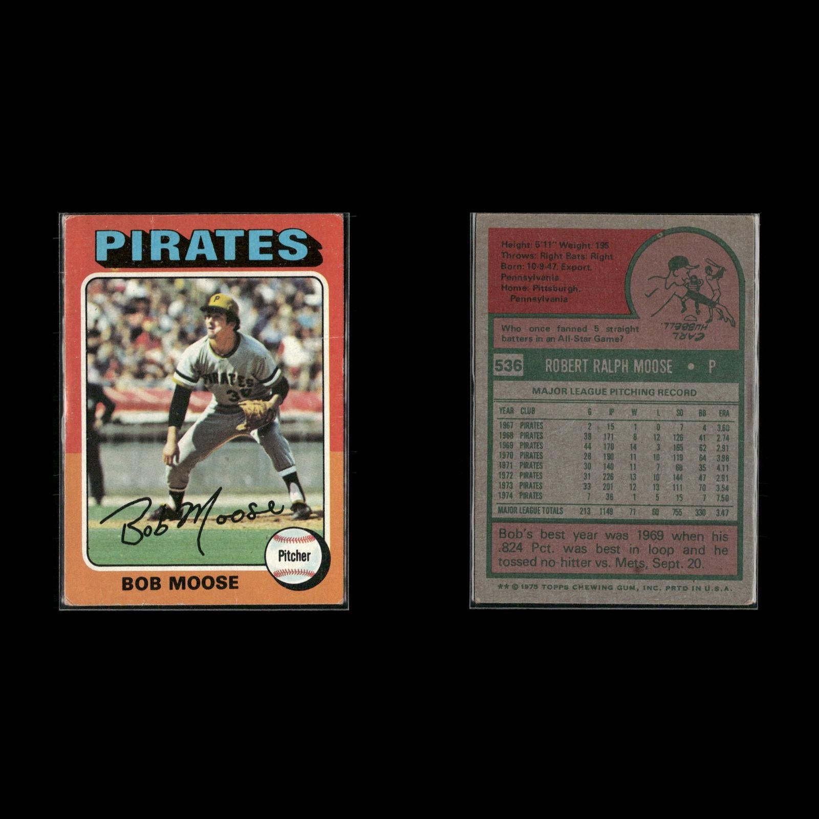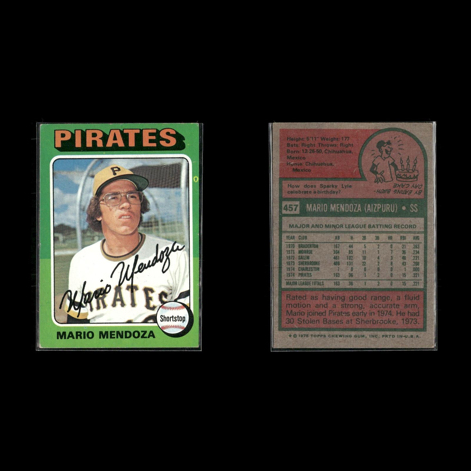 Bob Moose #536 1975 Topps Pittsburgh Pirates Richie Zisk #77 1975 Topps Pittsburgh Pirates Ramon Hernandez #224 1975 Topps Pittsburgh Pirates Mario Mendoza Rookie #457 1975 Topps Pittsburgh Pirates Ed Kirkpatrick #171 1975 Topps Pittsburgh Pirates Paul Popovich #359 1975 Topps Pittsburgh Pirates Dock Ellis #385 1975 Topps Pittsburgh Pirates