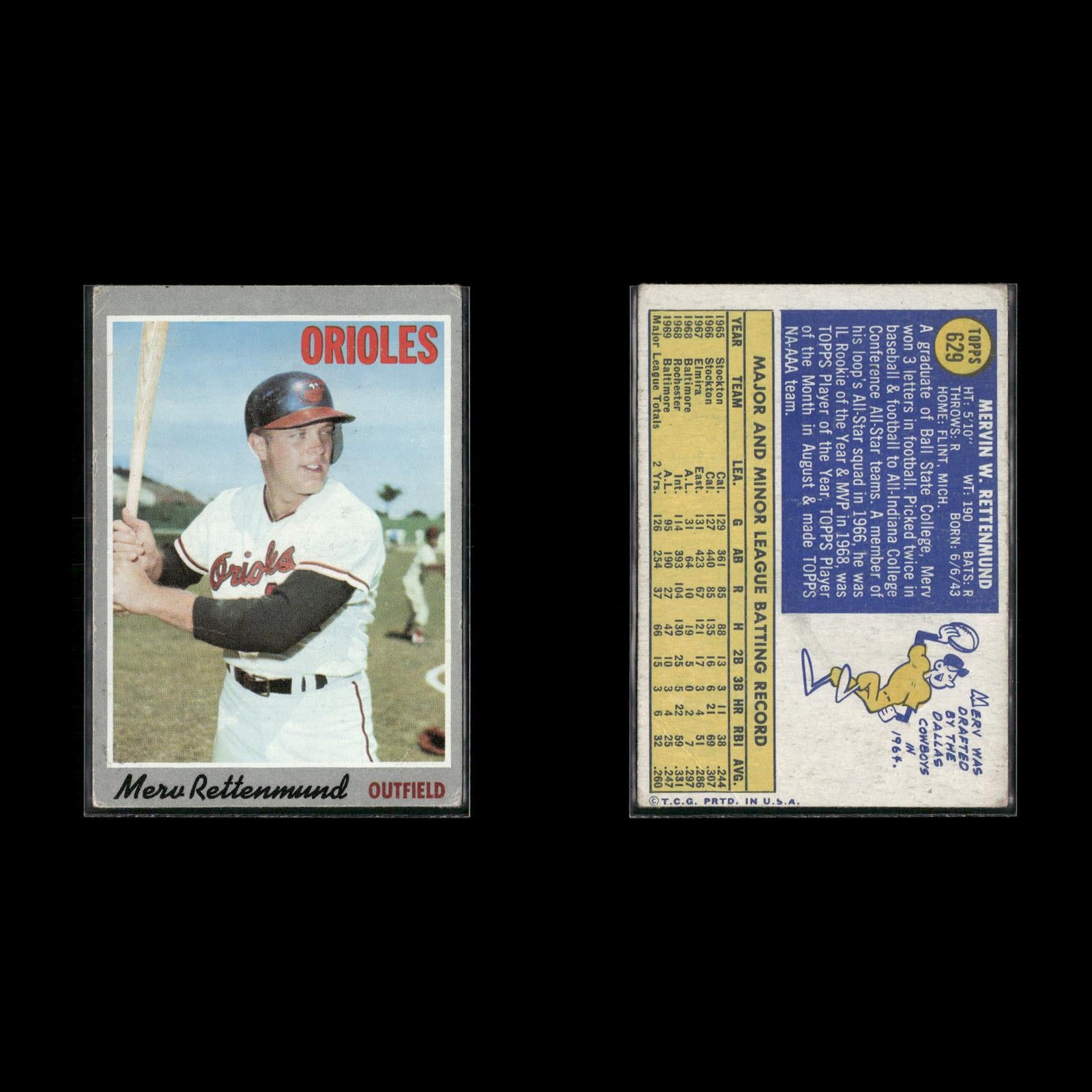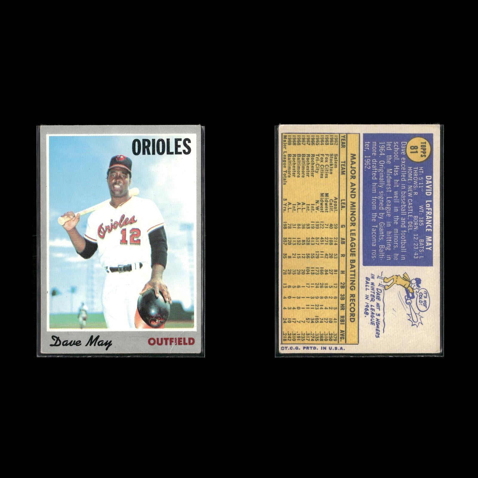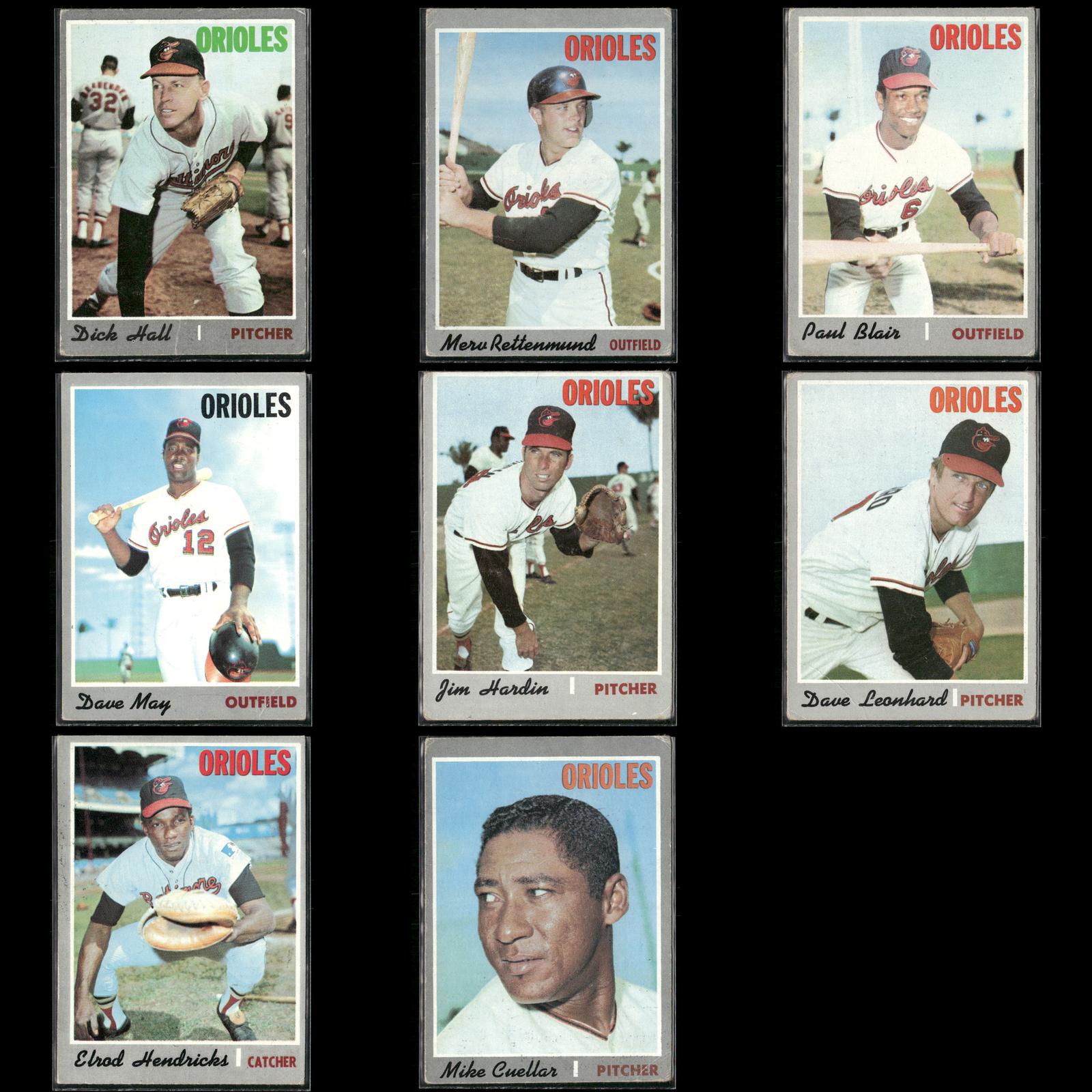 Dick Hall #182 1970 Topps Baltimore Orioles Merv Rettenmund #629 1970 Topps Baltimore Orioles Paul Blair #285 1970 Topps Baltimore Orioles Dave May #81 1970 Topps Baltimore Orioles Jim Hardin #656 1970 Topps Baltimore Orioles Dave Leonhard #674 1970 Topps Baltimore Orioles Elrod Hendricks #528 1970 Topps Baltimore Orioles Mike Cuellar #590 1970 Topps Baltimore Orioles