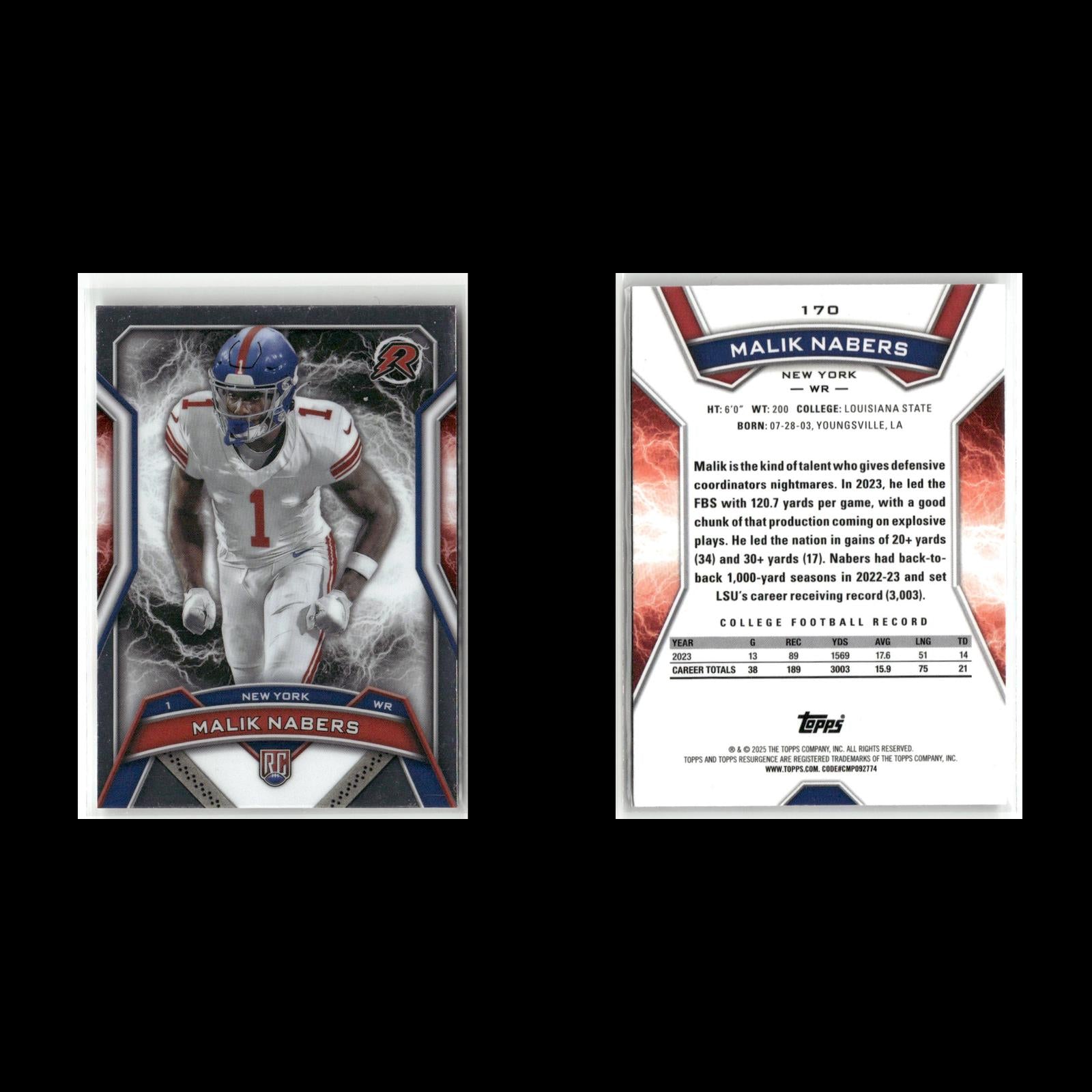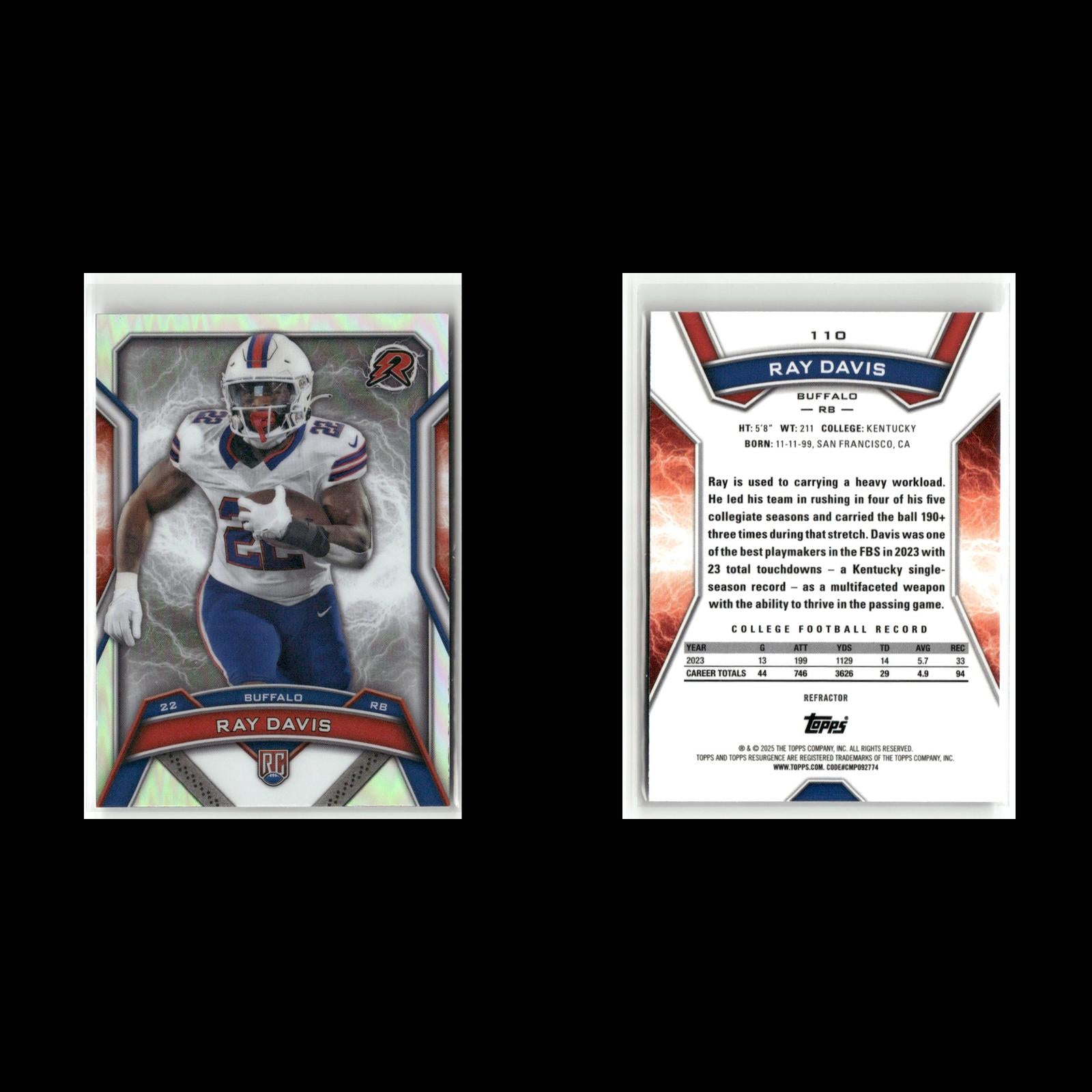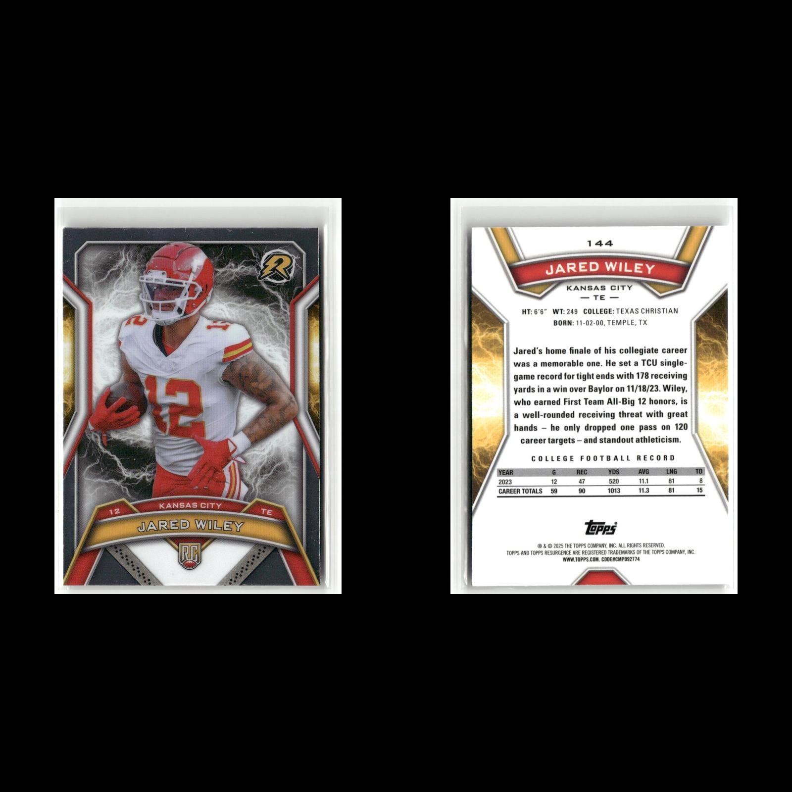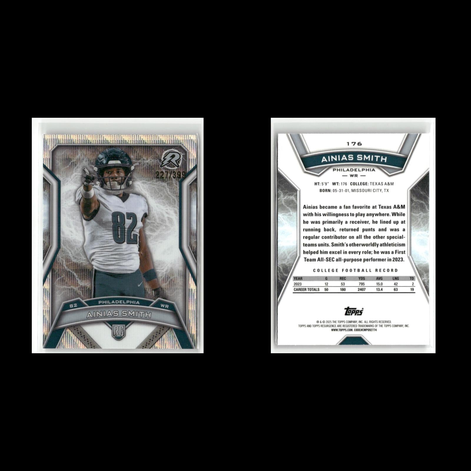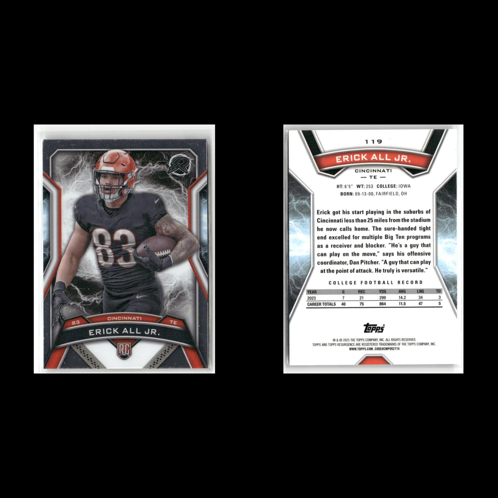 Jared Wiley Rookie #144 2024 Topps Resurgence Kansas City Chiefs Ray Davis Rookie #110 2024 Topps Resurgence Refractor Buffalo Bills Erick All Jr. Rookie #119 2024 Topps Resurgence Cincinnati Bengals Malik Nabers Rookie #170 2024 Topps Resurgence New York Giants Joe Alt Rookie #156 2024 Topps Resurgence Los Angeles Chargers Ainias Smith Rookie #176 2024 Topps Resurgence Surge #/399 Philadelphia Eagles Cade Stover Rookie #136 2024 Topps Resurgence Houston Texans Amarius Mims Rookie #121 2024 Topps Resurgence Cincinnati Bengals Ladd McConkey Rookie #154 2024 Topps Resurgence Prism Los Angeles Chargers