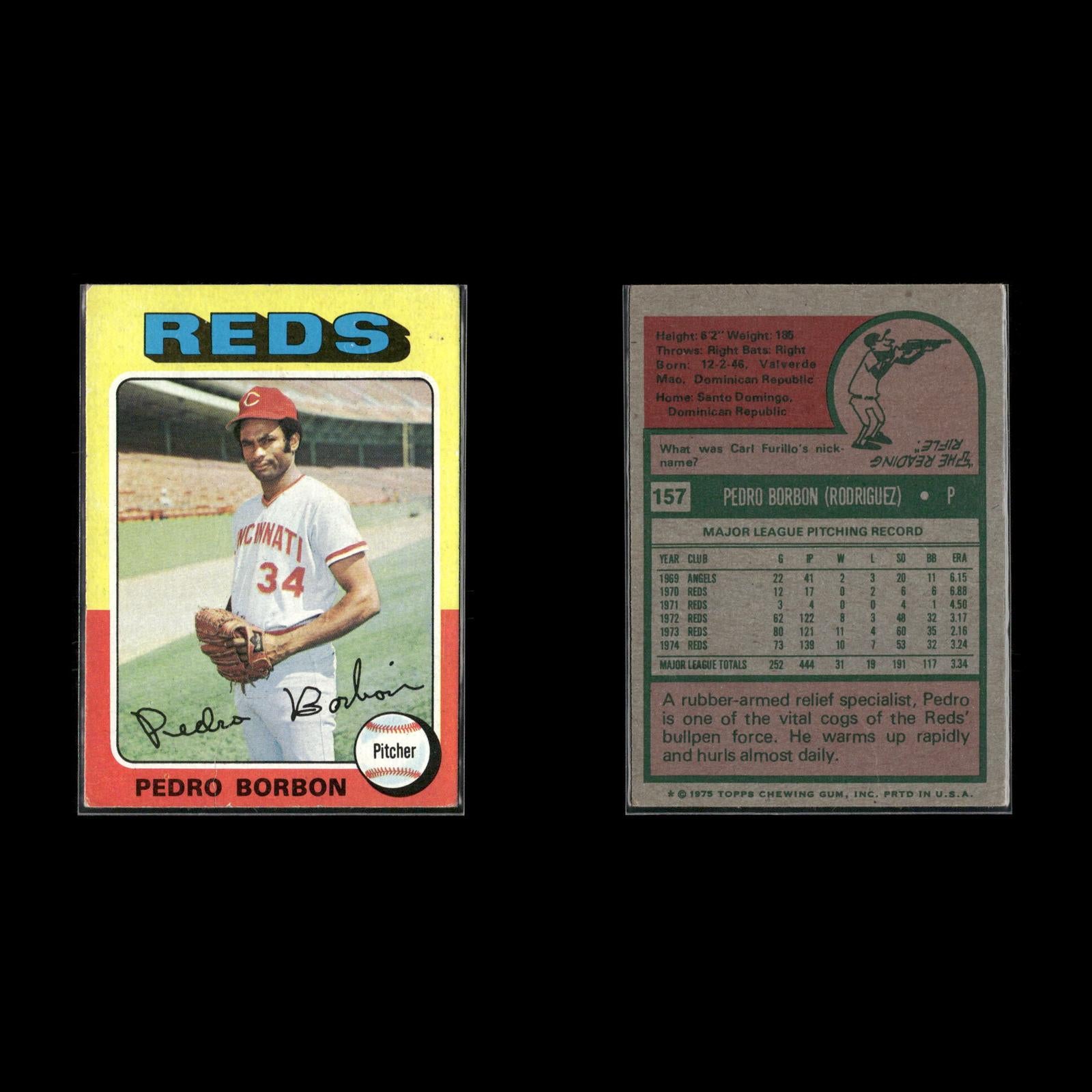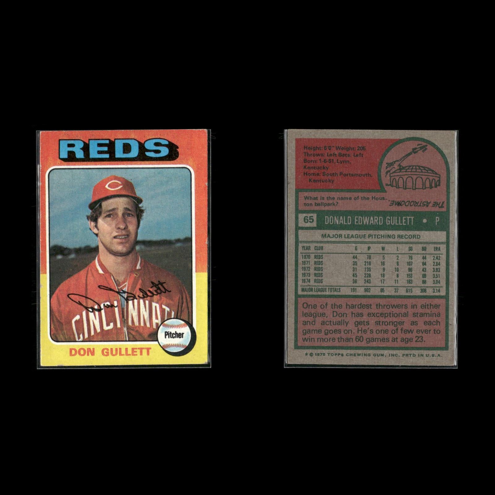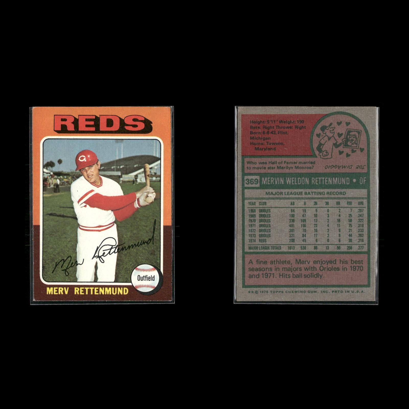 Gary Nolan #562 1975 Topps Cincinnati Reds Don Gullett #65 1975 Topps Cincinnati Reds Pedro Borbon #157 1975 Topps Cincinnati Reds Merv Rettenmund #369 1975 Topps Cincinnati Reds