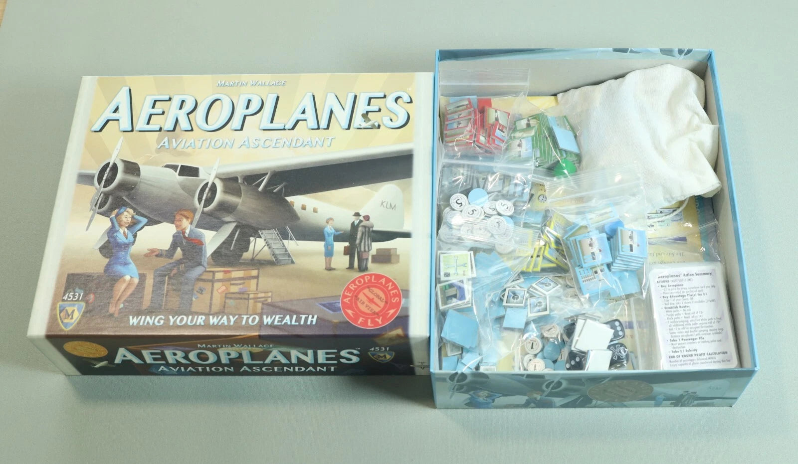 For sale is aVery Good+condition copy ofAeroplanes: Aviation Ascendant, a strategic economic game published byMayfair Gamesand designed byMartin Wallace. Travel back to the golden age of aviation and build your airline empire across the globe.