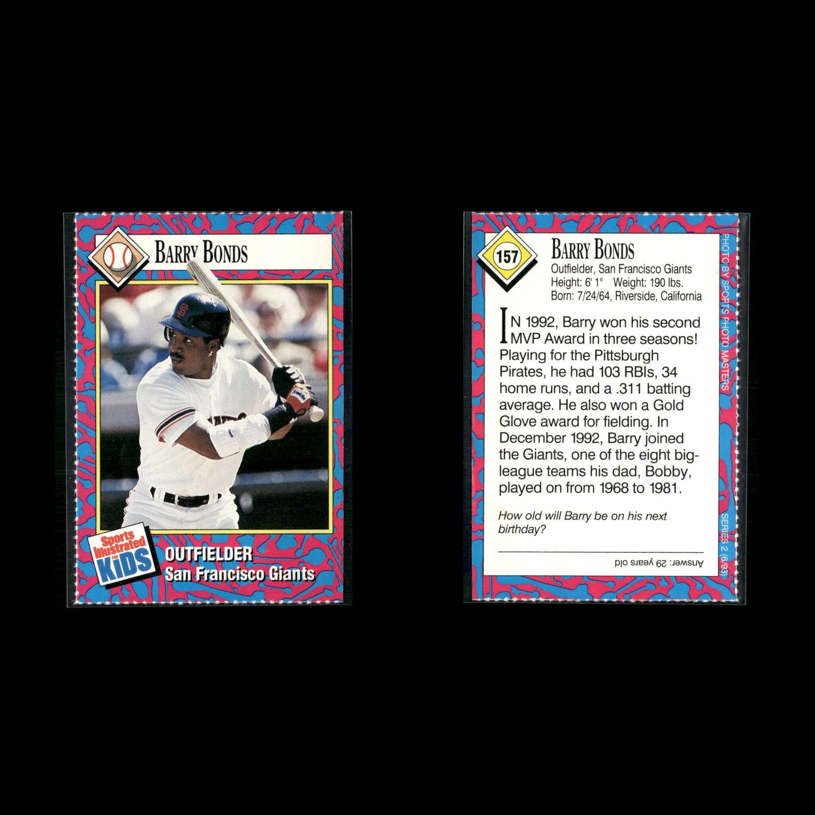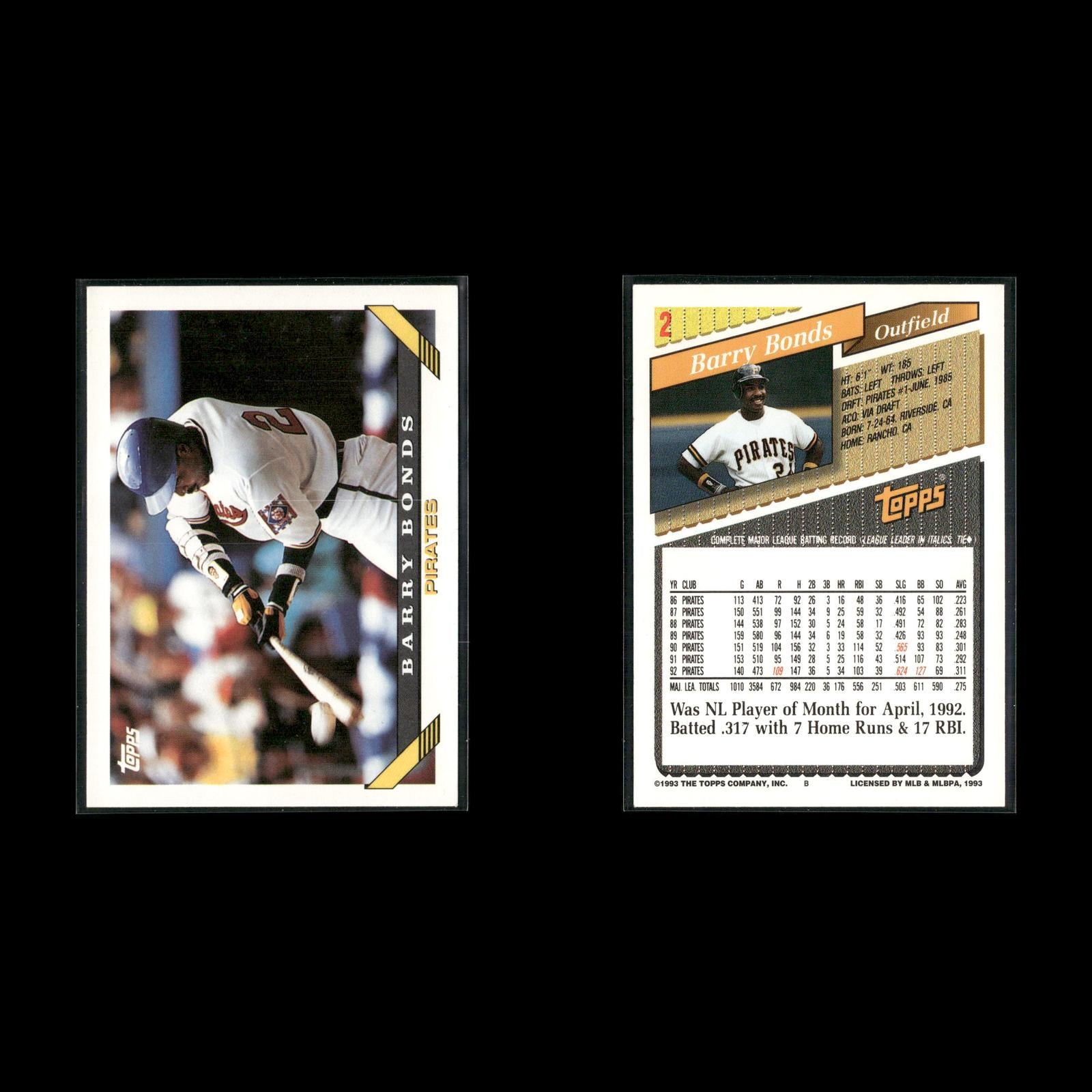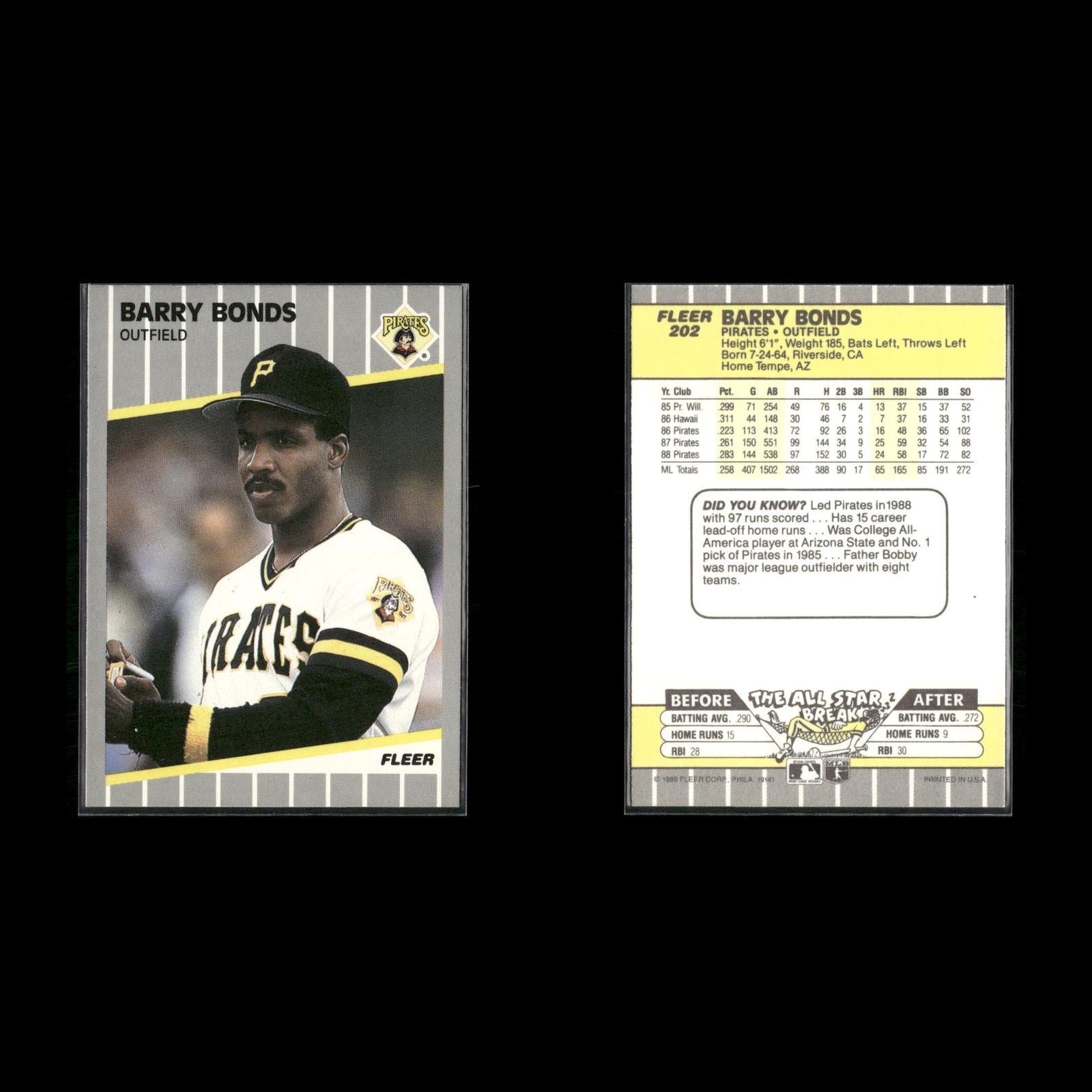 Barry Bonds #229 1991 Sports Illustrated for Kids Pittsburgh Pirates Barry Bonds / Joe Carter AS #407 1993 Topps Micro Barry Bonds #SPX43 1997 SPx San Francisco Giants Barry Bonds #7 2002 Upper Deck Honor Roll San Francisco Giants Barry Bonds #HA3 1994 Collector's Choice Home Run All-Stars San Francisco Giants Barry Bonds / Quinton McCracken CP #123 1997 Donruss Limited Barry Bonds #202 1989 Fleer Pittsburgh Pirates Barry Bonds #632 1994 Score San Francisco Giants Barry Bonds #104 2003 Upper Deck Victory San Francisco Giants Barry Bonds #762 1991 Donruss Pittsburgh Pirates Barry Bonds #157 1993 Sports Illustrated for Kids San Francisco Giants Barry Bonds #426 1989 Bowman Pittsburgh Pirates Barry Bonds #2 1992 Topps 1993 Topps Pre-Production Samples Pittsburgh Pirates Barry Bonds #220 1990 Topps Pittsburgh Pirates Barry Bonds #BB 292 2005 Topps Barry Bonds Home Run History San Francisco Giants Barry Bonds #450 1988 Topps Pittsburgh Pirates Barry Bonds #620 1989 Topps Pittsburgh Pirates Barry Bonds #HA3 1994 Collector's Choice Home Run All-Stars San Francisco Giants