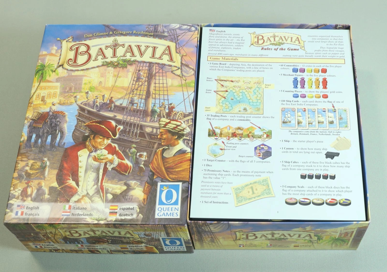 For sale is anear mint+, unplayedcopy ofBatavia (2008)fromQueen Games—a beautifully produced game of trade, risk-taking, and economic competition set during the golden age of the spice trade.