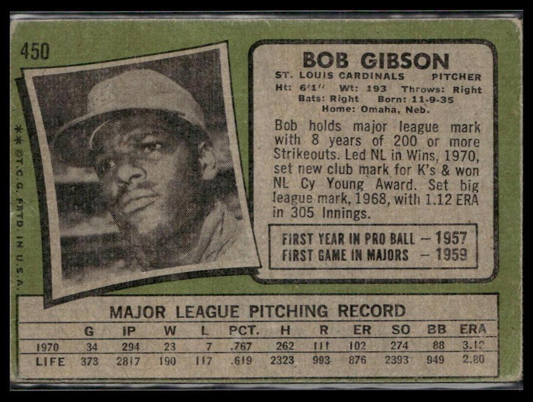 Bob Gibson #450 1971 Topps St. Louis Cardinals