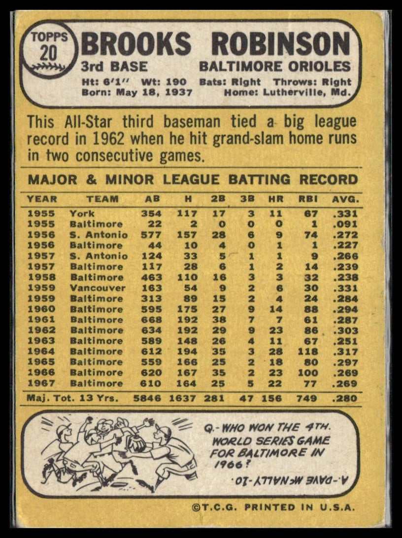 Whether you're a dedicated collector or just starting out with Brooks Robinson cards, you've found the perfect card for expanding your deck or showcasing in your collection. At Mr. Mom's, we take pride in offering quality cards from popular games and sports, all carefully handled and ready for their next home. Check out our other listings to find even more treasures for your collection!