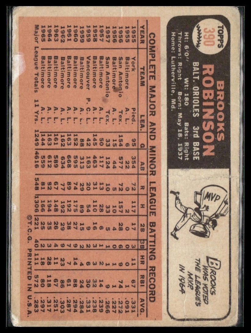 Brooks Robinson #390 1966 Topps Baltimore Orioles